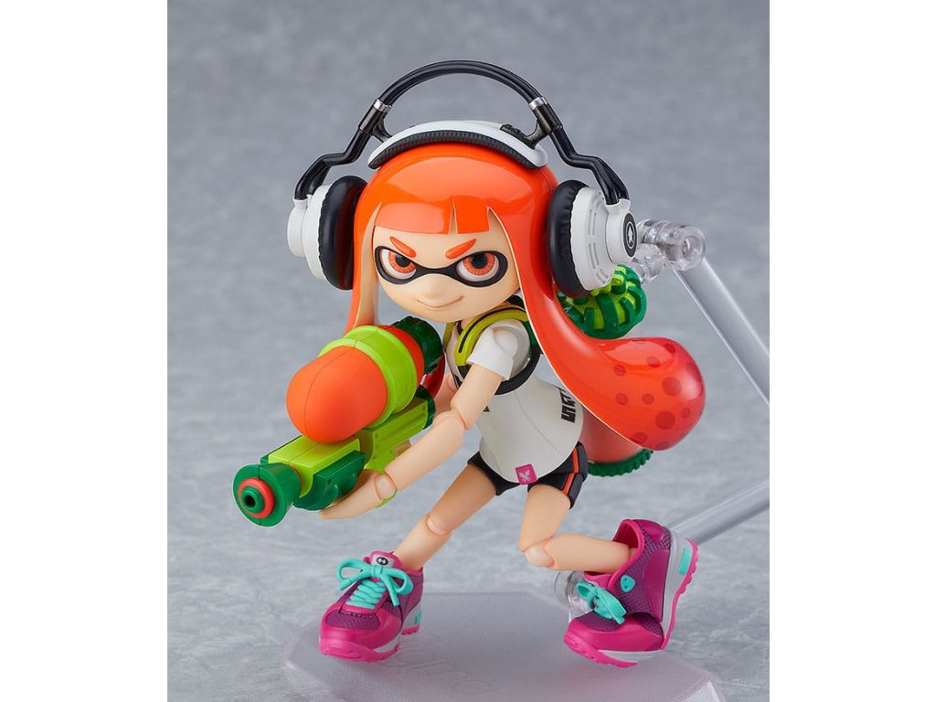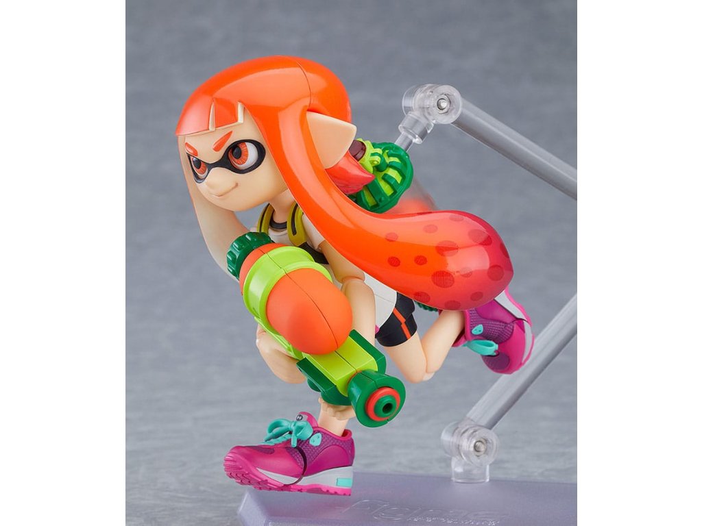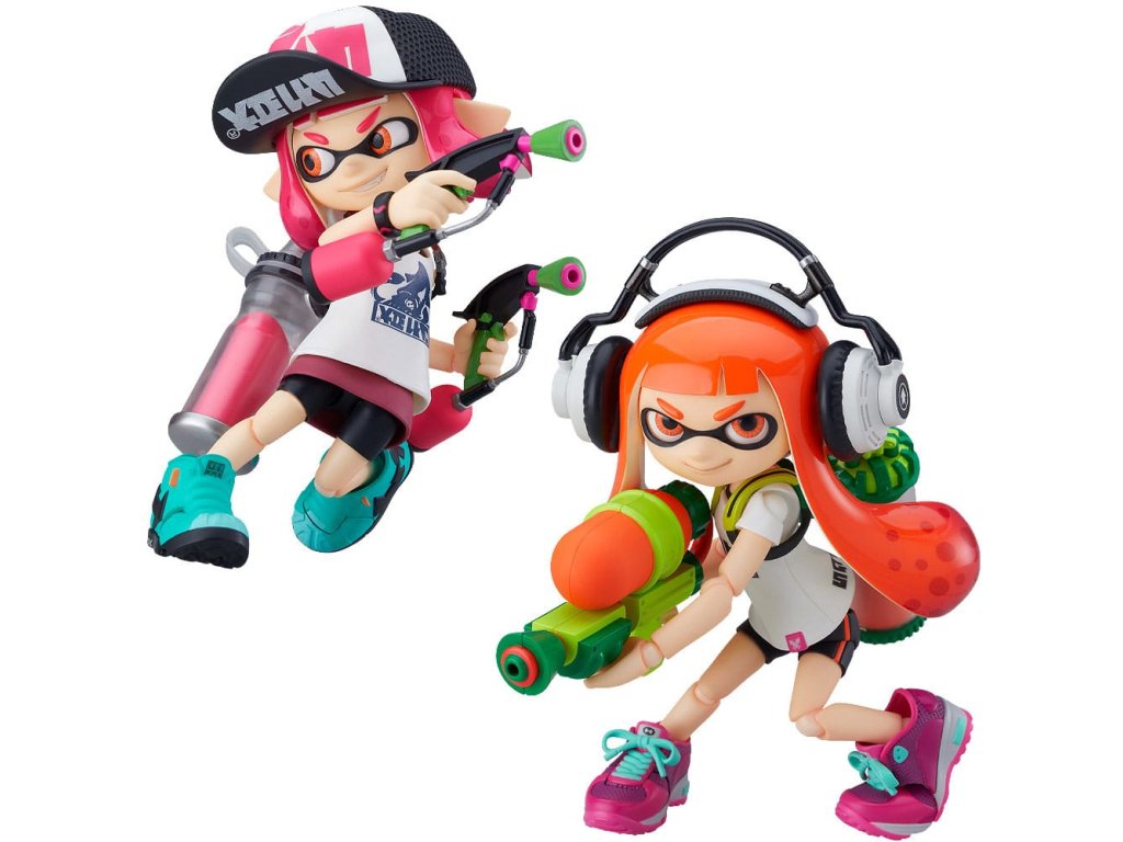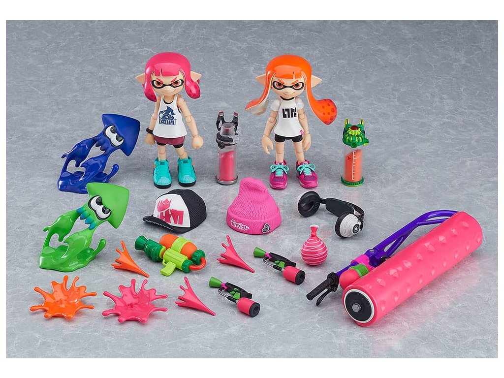 A népszerű "Splatoon" és "Splatoon 2" videojátékokból érkeznek az Inkling lány figurák! Mindkét figura csuklós szemrészekkel érkezik, amelyek lehetővé teszik, hogy megváltoztasd a tekintetük irányát - Egy mosolygós arckifejezés is elérhető, amely mindkét lányon használható az arclemezen lévő szemöldök cseréjével - Splattershot, Splat Dualies, Splat Roller és Burst Bomb fegyverek is elérhetőek opcióként. Szintén elérhetőek a játékbeli felszerelések, mint például a stúdiófejhallgató, a királyi hálós sapka és a kötött sapka - Mindkét lányhoz tartozik egy-egy, a játékbeli párjának színéhez illő polip figura, tintafröccsenő effektes alkatrészek, egy speciális tintafröccsenő állvány, valamint egy tintafröccsenő effektes lap, vagyis rengeteg különböző alkatrész található benne - Egy csuklós figuraállvány is van, amely lehetővé teszi a különböző pozíciókat.Kiegészítő paraméterek