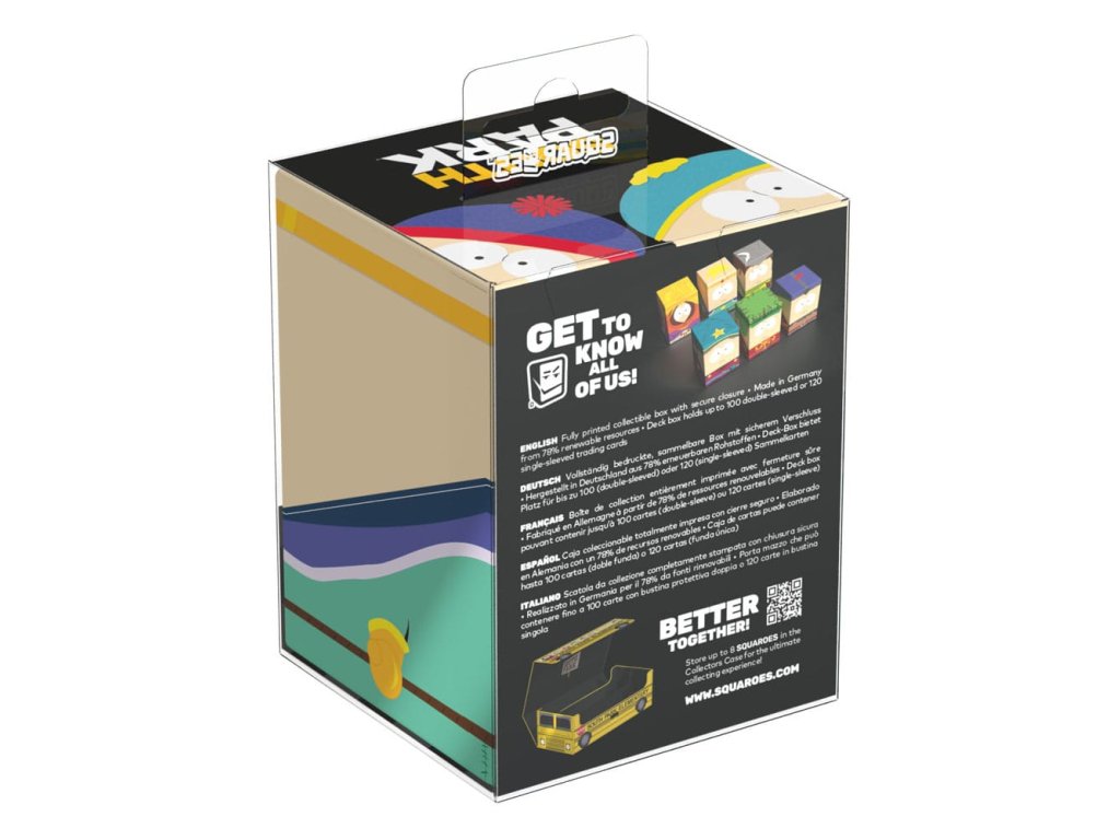 Gyűjtőkártyák tárolására szolgáló doboz gyűjtőkártyás játékok, társasjáték-kiegészítők és/vagy gyűjtemények számára. Minden South Park™ Edition Squaroe dobozban akár 100 kártya is elfér, dupla védőhüvelyben, ha kártyadobozként használod. A Squaroe 78%-ban megújuló nyersanyagokból készül, és tökéletesen illeszkedik a külön kapható gyűjtőtokba.