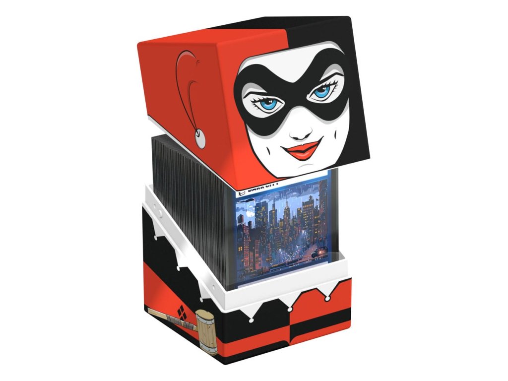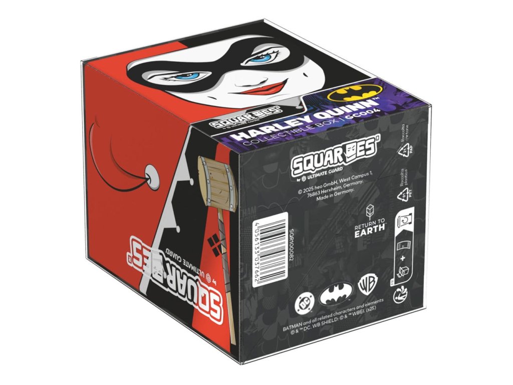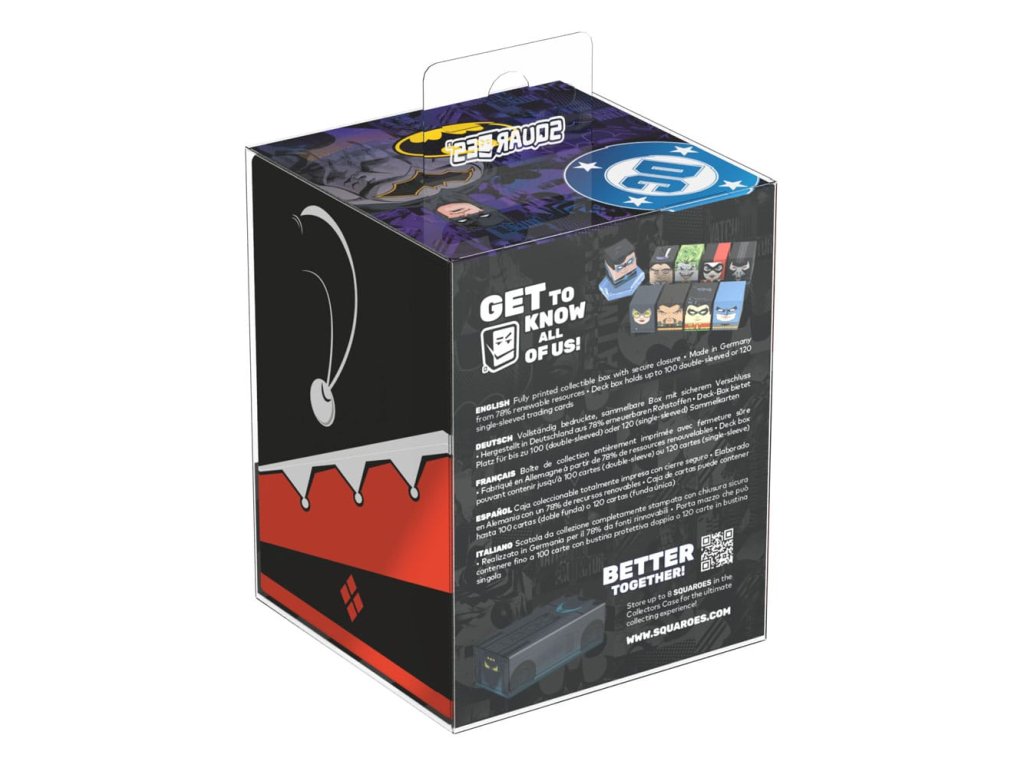 Gyűjtőszekrény TCG paklik, társasjáték-kiegészítők és/vagy gyűjtemények tárolására. A Harley Quinn Squaroe a Batman: Gotham City kiadásból akár 100 kártya is elfér dupla védőhüvelyben, ha kártyadobozként használod. A Squaroe 78%-ban megújuló nyersanyagokból készült, és tökéletesen elfér a külön kapható gyűjtőtokba.