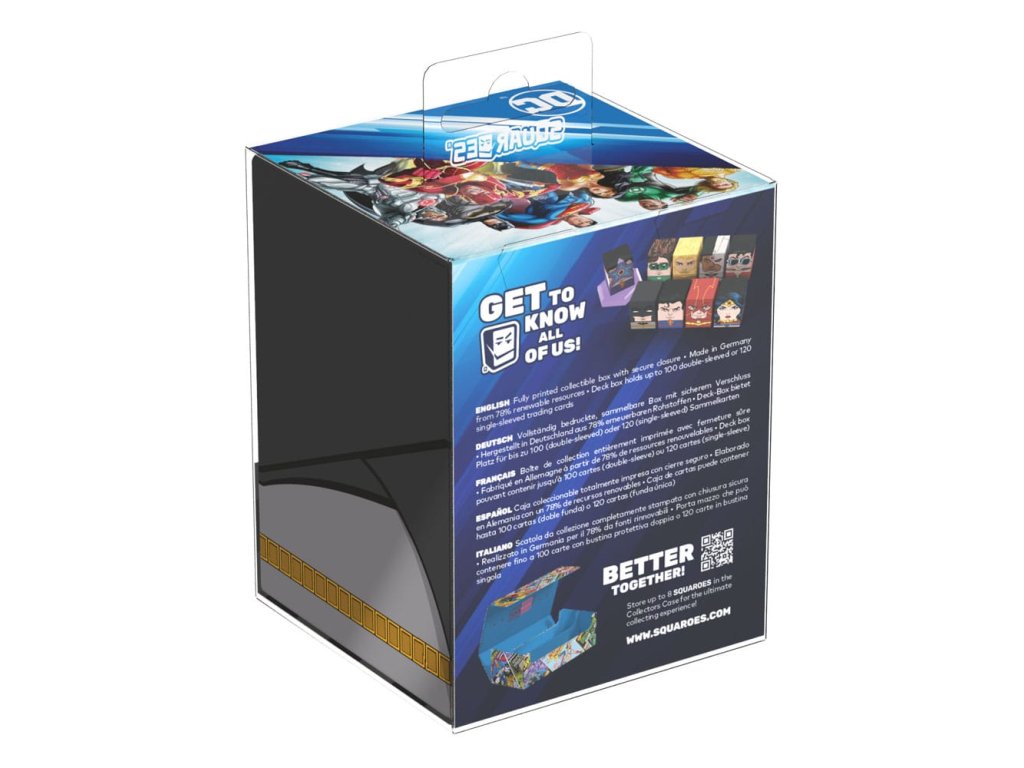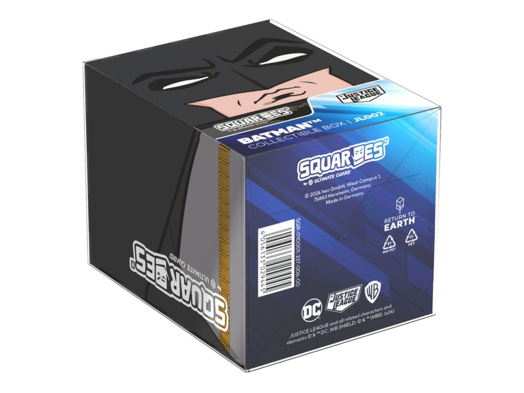"Én vagyok a bosszú. Én vagyok az éjszaka. Én vagyok Squaroe!" A szögletes forma valószínűleg eléggé kontraproduktív, amikor bűnözőket üldözöl Gotham Cityben, de a Batman™ dizájnú Squaroe jobban védi a gyűjtemények és a TCG-kártyák védelmét. Ez a gyűjtőeszköz 78%-ban megújuló anyagokból készült, és 100 kártyának kínál helyet egy dupla védőborítékban. Ne maradj le a DC Justice League™ hőseit ábrázoló további Squaroe-król, és szerezz be egy vintage képregény stílusú gyűjtői dobozt a Squaroe gyűjteményed tárolásához! - Teljesen nyomtatott gyűjtői doboz biztonságos záródással - Németországban készült 78%-ban megújuló nyersanyagokból - A dobozban pakliként akár 100 dupla csomagolású vagy 120 egyszemélyes csomagolású gyűjtőkártya is elfér - Méretek.Kiegészítő paraméterek