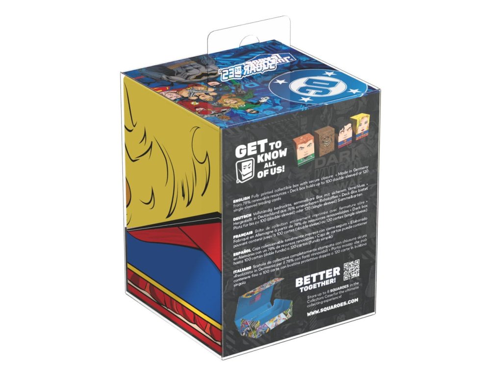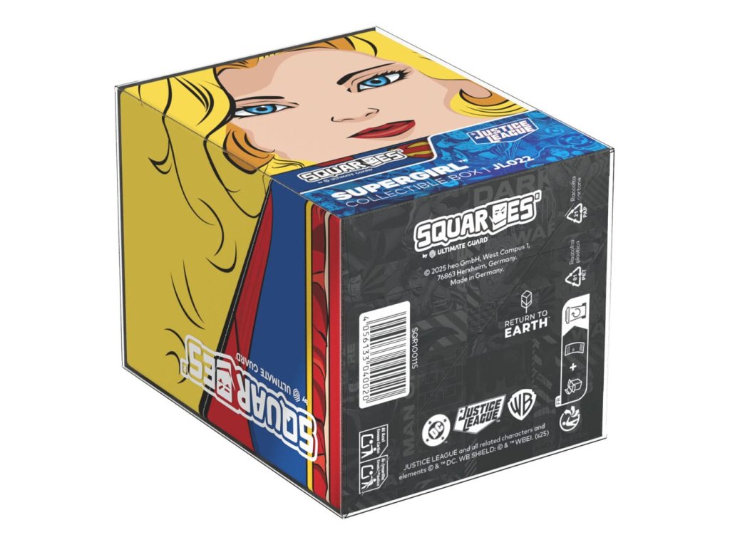 Gyűjtői doboz TCG kártyák, társasjáték-kiegészítők és/vagy gyűjtemények tárolására. A DC Justice League™ kiadású Supergirl Squaroe akár 100 kártyát is tárolhat dupla védőhüvelyben, ha paklis dobozként használod. A Squaroe 78%-ban megújuló nyersanyagokból készül.