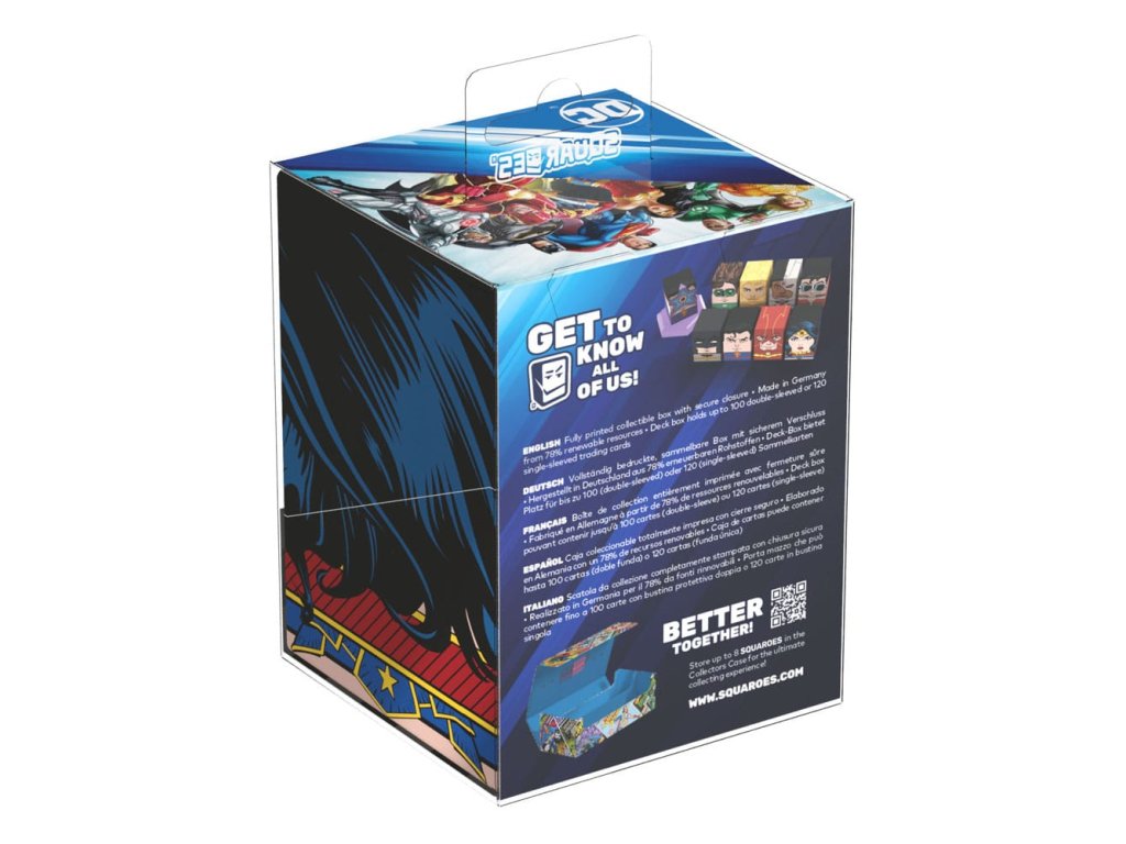 Előbb a Wonder Woman™ igazságának arany lasszója kell, hogy elkapjon, vagy rögtön bevallanád, hogy a kártyajáték- vagy miniatűrgyűjteményed egy kicsit gyarapodni fog? Hé, megesik az ilyesmi. Szerencsére a szuperhősnőnek megvan a saját Squaroe-ja, egy 78%-ban megújuló anyagokból készült, sokoldalú tárolódoboz, amelybe például 100 gyűjtőkártya fér el egy dupla védőborítékban. És a legjobb az egészben persze az, hogy Wonder Woman™ nincs egyedül: még sok más DC Justice League™ hős vár rád! - Teljesen nyomtatott gyűjtődoboz biztonságos záródással - Németországban készült 78%-ban megújuló nyersanyagokból - A kártyadobozban akár 100 dupla csomagolású vagy 120 egyszemélyes csomagolású gyűjtőkártya is elfér - Méretek: 98,5 x 76 x 75 mm.Kiegészítő paraméterek