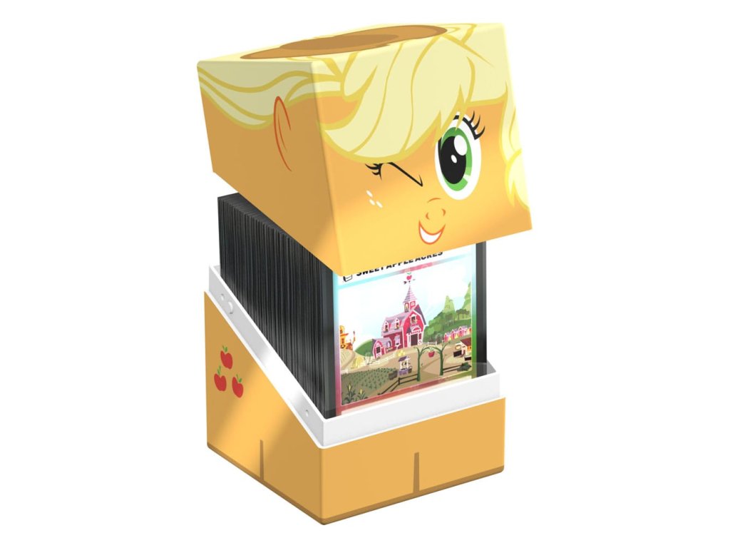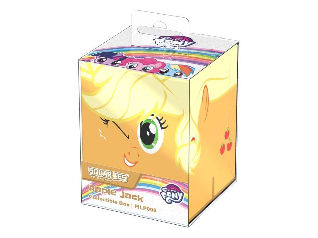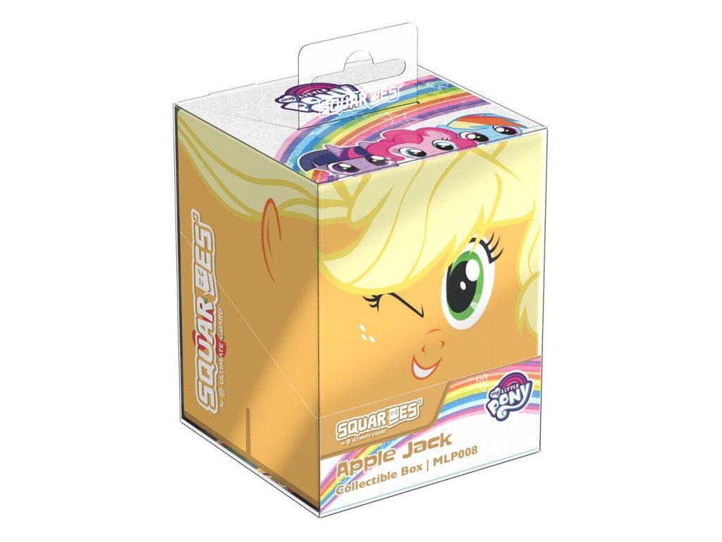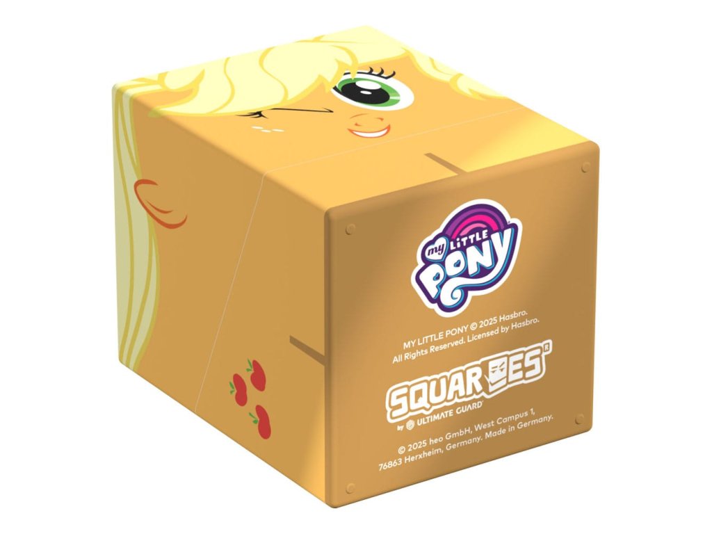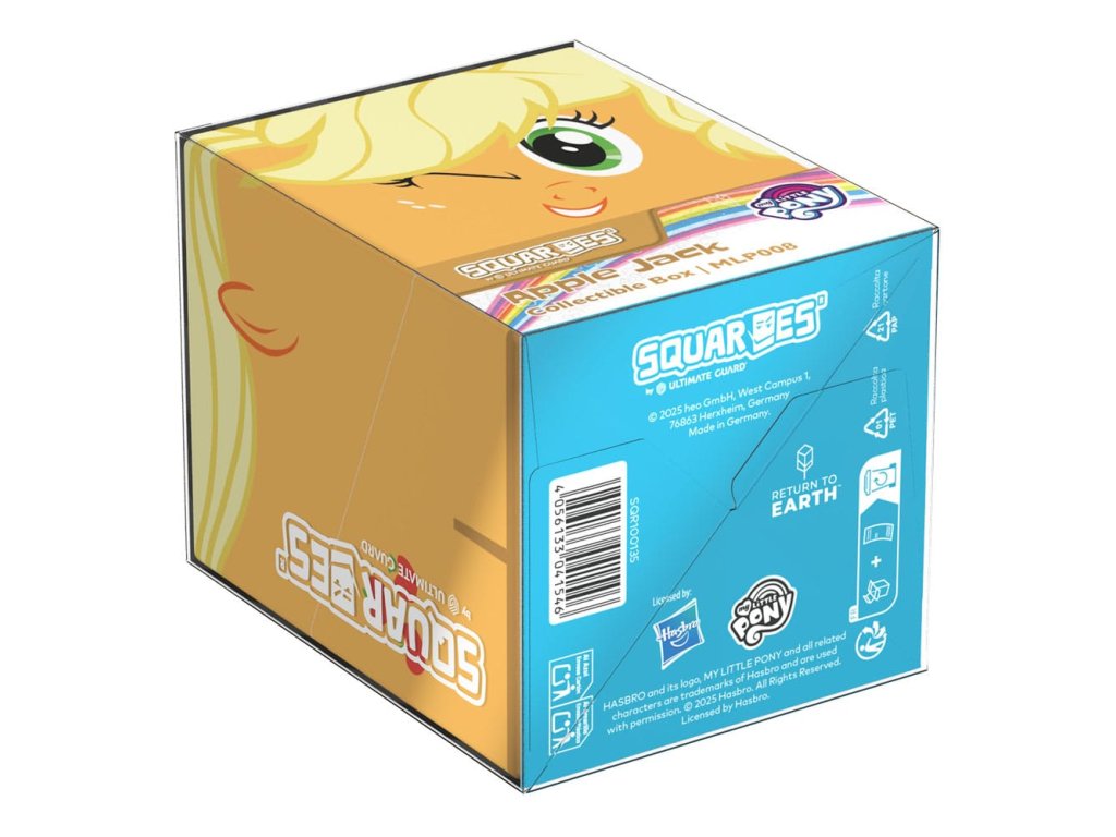 Gyűjtői doboz TCG paklik, társasjáték-kiegészítők és/vagy gyűjtemények tárolására. A My Little Pony "Friendship is Magic" kiadású Squaroe Apple Jack kártyadobozként használva akár 100 kártyát is elbír egy dupla védőfóliában. A Squaroe 78%-ban megújuló nyersanyagokból készül.