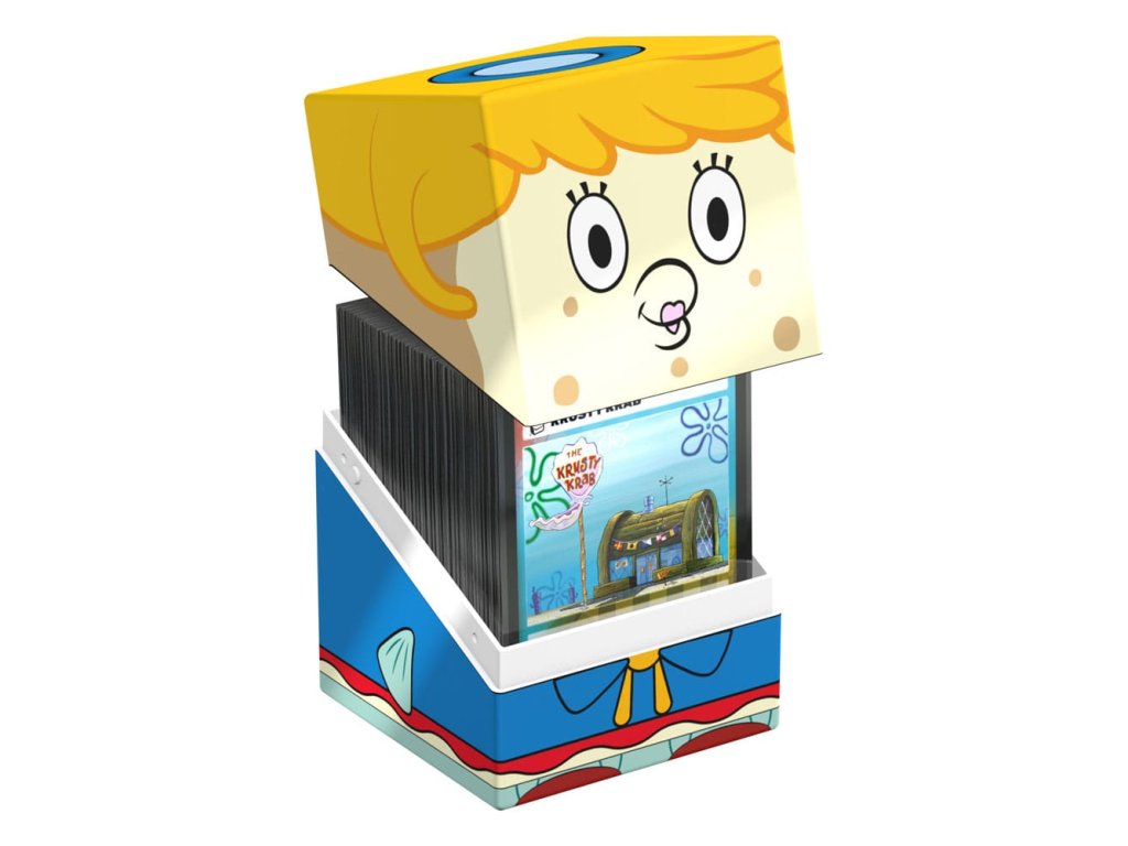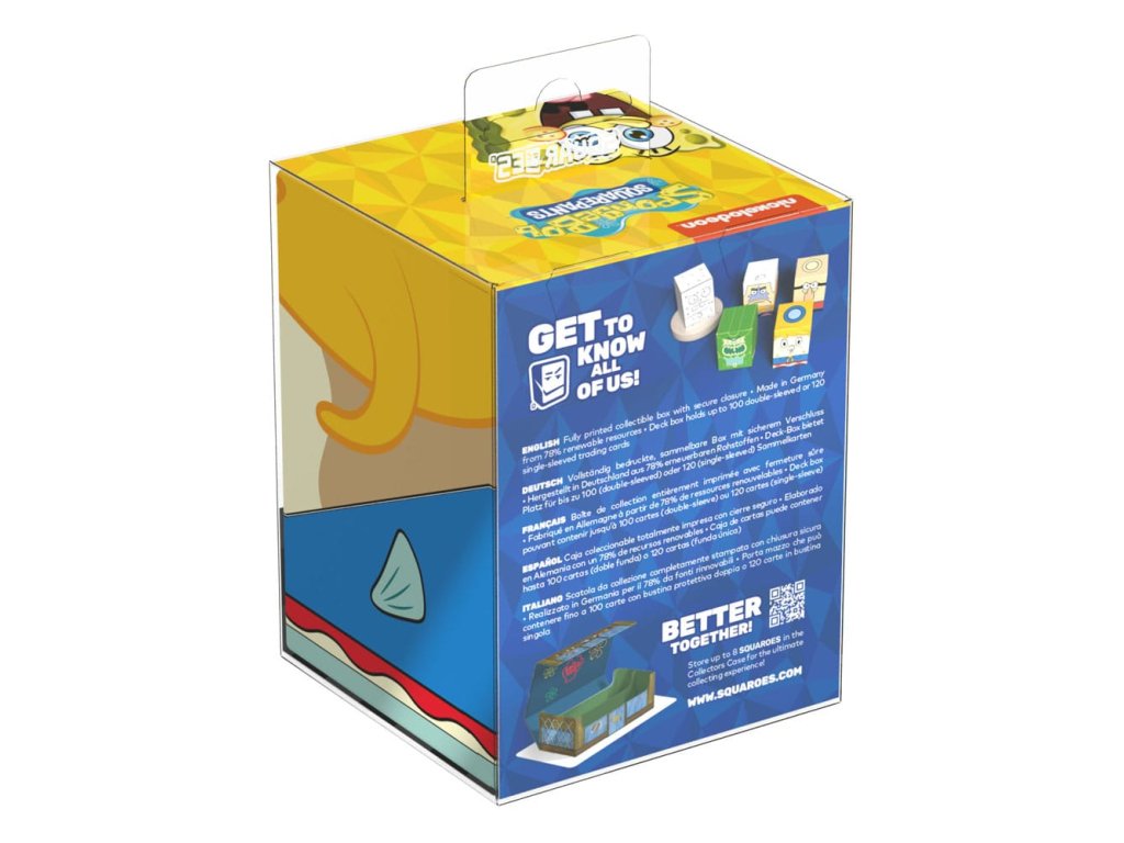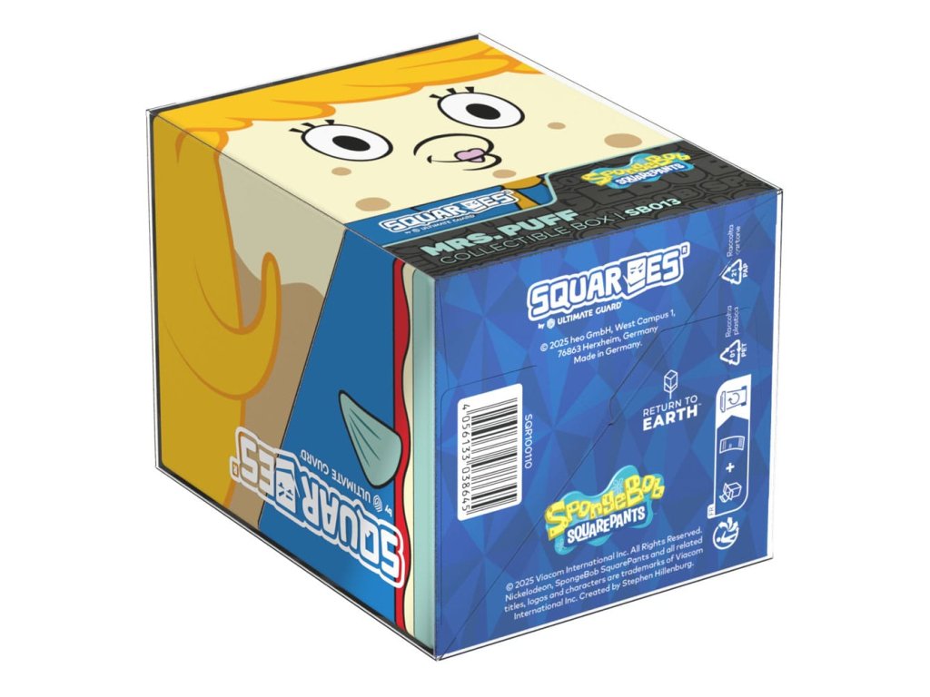 Gyűjtői doboz TGC csomagok, társasjáték kiegészítők és/vagy gyűjtemények tárolására. A Spongyabob Kockanadrág™ sorozat Mrs. Puff figurájával ellátott Squaroe akár 100 kártyát is befogad dupla védőhüvelyben, ha kártyadobozként használod. A Squaroe 78%-ban megújuló nyersanyagokból készül, és tökéletesen illeszkedik a külön kapható gyűjtőedény tokba.