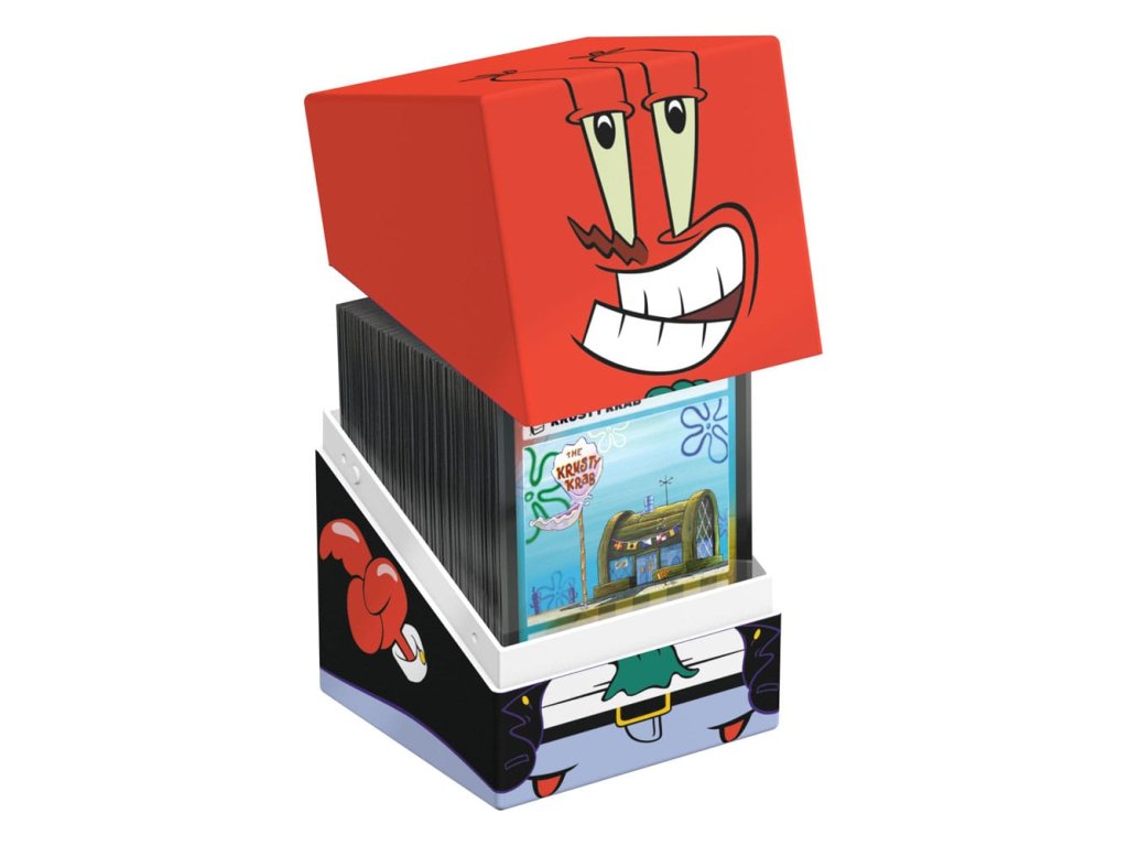 Gyűjtői doboz TCG csomagok, társasjáték-kiegészítők és/vagy gyűjtemények tárolására. A Spongyabob Kockanadrág™ kiadásból származó Kalóz Mr. Krabs Squaroe kalóz doboz ában akár 100 kártya is elfér dupla védőhüvelyben, ha pakli dobozként használod. A Squaroe 78%-ban megújuló nyersanyagokból készül, és tökéletesen illeszkedik a külön kapható gyűjtőtokba.
