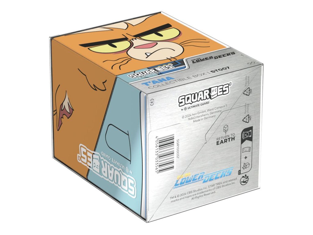 Gyűjtői doboz TCG csomagok, társasjáték-kiegészítők és/vagy gyűjtemények tárolására. A Squaroe T'Ana a Star Trek: Lower Decks™ kiadásból akár 100 kártyát is befogad dupla védőhüvelyben, ha pakli dobozként használod. A Squaroe 78%-ban megújuló nyersanyagokból készült, és tökéletesen elfér a külön kapható gyűjtődobozban.