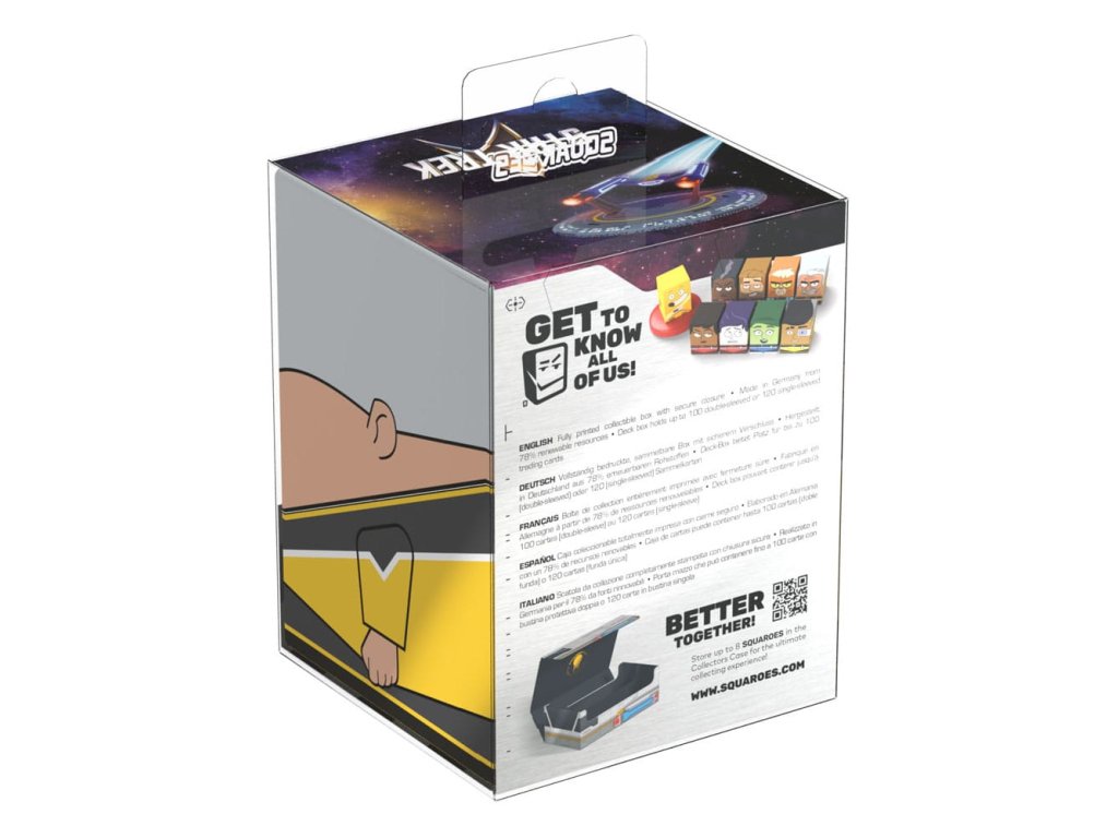Gyűjtői doboz TCG csomagok, társasjáték-kiegészítők és/vagy gyűjtemények tárolására. A Shaxs Squaroe a Star Trek: Lower Decks™ kiadásból akár 100 kártyát is befogad dupla védelemben, ha paklis dobozként használod. A Squaroe 78%-ban megújuló nyersanyagokból készül, és tökéletesen elfér a külön kapható gyűjtőtokba.