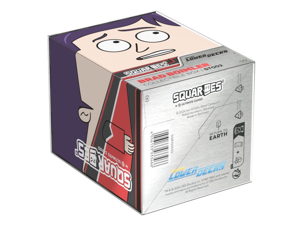 Gyűjtői doboz kártyajátékok, társasjáték-kiegészítők és/vagy gyűjtemények tárolására. A Brad Boimler Squaroe a Star Trek: Lower Decks™ kiadásból akár 100 kártya is elfér dupla védőhüvelyben, ha kártyadobozként használod. A Squaroe 78%-ban megújuló nyersanyagokból készül, és tökéletesen illeszkedik a külön kapható gyűjtőtokba.