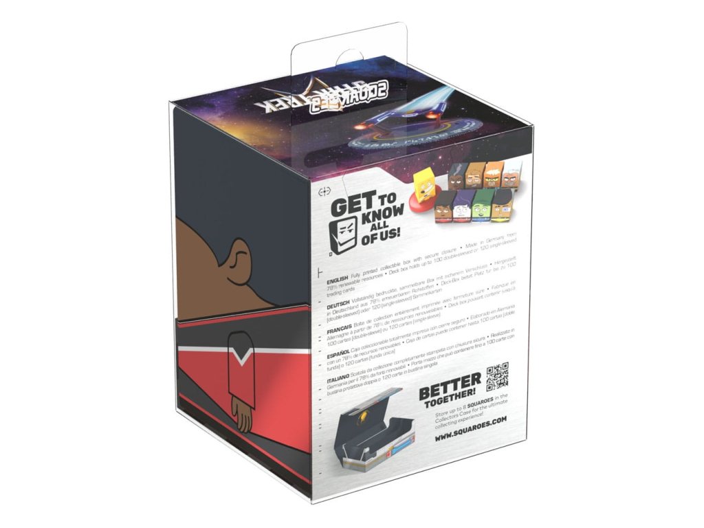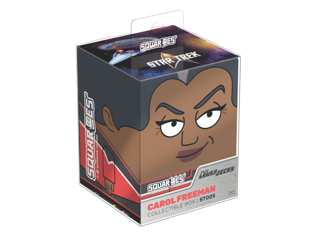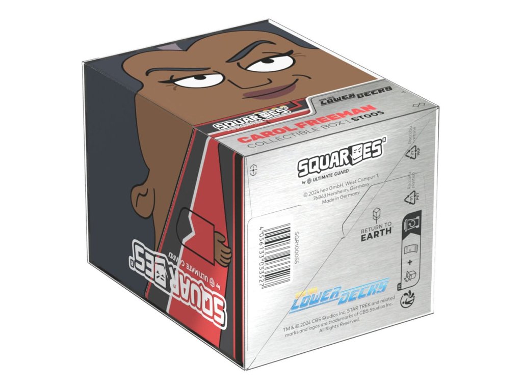Gyűjtői doboz TCG csomagok, társasjáték-kiegészítők és/vagy gyűjtemények tárolására. A Carol Freeman Squaroe kiadású Star Trek: Lower Decks™ kártyadobozként használva akár 100 kártya is elfér dupla védőhüvelyben. A Squaroe 78%-ban megújuló nyersanyagokból készül, és tökéletesen illeszkedik a külön kapható gyűjtőtokba.