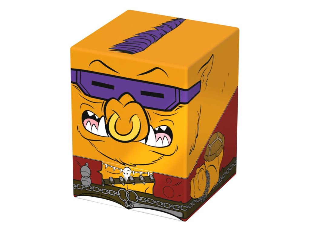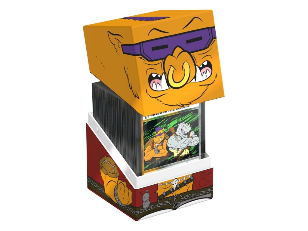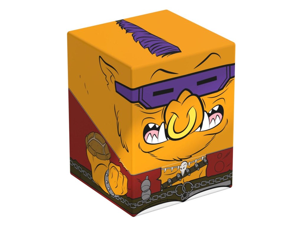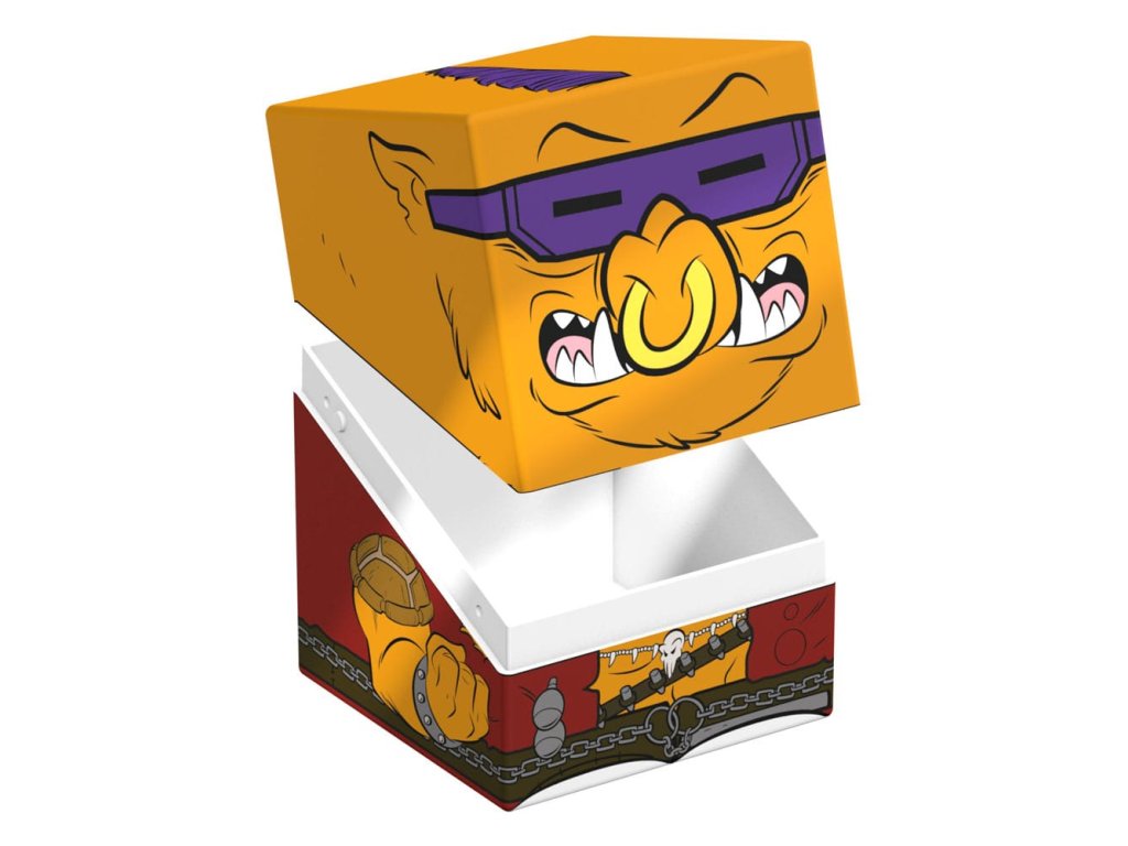Gyűjtői doboz TCG paklik, társasjáték-kiegészítők és/vagy gyűjtemények tárolására. A Bebop Squaroe a Teenage Mutant Ninja Turtles™ kiadásból akár 100 kártya is elfér dupla védőhüvelyben, ha paklis dobozként használod. A Squaroe 78%-ban megújuló nyersanyagokból készül, és tökéletesen illeszkedik a külön kapható gyűjtőtokba.