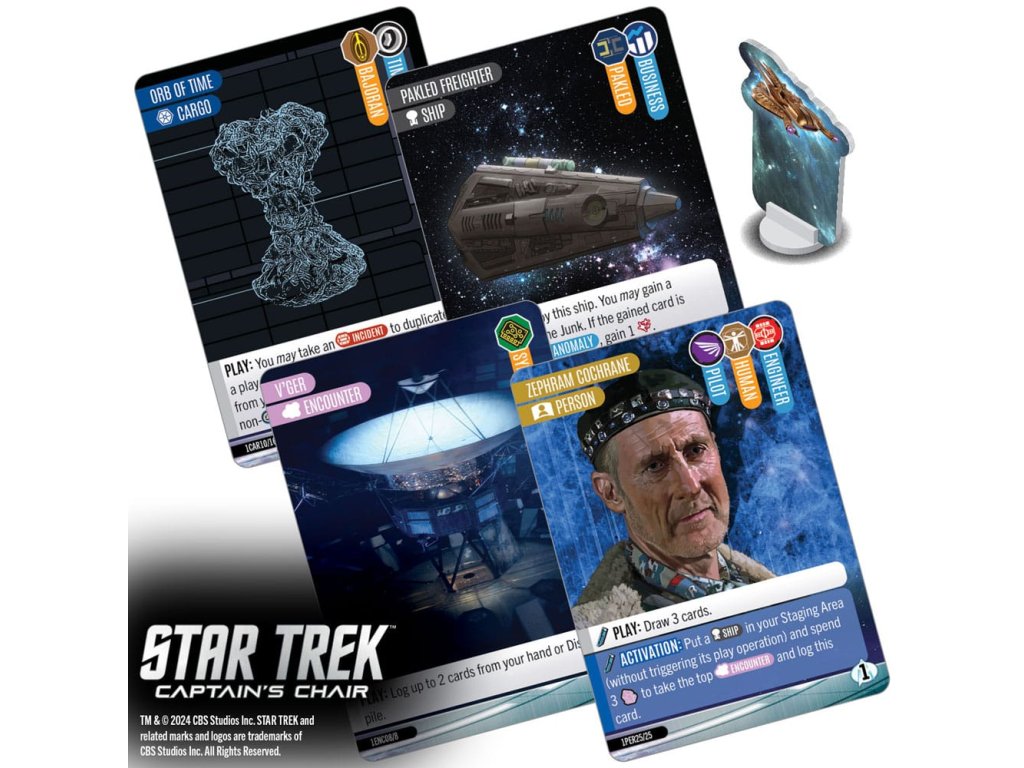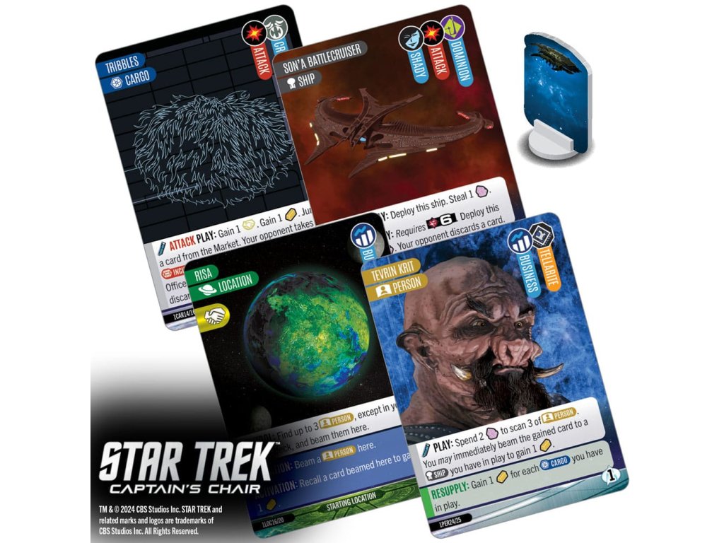 David Turczi és Nigel Buckle, a Voidfall és az Imperium sorozat tervezői egy stratégiai és lenyűgöző kártyaépítő játékkal jelentkeznek, amely a galaxis egyik leghatalmasabb helyére helyez téged: a kapitányi székbe! A Star Trek: Kapitányi székben egy az egy ellenféllel kell megmérkőznöd, és mindketten a galaxis és a Star Trek történetének egy-egy ikonikus kapitányának bőrébe bújhattok. Parancsold a hajókat, a legénységet és a felderítő csapatokat, miközben kezeled az erőforrásokat és a szövetségeket!A hat kapitány mindegyikének saját, egyedi, aszimmetrikus kártyapaklija van, amelynek témája az adott kapitány stratégiája, szövetségesei és eszközei. Mindegyik pakli más-más stratégiai irányt hoz létre, a rendelkezésre álló közösségi kártyáktól és az ellenfél által alkalmazott stratégiától függően.A kapitányok közül választhatsz:- Jean-Luc Picard - Benjamin Sisko - Michael Burnham - Koloth, Dahar mester - Sela - Thy'lek ShranAmint az a Star Trekben várható, az ellenségeskedés nem minden játékot nyer meg. A diplomáciára, a felfedezésre és a tudományra kell törekedned, és a különböző kapitányok különböző területeken jeleskednek.A több száz egyedi, mély témájú kártyával újra és újra fel akarod majd fedezni a galaxist! A szék a tiéd, kapitány!Tartalom - 240+ szabványos kártya - 32 hajójelző - 12 automatizált parancsnoki kártya - 2 játékos súgókártya - 6 különleges jelző - 25 latinum jelző - 30 dilithium jelző - 9 akciójelző. 6 küldetésteljesítési zseton - 50+ dicsőség zseton - 10 x5 nyersanyag zseton - 1 piaci csík - 1 kezdő zseton - 1 kártya lista - 1 pontgyűjtő lap - 1 szabály - 1 egyjátékos szabály *a megjelenítés és a tartalom változhat.Kiegészítő paraméterek