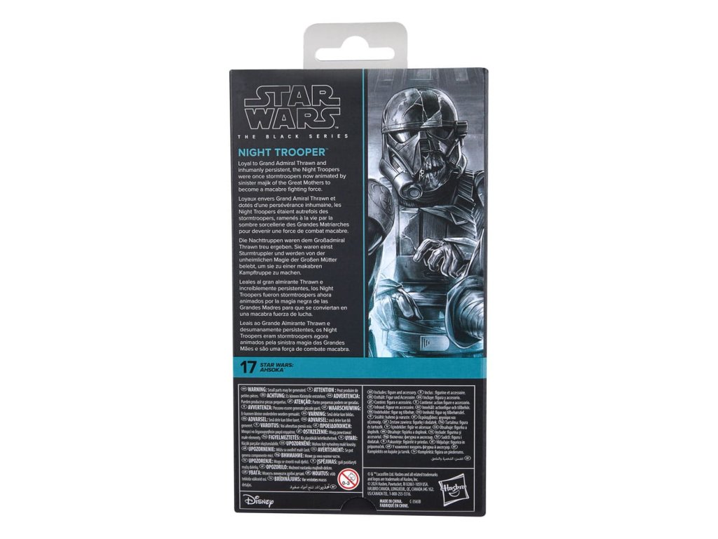 A Star Wars The Black Series 6 hüvelykes akciófigurákat, járműveket és szerepjátékokat tartalmaz a Star Wars-galaxis több mint 40 éves örökségéből, lehetővé téve a rajongók számára, hogy a Star Wars képregények, filmek, tévéműsorok és egyéb filmek hűségével galaktikus jeleneteket hozzanak létre. Ez a Hasbro Star Wars akciófigura a Star Wars: Ahsoka című filmből ismert Night Trooperre hasonlít részletesen. Kiváló részletességgel és díszítéssel a Black Series megtestesíti a Star Wars-rajongók által kedvelt minőséget és realizmust. Az Erő legyen veled! (A további termékek külön megvásárolhatók. A rendelkezésre állás függvényében.)Kiegészítő paraméterek