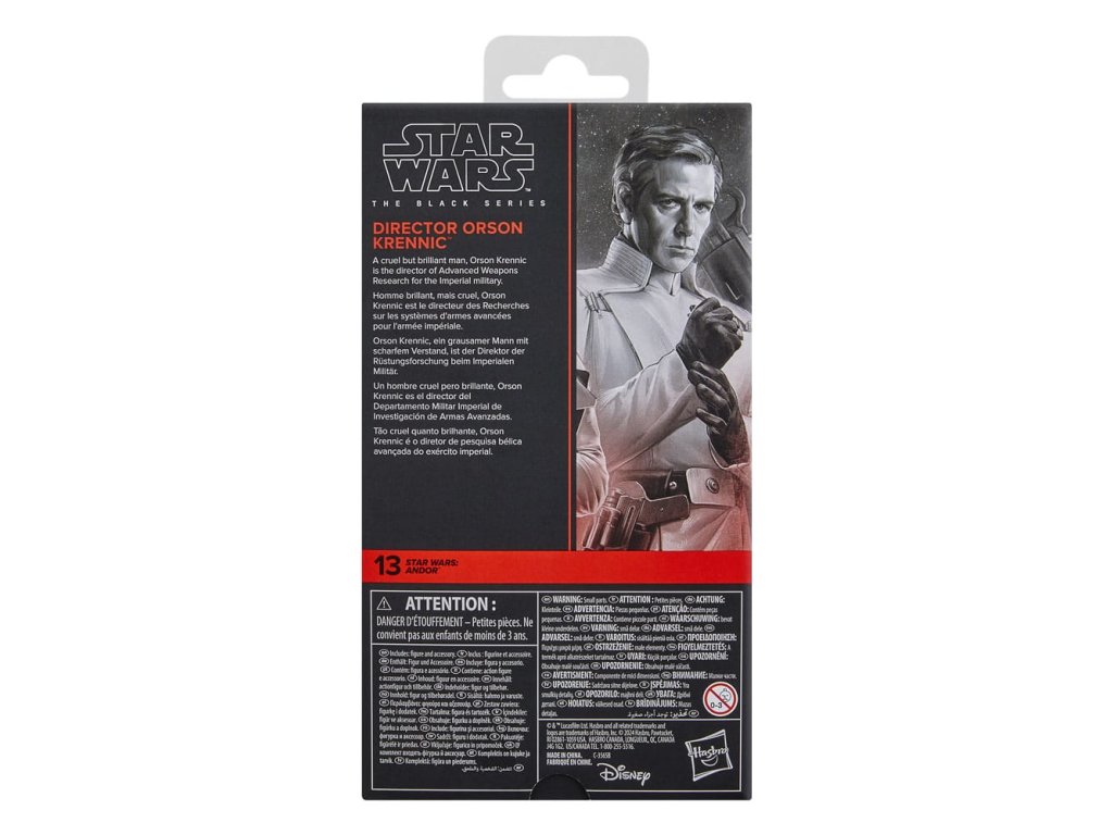 A Star Wars The Black Series 6 hüvelykes akciófigurákat, járműveket és szerepjátékokat tartalmaz a Star Wars Galaxy több mint 40 éves örökségéből, így a rajongók a Star Wars képregényekhez, filmekhez és tévésorozatokhoz hű galaktikus jeleneteket hozhatnak létre. Ez a Star Wars akciófigura úgy van részletezve, hogy úgy nézzen ki, mint Orson Krennic rendező a Star Wars: Andorból. A Black Series teste finom vonásokkal és díszítéssel képviseli a Star Wars-rajongók által kedvelt minőséget és realizmust. Az Erő legyen veled! (A további termékek külön megvásárolhatók. A rendelkezésre állás függvényében.)Kiegészítő paraméterek