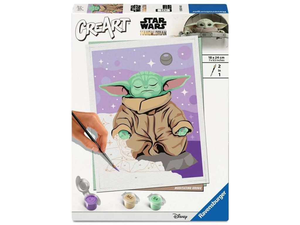 Vonzó motívumok, gazdag színek és fényes lakkozás a tökéletes végső megjelenésért. A divatos Meditáló Grog motívum nagyszerű festési szórakozást kínál, 12 éves kortól felfelé. A motívum körvonalai már előre kinyomtatva és számozva vannak; ezeket kell megfesteni az előkészített akrilfestékekkel. Szórakoztató festés garantált sikerrel egy eredeti fali dekorációhoz. A festés még sosem volt ilyen egyszerű! Tartalom: 1.Kiegészítő paraméterek