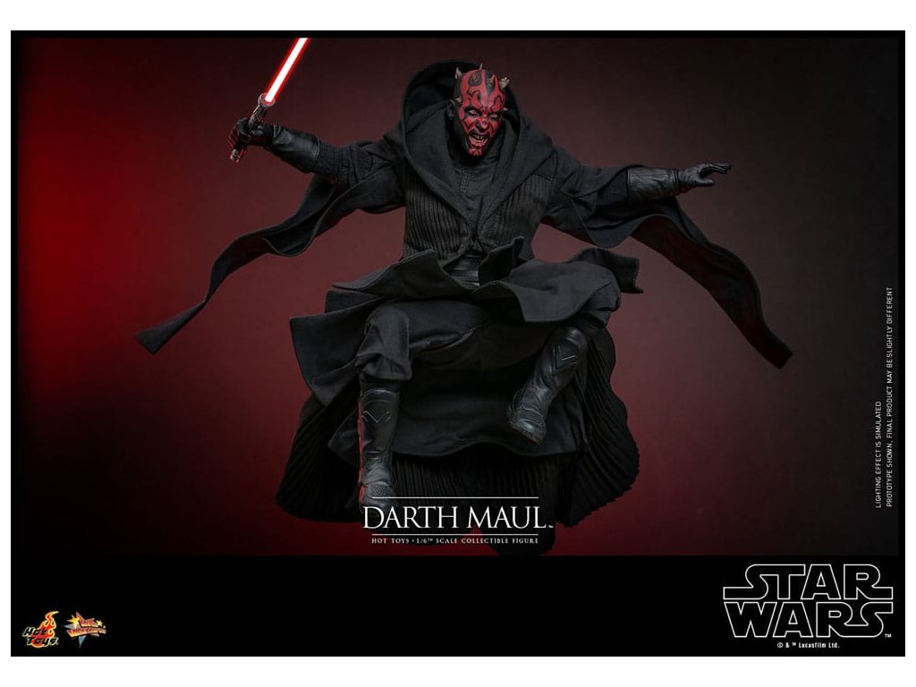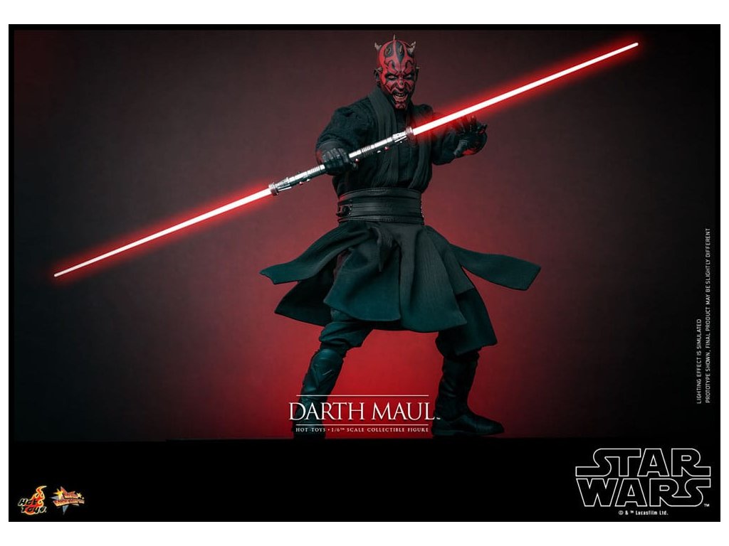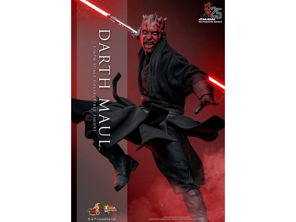Darth Maul bosszút akart állni a Jedik ellen. Végül mestere, Darth Sidious küldte őt egy merényletre Amidala királynő ellen a Tatooine külterületén. Rövid ideig összecsapott Qui-Gon Jinnel, a királynő jedi kísérőjével, de nem érte el célját. Később Maul a Naboo-n várta Amidalát, ahol összecsapott Qui-Gonnal és tanítványával, Obi-Wan Kenobival. A sith káprázatos gyorsasággal és elképesztő ügyességgel harcolt, és vörös kétpengéjű kardjával átszúrta Jinnt; Obi-Wan ellen azonban alkalmatlannak bizonyult. Egy meglepő mozdulattal a fiatal Jedi kettéhasította Mault, és a bolygó magjába küldte, látszólag megsemmisülve. a Sideshow és a Hot Toys a Star Wars I. epizód: A Fantomfenyegetés 25. évfordulója alkalmából visszatér a Darth Maul akciófigurához, és büszkén mutatja be a Darth Maul gyűjtői figurát hatodik méretarányban, nagy részletességgel. Ez az odaadás kifejező arckifejezésű fejeket biztosít a rajongóknak, a ruhát pedig aprólékosan újraalkották, hogy Darth Maul hűen ábrázolja.A filmbeli megjelenése alapján a Darth Maul Star Wars gyűjtőfigura két újonnan kifejlesztett fejet tartalmaz külön szemforgató rendszerrel, amely komoly és vigyorgó arckifejezéseket mutat, egy újonnan szabott, javított szabású köpenyt, az ikonikus kétpengű Lightsaber™-t. Darth Maul USB-ről működtethető LED-es világítással, egy Sith szondadroid, távcső, többféle cserélhető kéz a különböző pózolási lehetőségekhez, valamint egy speciálisan a figurához tervezett állvány.Foglald le ezt a remekművet, hogy bővítsd Star Wars akciófigura gyűjteményedet!Kiegészítő paraméterek