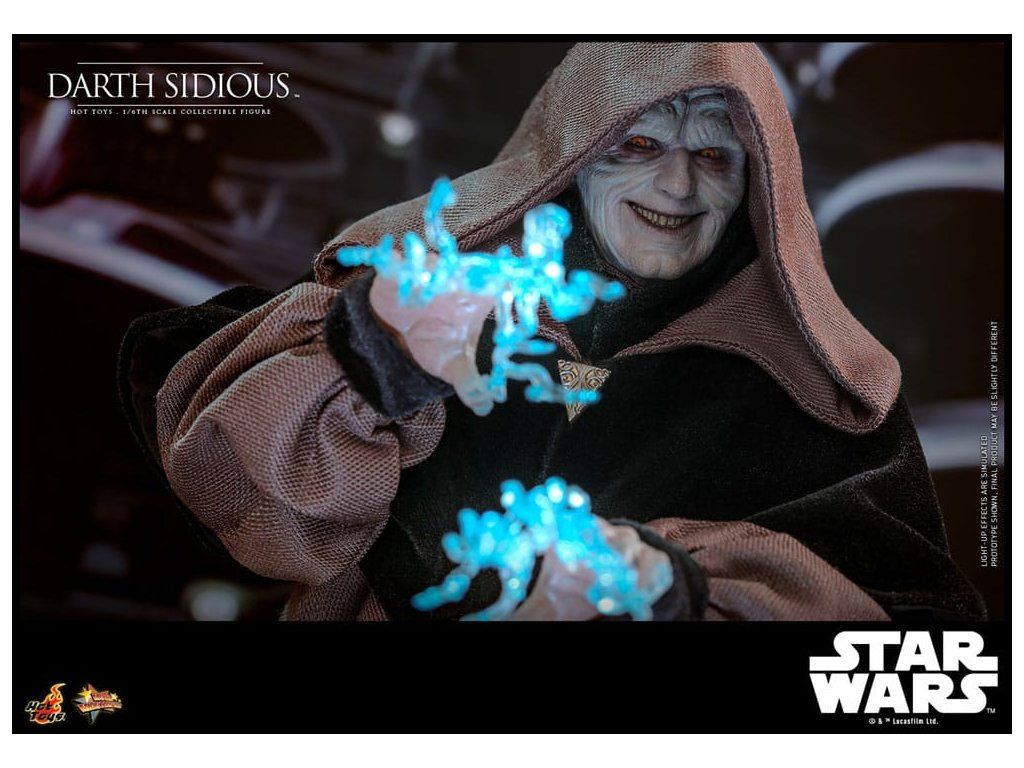 Darth Sidious, az ármánykodó, hatalmas és csontig hatoló gonosz, visszaállította a Sith-eket és elpusztította a Jedi Rendet. Kettős életet élt, mint Palpatine, Naboo szenátora és fantomfenyegető. Manipulálta a Galaktikus Köztársaság politikai rendszerét, míg végül kinevezték legfőbb kancellárnak - és végül császárnak -, és félelemmel és zsarnoksággal irányította a galaxist. A Hot Toys Dark Side of Star Wars kollekcióját bővítve a Sideshow és a Hot Toys örömmel mutatja be az 1/6-os méretarányú Darth Sidious gyűjtői figurát - a leghírhedtebb Sith-et! Ez a rendkívül részletesen kidolgozott Star Wars akciófigura mesterien megmunkált, újonnan kifejlesztett fejjel, amely fenyegető arckifejezést mutat, és különálló forgó szemrendszerrel, amely lehetővé teszi a szemek állítható pozícióját, puha ruhával, USB-ről működtethető LED Lightsaber™ fénykarddal, Erő villám effektekkel és egy figuraállvánnyal! A Star Wars Sötét Oldal gyűjteményed hatalma ezzel az új 1/6-os Darth Sidious gyűjtőfigurával tovább fog nőni!Kiegészítő paraméterek