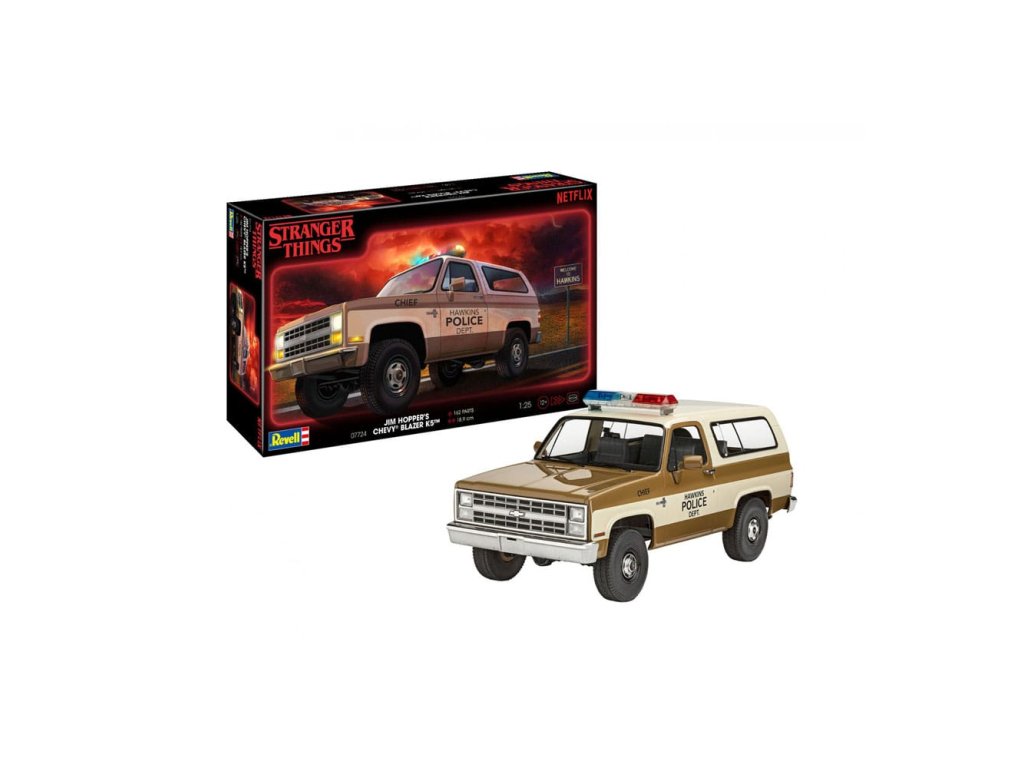 A világhírű "Stranger Things" című sorozat a Netflix streaming szolgáltatás három legnépszerűbb sorozatának egyike. A sorozat Hawkins kisvárosában játszódik, ahol Jim Hopper seriff kulcsszerepet játszik. Hivatalos autója egy Blazer K5, egy Chevrolet teherautó, amelyet gyakran vezetnek az Egyesült Államokban. Az autó rendszeresen megjelenik a Stranger Things sorozatban, különösen az első három évadban. Annak érdekében, hogy hűen visszaadják az autó megjelenését, egy új modellt fejlesztettek ki a sorozathoz - Teljesen új formák - Többrészes motor - A szériaautó alapján készült festési specifikációk és összetett matricák. Jim Hopper seriff Chevrolet K5 Blazerének induló készlete a népszerű Netflix sorozatból, a "Stranger Things"-ből. 1:25 méretarány. 100 alkatrész. Hossza 188 mm. Alkalmas 10 éves kortól.Kiegészítő paraméterek