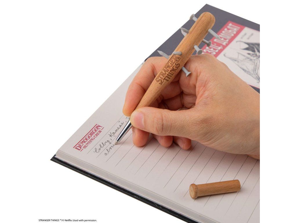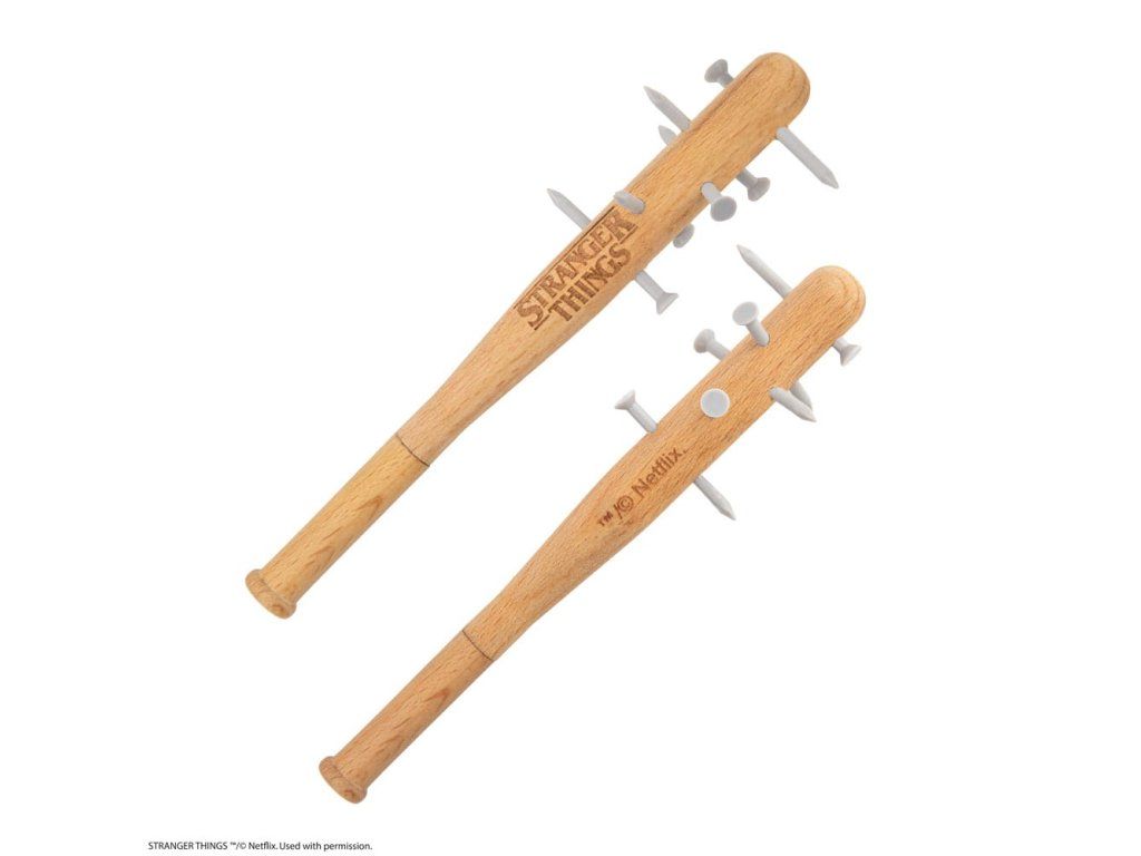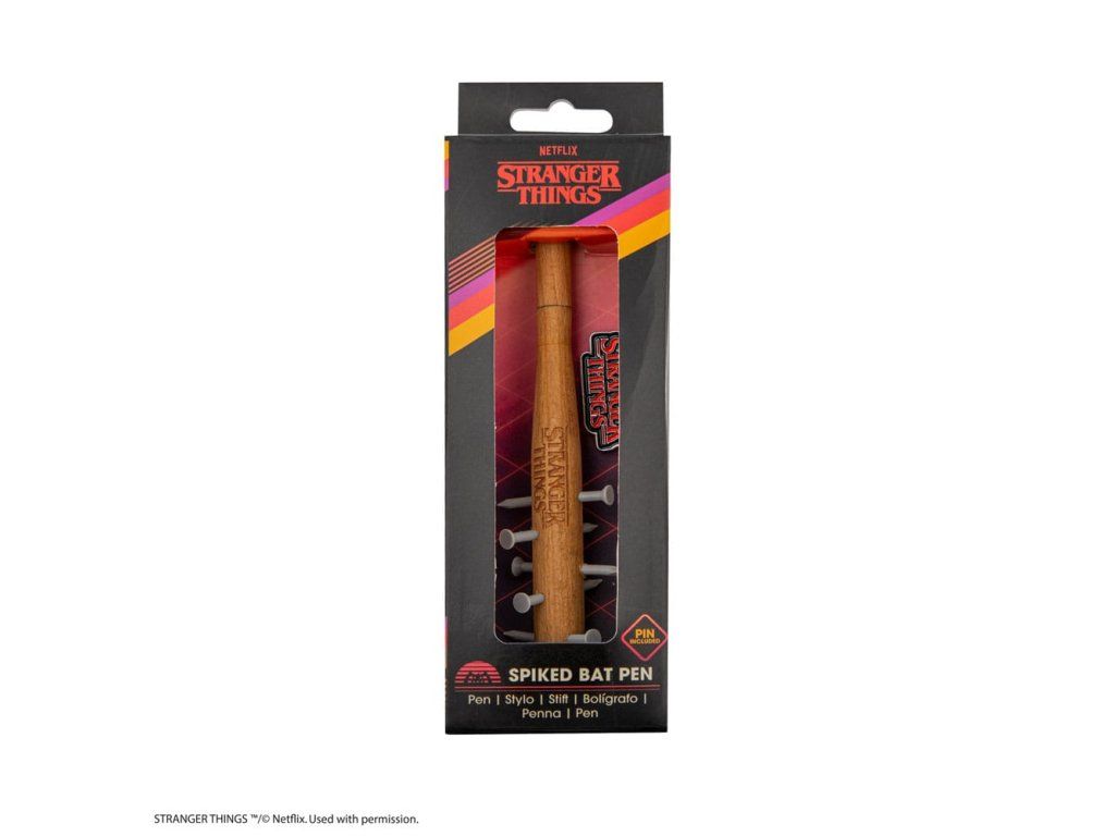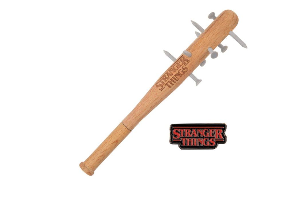 Hívd fel magadra a figyelmet ezzel az egyedi Stranger Things tollal, amely a Jonathan Byers által először megalkotott ikonikus fegyver előtt tiszteleg, amelyet később Steve Harrington használt a Demodogok elleni harcban. Ez a toll a sorozat ikonikus hegyes botjának kicsinyített mása, kompakt 13 cm-es méretben. A részletekre odafigyelve készült, a gumiszegecsek valósághű érzetet nyújtanak anélkül, hogy valódi veszélyt jelentenének a felhasználóra nézve. A toll tokja fából készült, megőrizve az eredeti hokiütő rusztikus báját. Hogy még jobban megszerettessük ezt a tollat, minden tollat egy exkluzív Stranger Things jelvénnyel szállítunk, így a sorozat rajongóinak kihagyhatatlan gyűjtői tárgya lesz. Akár firkálnivalóra van szükséged, akár büszkén mutatod ki a Stranger Things iránti vonzalmadat, ez a toll biztosan beszédtéma lesz - Toll: 13 x 3 x 3 cm - Jelvény: 3 x 1,3 cm - Toll: Fa, PVC, műanyag - Jelvény: Cinkötvözet.Kiegészítő paraméterek