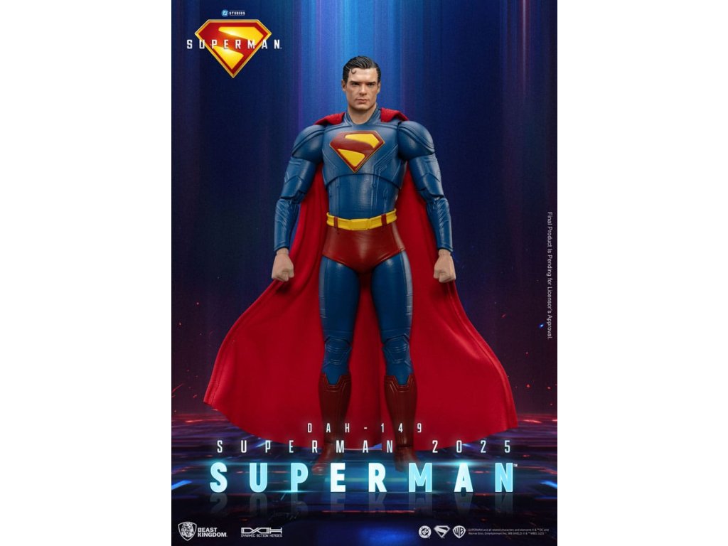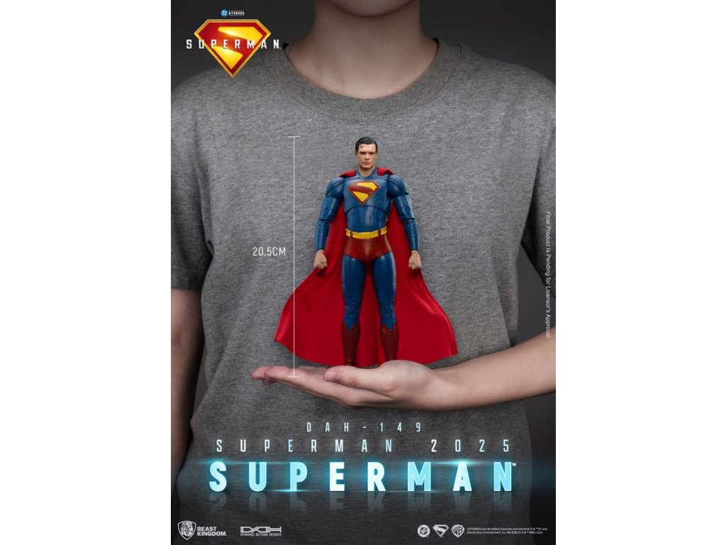 "A képességeimet ajándéknak tekintem, nemcsak magamnak, hanem mindenkinek, akinek szüksége van rá." A DC Univerzum legikonikusabb hőse, Superman diadalmasan tér vissza! Visszatérését a DC Studios közelgő "Superman: 2025" című filmje hirdeti, amelynek bemutatásához a Beast Kingdom büszkén mutatja be az Acélember teljesen új változatát a Dynamic 8ction Heroes (DAH) sorozat részeként. Lépj be Metropolisba, és legyél tanúja egy legenda újjászületésének!A kiváló minőségű 3D modellezéssel és szakértői festéssel készült figura hűen adja vissza a Superman: 2025 című filmben látható teljesen új öltözék dizájnját. A mély tengerészkék öltözéket élénkpiros köpeny egészíti ki, a mellkason lévő klasszikus "S" embléma pedig fantáziadús, háromdimenziós piros-sárga szoborral jelenik meg, amely a remény és az igazságosság új hajnalát szimbolizálja. A fejszobor a színész lényegét örökíti meg a képernyőn, ikonikus frizurájától kezdve az éles, határozott tekintetéig. A figura nagyjából 22 artikulációs ponttal rendelkezik, így a gyűjtők számos klasszikus pózban újraalkothatják. Emellett négy pár cserélhető kéz (ököl, nyitott kéz, tárgyat tartó kéz és nyugodt kéz) is tartozik a dinamikus megjelenítési lehetőségekhez.Bónuszként a Superman-készlet tartalmazza Superman hűséges kutyatársát, Krypto-t, a szuperkutyát, amely tökéletesen megteremti a hősies köteléket, és még nagyobb értéket ad a gyűjteményednek.Bárhol is vagy, Superman mindig az emberiség legfényesebb oldalát képviseli. Most hagyd, hogy ez a legendás kriptoni hős ragyogjon gyűjteményed középpontjában! - Finoman megformázott fej, amely a Superman: 2025 című filmből származó képmást örökíti meg - Karcsú, mozgékony test, körülbelül 22 ízülettel - 4 cserélhető kézkészlet: ököl, nyitott kéz, tárgyat markoló kéz és laza kéz - Tartozékok: Krypto, Szuperkutya.Kiegészítő paraméterek