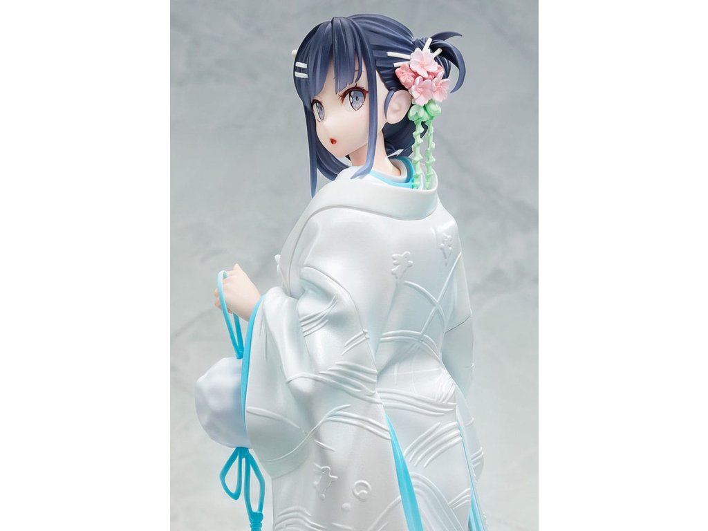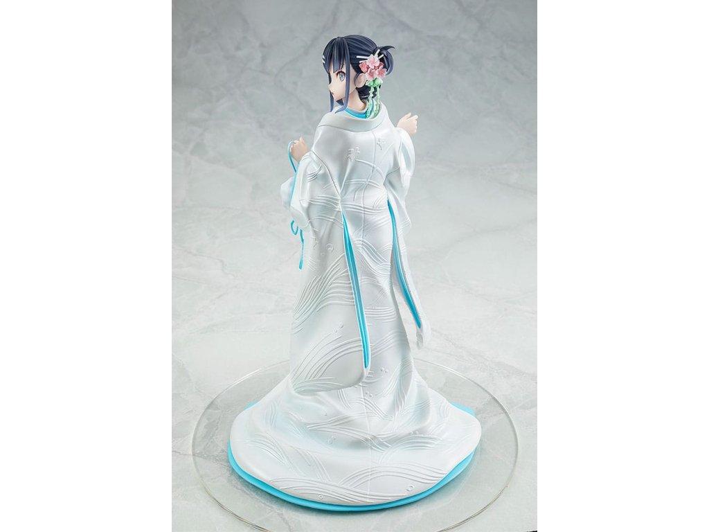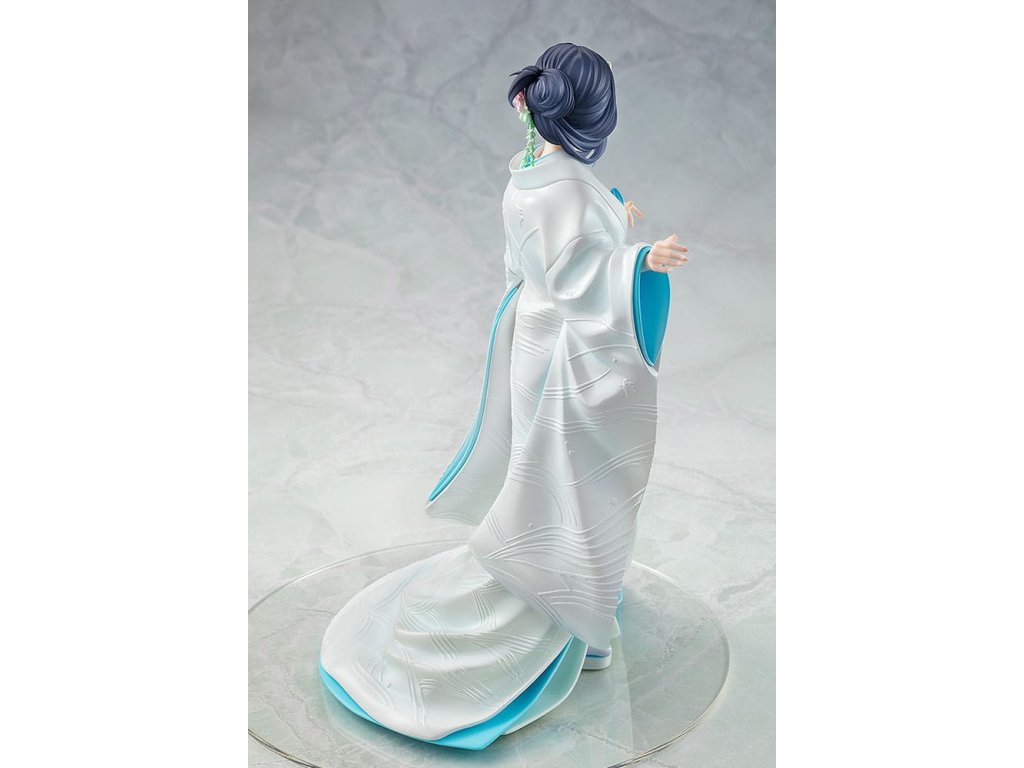 Van egy figura, amely Mai Sakurajimát ábrázolja a Rascal Does Not Dream sorozatból, fehér kimonóba - hagyományos japán esküvői öltözékbe - öltözve. A figura Kei Mizoguchi, az eredeti light novel sorozat illusztrátorának illusztrációján alapul, és az elegáns és kifinomult bájt hűen visszaadta. A figura Mai-t ábrázolja, amint megfordul, megmutatva a gyönyörű kontrasztot sápadt nyaka és fényes, sötét haja között. A kipirult arca is aranyos. Az eredeti illusztráció egyedi kompozícióit és színvilágát reprodukálták. A tiszta fehér külső kimonóra finom gyöngyházfényű lakkot vittek fel a vonzó megjelenés érdekében, a gyönyörű hullámos mintákat pedig félig 3D-s részletekkel alkották újra. Egészítse ki gyűjteményét ezzel a különleges Mai Sakurajima figurával esküvői öltözékben.Kiegészítő paraméterek
