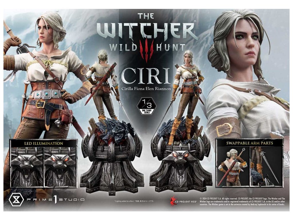 A régi vér gyermeke, aki megteremti a sorsát, részletesen ábrázolva 1/3 méretben. Gyors kardforgató képesség a csatatéren, páratlan mágikus erő emberi felfogással felfoghatatlan. Ciri Fiona Elen Riannon a The Witcher 3: Wild Hunt című nyílt világú RPG-ből, most a Prime 1 Studio múzeum Masterline-ban ábrázolva! Bár gyakran elhatalmasodik rajta a hatalmas ereje, az Öreg Vér Gyermeke továbbra is alakítja a sorsát. Méltó helytállását részletgazdag, 1/3 méretű szoborban hűen reprodukálták. Jól lakkozott bőre kiemeli természetes, áttetsző megjelenését, míg az olyan finom részletek, mint a finom szeplők és a dekoltázsán lévő sebhely hűek a játékbeli megjelenéséhez. A blúzának durva, vászon textúrájától kezdve a gondosan megmunkált bőrszíjakig, nadrágokig és csizmákig, a jelmezének minden részletét gondosan megterveztük, hogy az idővel járó, valósághű kopást érzékeltessük. Ezenkívül két cserélhető jobb karrész lehetővé teszi a többféle megjelenítési lehetőséget: az egyikben a kardját húzza ki, a másikban pedig a keze a hátán lévő markolaton pihen. Testre szabhatod a látványt, és létrehozhatod a kedvenc jelenetedet. A Macskák iskolája által inspirált alapon egy leölt vadászkutya és egy macska izzó, pirosan világító szemei láthatók, amelyeket LED-ek világítanak meg, hogy az északi királyságok világába csábítsanak. Geralt és Yennefer után most Ciri is csatlakozik a Museum Masterline termékcsaládhoz. Élvezd a gyűjteményedben ennek a lenyűgöző szobornak a méretét és részletes kidolgozottságát. Termékleírások: - The Witcher 3: Wild Hunt tematikus alap (LED világítással) - 2 x jobb kéz (kardot kihúzva, kardot tartó kéz hátul) - LED áramellátási mód: TBD *Kérlek, készítsd elő az elemeket, USB kábeleket vagy más szükséges elemeket a végső áramellátási módtól függően. A termék mérete miatt további szállítási költségek merülhetnek fel. Ezeket a költségeket az Ön tartózkodási helye mellett a csomag tényleges mérete és súlya alapján kell meghatározni. Mindkettő jelenleg még nem ismert, és előfordulhat, hogy nem áll rendelkezésre, amíg a termék meg nem érkezik a raktárunkba.Kiegészítő paraméterek
