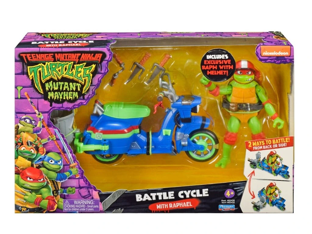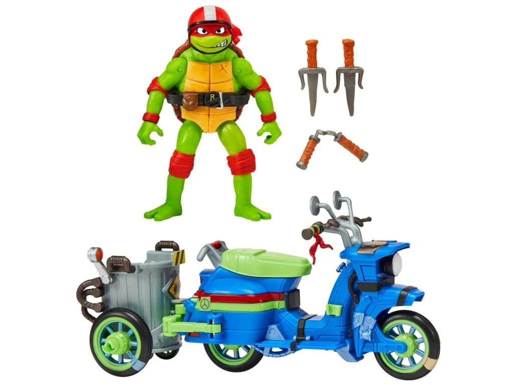 Amikor egy Teknőc nem elég, hogy elbánjon Szuper Légy és a gengszterekkel, a Teknőcök Raph-t és egyik testvérét hívják, hogy elintézzék a bajt! Barátjuk, April robogóját átalakítják harci kerékpárrá, átalakítható oldalkocsival, hogy mind a négy testvér felülhessen rá és harcolhasson! Az oldalkocsit hátulra vagy oldalra lehet rögzíteni. Minden attól függ, milyen harci akciót szeretnél a rosszfiúk legyőzésére! AUTHENTIKUS: Raph harci kerékpárja hitelesen úgy van megtervezve, ahogy a Mutant Mayhem filmben is megjelenikVÁTHATÓ: Az oldalkocsit át lehet alakítani oldalsó és hátsó ülésre is - és a négy Teknőc bármelyik testvér utazhat rajtaTURTLE TOY: Tartalmaz egy exkluzív, 11,6 cm-es alapra épülő Raphael akciófigurát 12 csuklós ponton, az akciódús harci pózokhozKIEGÉSZÍTŐK: A készlet tartalmazza Raphael erős dupla saiját, amely harci ciklushoz elrakható, valamint egy nunchakut, amely az oldalkocsihoz rögzíthető az extra harci akciókhoz.Kiegészítő paraméterek