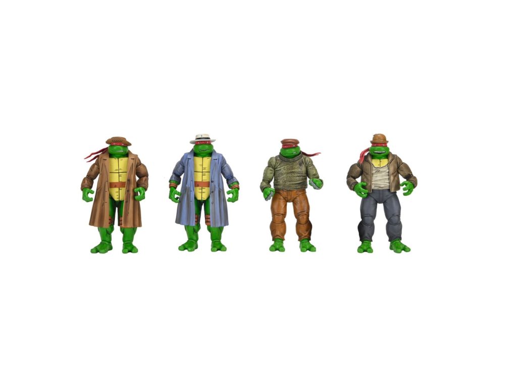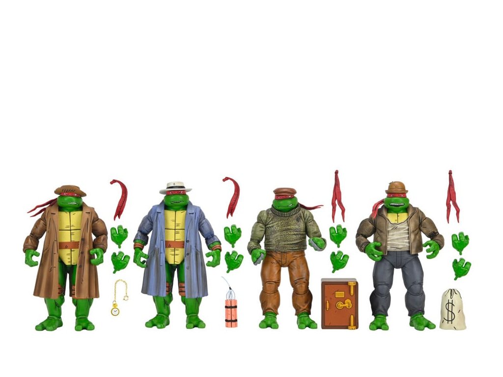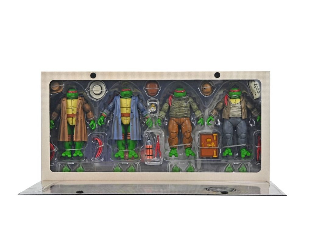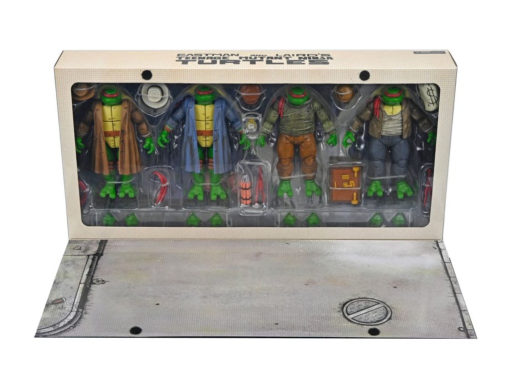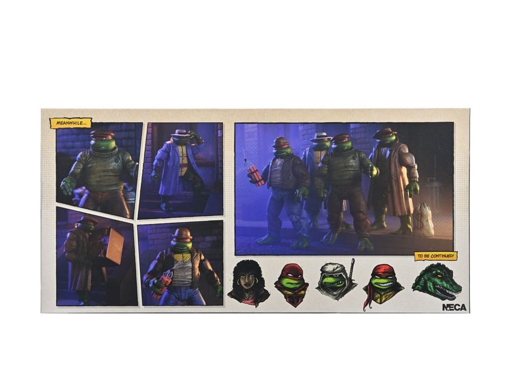 Ahogyan az Eastman & Laird, a Mirage Studios által készített eredeti Tini Mutáns Nindzsa Teknőcök képregény 14. számában látható! Pszt ... ne szólj senkinek ezekről a figurákról! Az ellopott réz tehén után kutatva ezek a gengszter teknőcök készen állnak, hogy csatlakozzanak a TMNT gyűjteményedhez. Ez a 7 hüvelykes (18 centiméteres) akciófigurakészlet az egész csoportot tartalmazza - Leonardót, Donatellót, Raffaelt és Michelangelót -, nem beszélve az új kifejezésekről, amelyek kompatibilisek a NECA régebbi Mirage Turtles 4-es csomagjával (külön megvásárolható). Hanyagolnánk, ha nem említenénk meg, hogy a csomagolást egy gyűjtői tokba csomagolták, Kevin Eastman lenyűgöző, eredeti illusztrációjával!