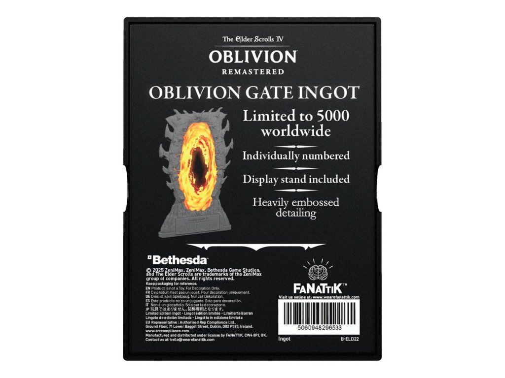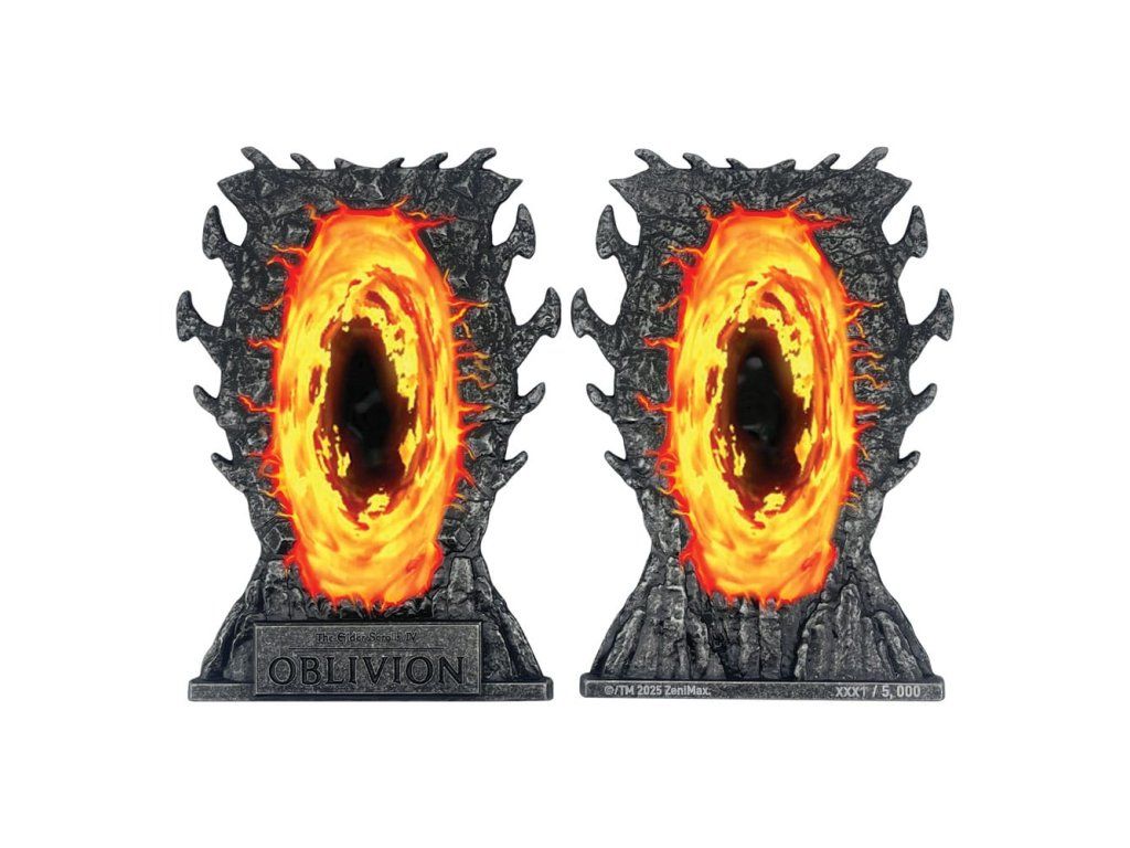 A The Elder Scrolls IV: Oblivionban látható Oblivion Gates két sík közötti utazást tesz lehetővé, és Mehrunes Dagon hozta létre, hogy Daedra társai utazhassanak Tamrielben és káoszt okozzanak. Ez a limitált kiadású tekercs a kapukat tüzes formájukban ábrázolja. Világszerte 5000 darabra limitált, 110 x 76 mm méretű, és egy bemutatóállványt tartalmaz, egy díszdobozban - 5000 darabra limitált - Hivatalos licenc - Méret 110 x 76 mm - Tartalmaz egy bemutatóállványt A csomagolás a licencadó jóváhagyásától függ.Kiegészítő paraméterek