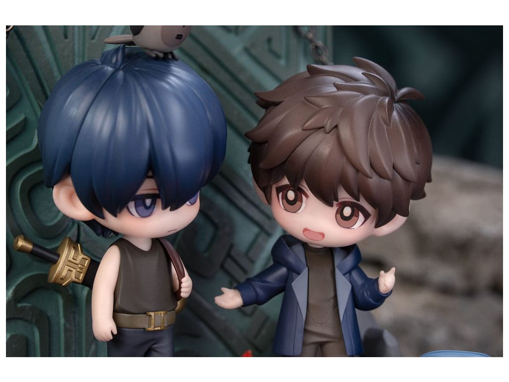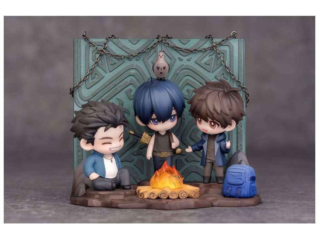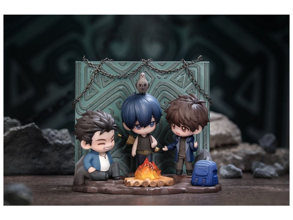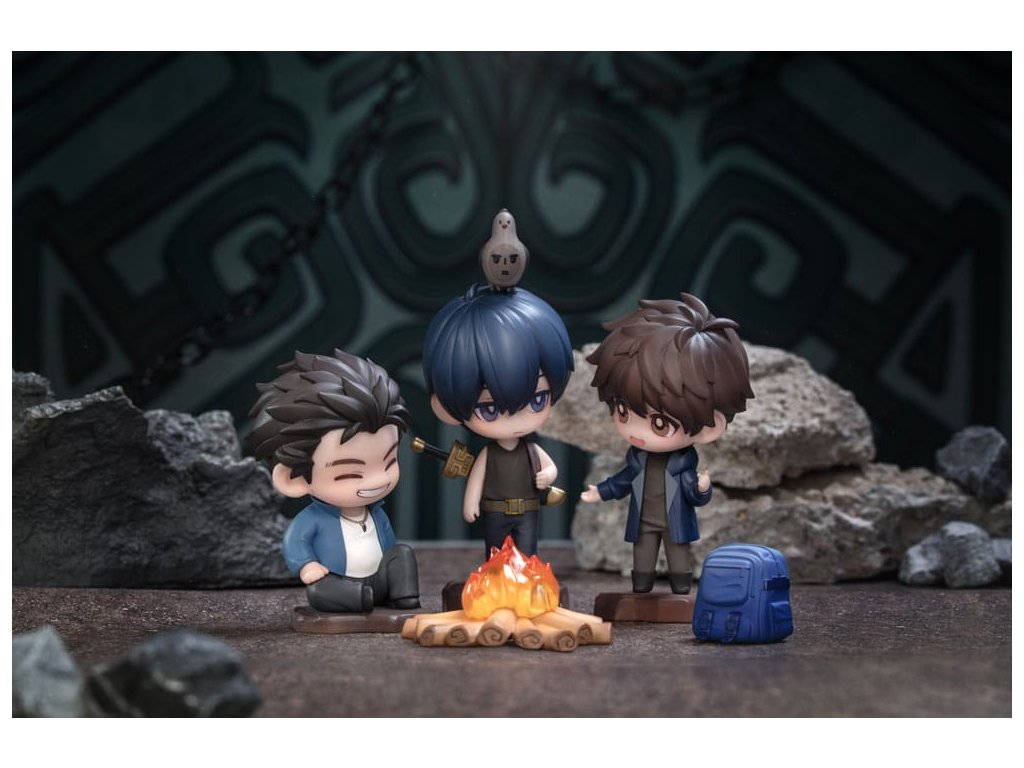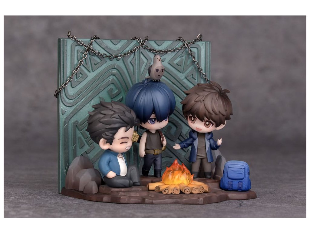 A nemzet kedvenc kalandregényéből, A sírkő-dekronikákból a Vas-háromszög találkozásának jelenetét a megbeszélt helyen egy aranyos Q-versum figurává alakították át, melynek címe: Találkozás a Csangbai-hegyen! A tett ígéret megtartott ígéret. Tíz év telt el azóta a nap óta, amikor a Vasháromszög találkozik a Bronzkapu előtt. Xie Wu, a régi ruhákba öltözve, amelyeket Kylin Zhang hagyott hátra, mielőtt belépett a Bronzajtóba, elmondja tervét, hogy visszavonul Yu faluba. Az arca ragyog az örömtől, a szemét a tábortűz világítja meg. Yueban Wang a földön ül. Kezét a lábára támasztja, mosolyogva hallgatja a beszélgetésüket, mintha nem lenne több gond a világon. Kylin Zhang nyugodtan vizsgálja a nyomokat, amelyeket az idő hagyott Xie Wu arcán, mintha gondolataiba merült volna. A hármójuk közötti zenei vonalak, és a földön heverő hátizsákok a múltbeli kalandok és megoldatlan rejtélyek emlékeit idézik fel bennük. A tábortűz pislákol, árnyékot vetve a csoportra. Kylin Zhang fején némán áll egy emberi arcú madár. A fény összefonódik az árnyékokkal, békés, mégis meleg jelenetet teremtve.Kiegészítő paraméterek