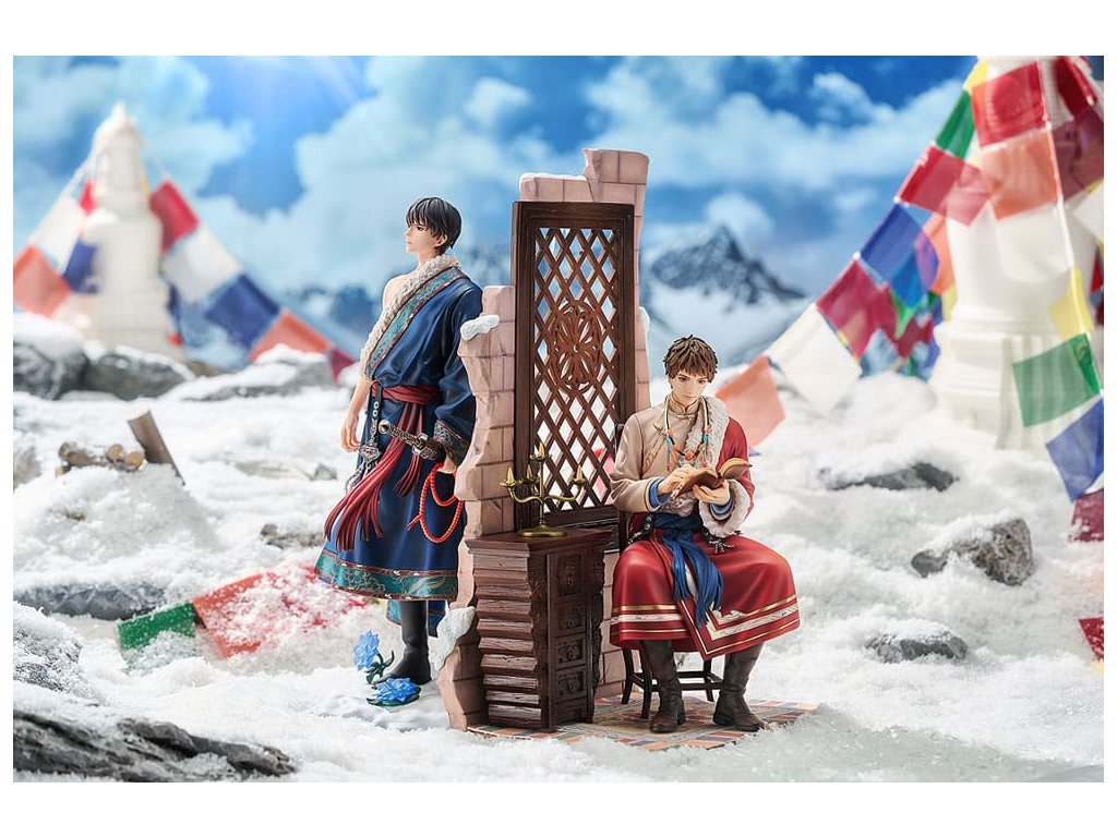 Friss hó borítja a földet, és a régi álmok ritkán jelennek meg. A TIME RAIDERS című népszerű kínai regényből egy 1/7-es méretarányú figura készült Wu Xie és Zhang Qiling hagyományos tibeti öltözékben. Zhang Qiling a hóban állva a távolba bámul. A fal másik oldalán Wu Xie egy régi jegyzetfüzetet tanulmányoz egy poros és csendes szobában. Bár sok idő telt el közöttük, mégis úgy tűnik, mintha álmukban találkoztak volna újra. Az alak egy lehetetlen jelenet fizikai megjelenítése. Az olyan részletek, mint a gyönyörűen díszített hagyományos tibeti ruha, a rusztikus bútorok, a kopott kőfal és a hóban virágzó tibeti tengeri virágok együttesen keltik életre a sorozat világát. Ne felejts el néhányat hozzáadni a gyűjteményedhez.Kiegészítő paraméterek