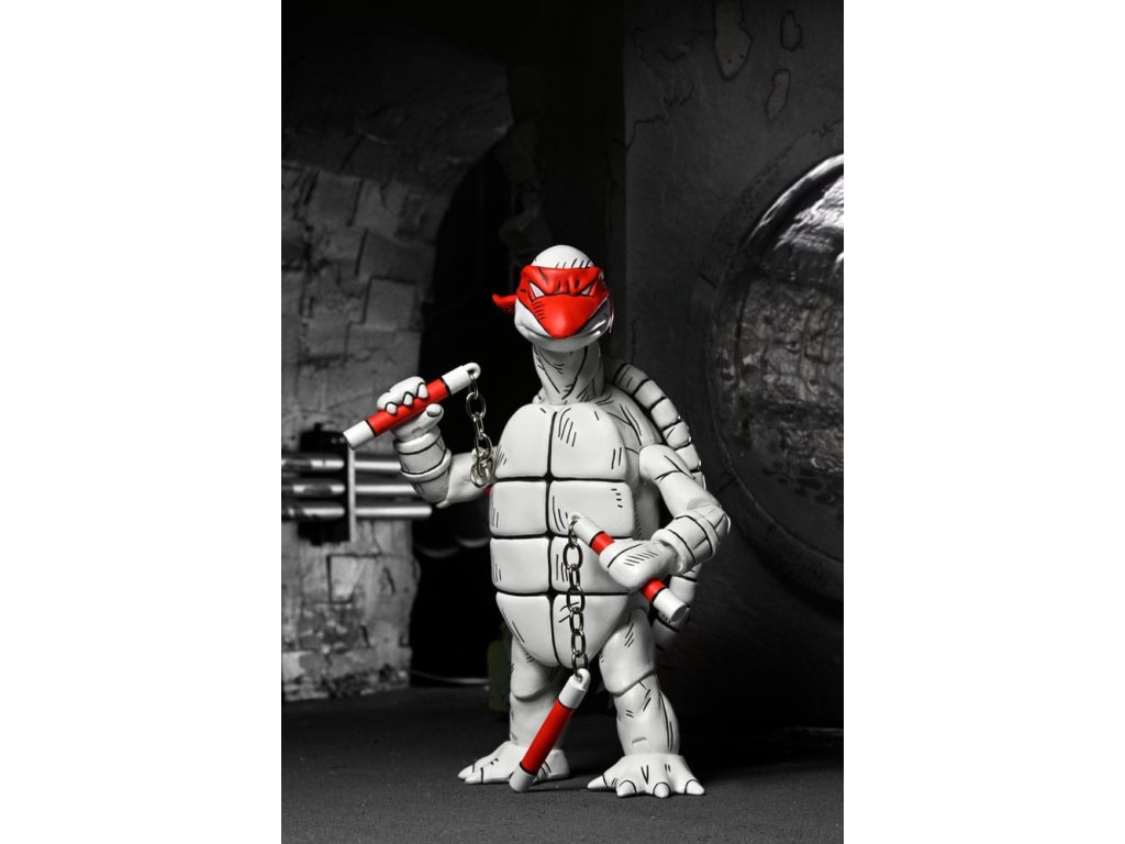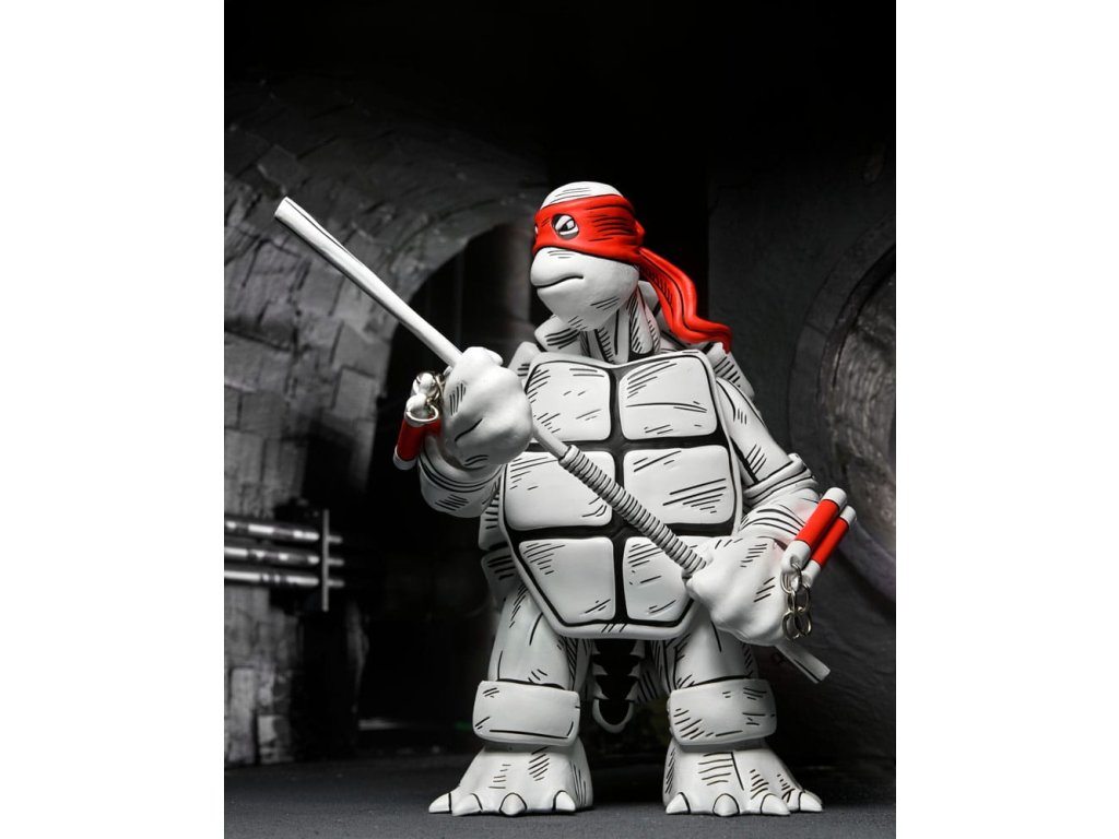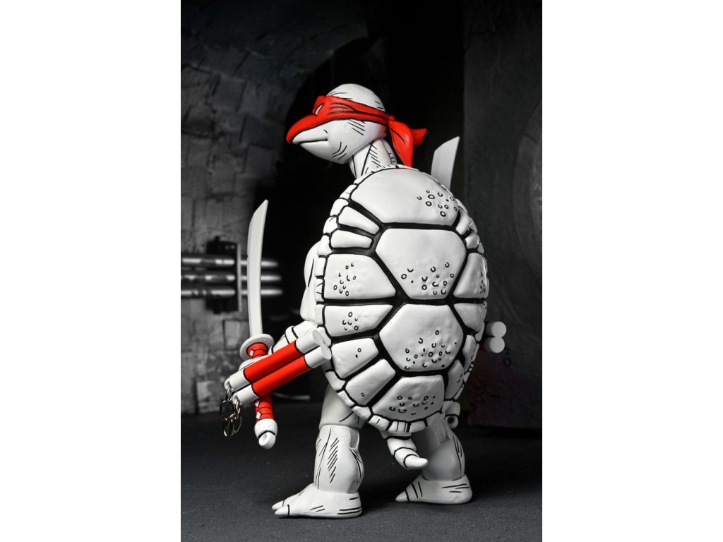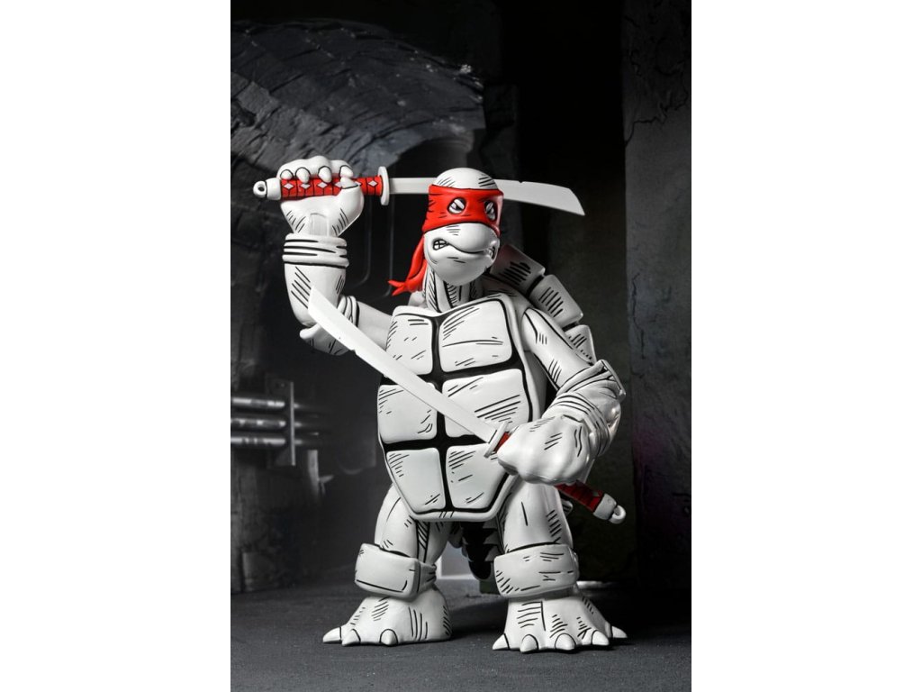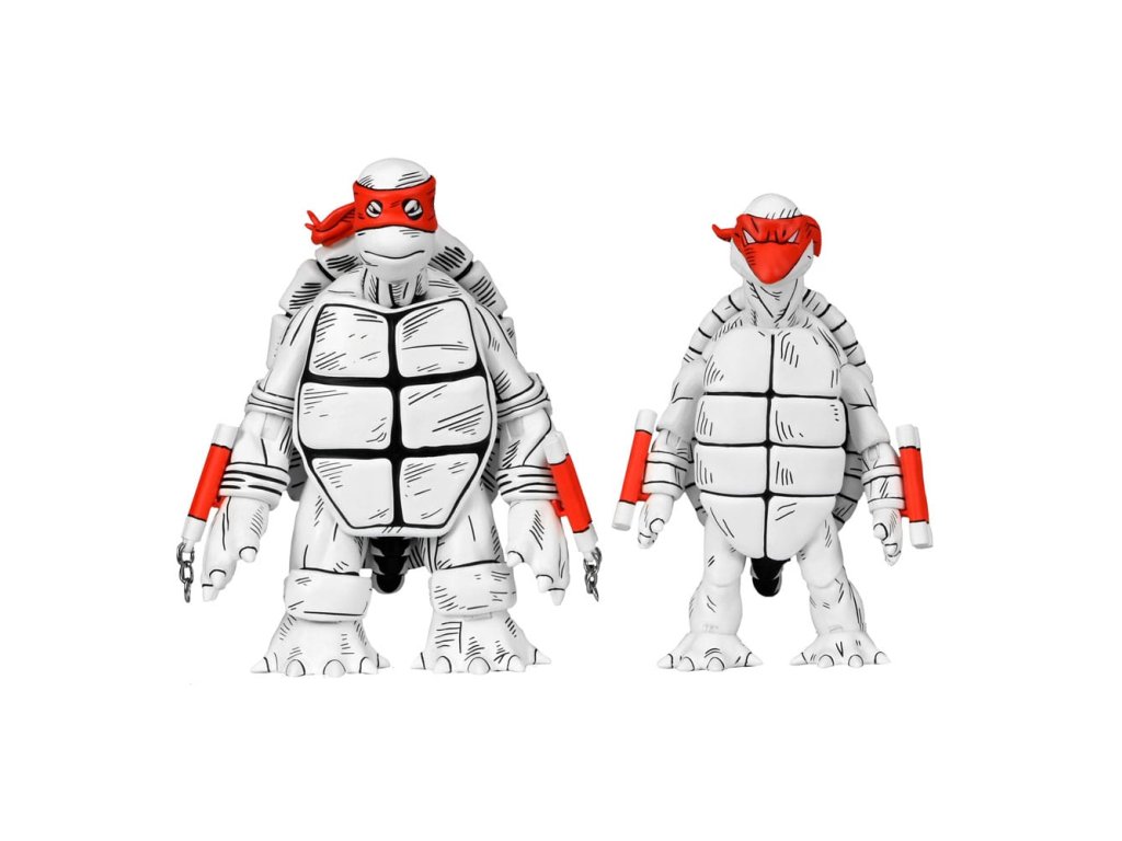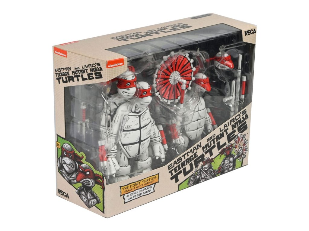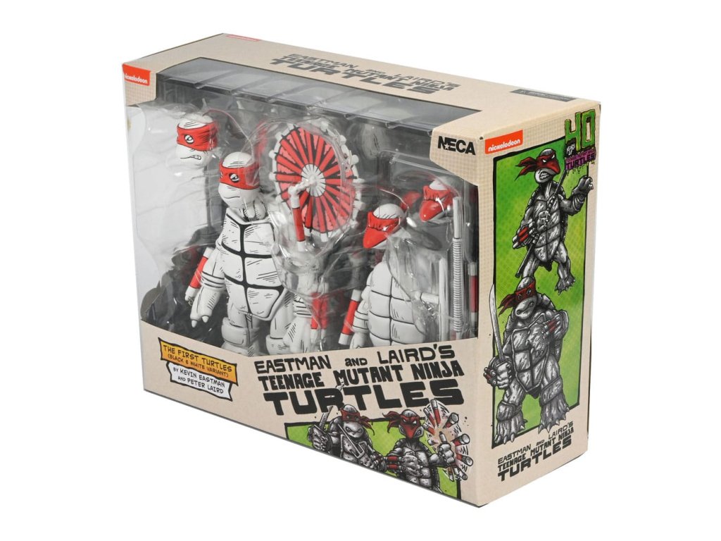 Mi az a fekete-fehér és piros mindenütt? Eastman és Laird teknősök első rajzai a NECA-tól! A "teknősök erejének" 40 évét ünnepeljük ezekkel a fantasztikus 7 hüvelykes akciófigurákkal, amelyek az eredeti rajzok alapján készültek, amelyekkel minden kezdődött! Ez a 2 darabos csomag extra kezeket, alternatív fejeket és az összes jellegzetes Tini Mutáns Nindzsa Teknőcök-fegyvert tartalmazza. Gyűjtőbarát csomagolásban, Kevin Eastman eredeti dobozrajzával.Kiegészítő paraméterek