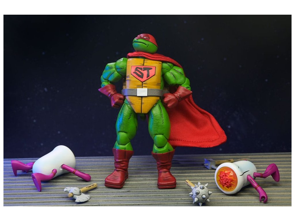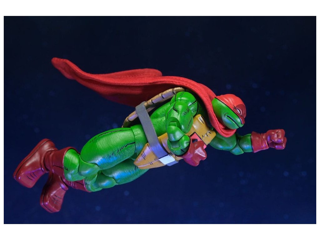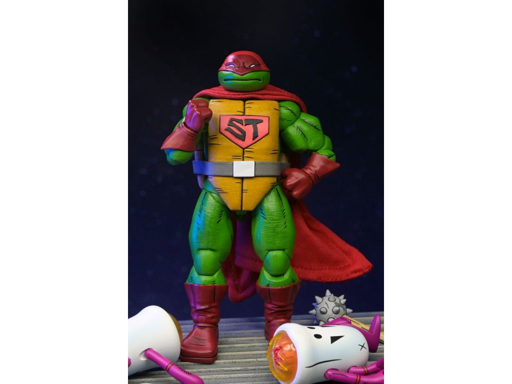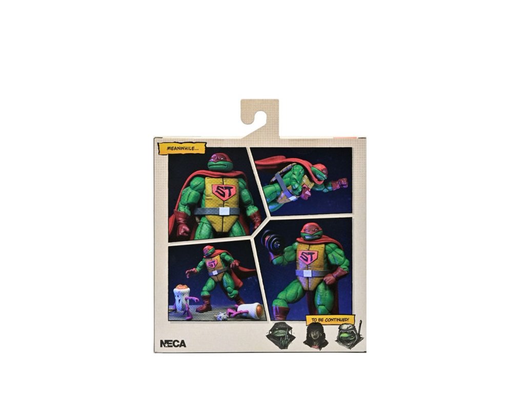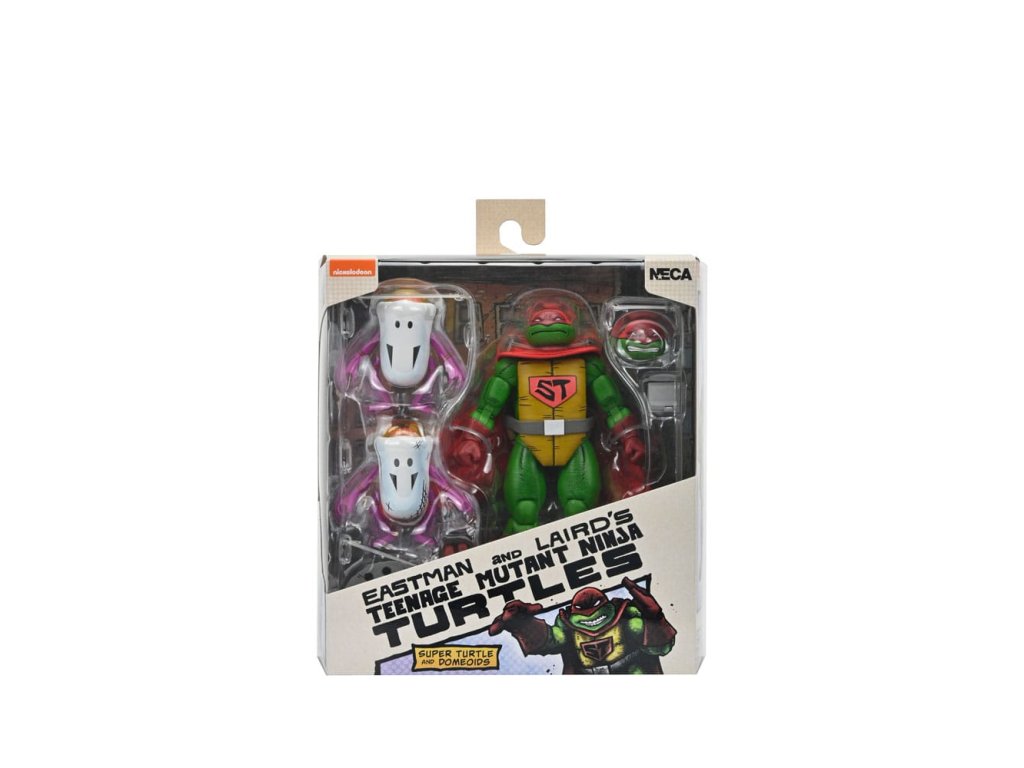 Ahogy a TMNT 5. sztorijában is láthatod, ez Szuper Teknőc! Ez a 7 hüvelykes NECA akciófigura készen áll, hogy csatlakozzon a Tini Mutáns Nindzsa Teknőcök gyűjteményedhez! A puha árucikkekből készült köpennyel kiegészített Super Turtle készen áll arra, hogy megmentse a napot, több fejjel, karral és fegyverrel. Ráadásul Domeoid minifigurákkal érkezik, tiszta és csatasérült kivitelben, ahogy a 15. számban is látható! Gyűjtőbarát csomagolásban, Kevin Eastman eredeti grafikájával.Kiegészítő paraméterek