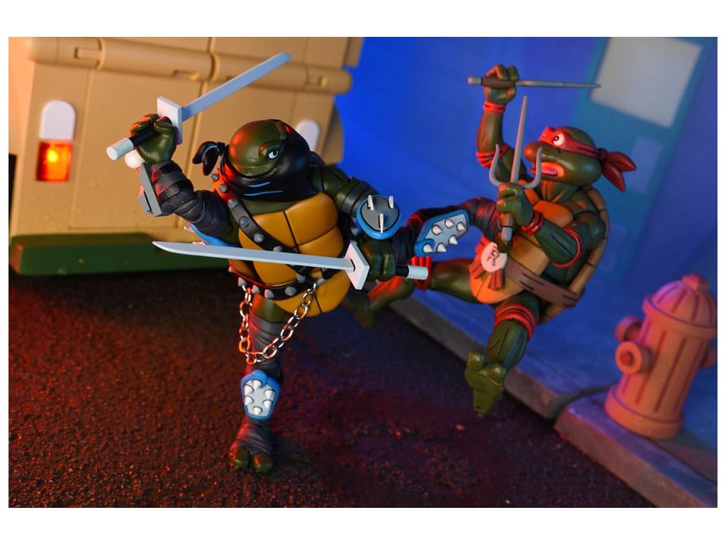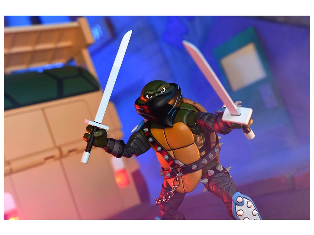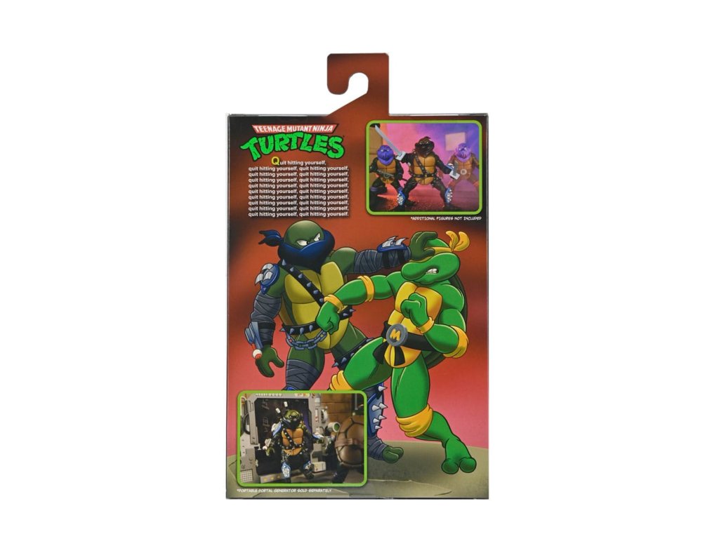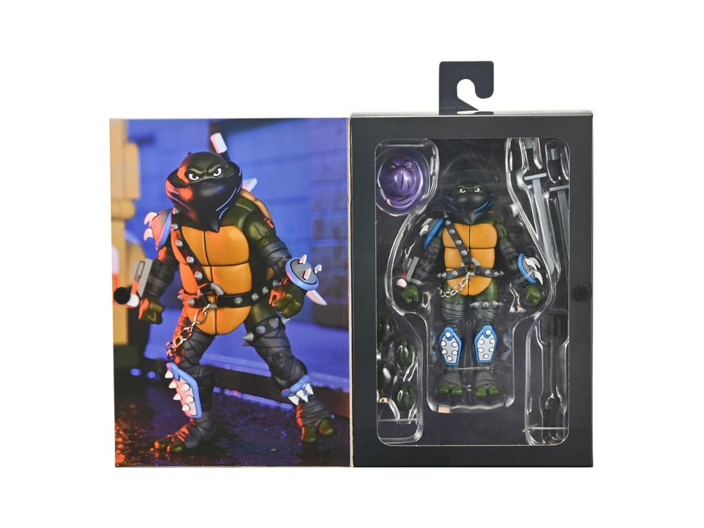 Leonardo átjutott Donatello portálján, és megváltozott teknősként tért vissza, aki most már hűséges Shredderhez és a Foot klánhoz. Az IDW Teenage Mutant Ninja Turtles: Saturday Morning Adventures című képregényének 20. számában jelent meg, és a NECA hazai stúdiójában tervezték. Ez a 7 hüvelykes Dark Leonardo akciófigura készen áll, hogy csatlakozzon a gyűjteményedhez! A tartozékok közé tartozik egy kard, egy láncra fűzött labda és egy agykontroll maszk, amely más teknősökhöz is illik (külön megvásárolható). Gyűjtőbarát csomagolásban érkezik.
