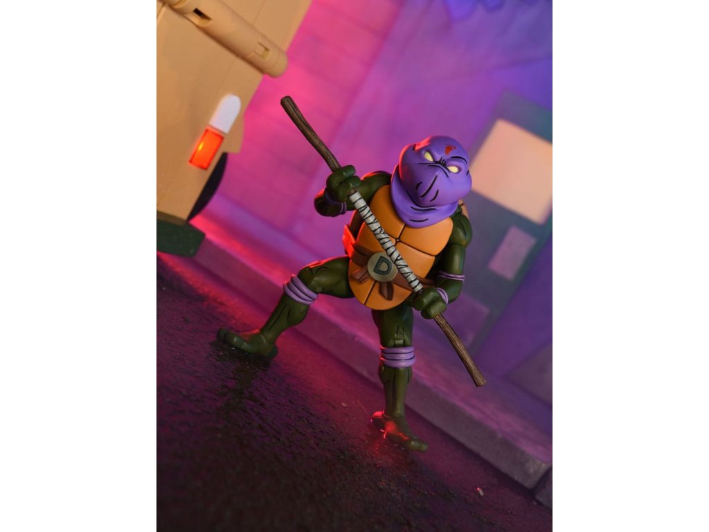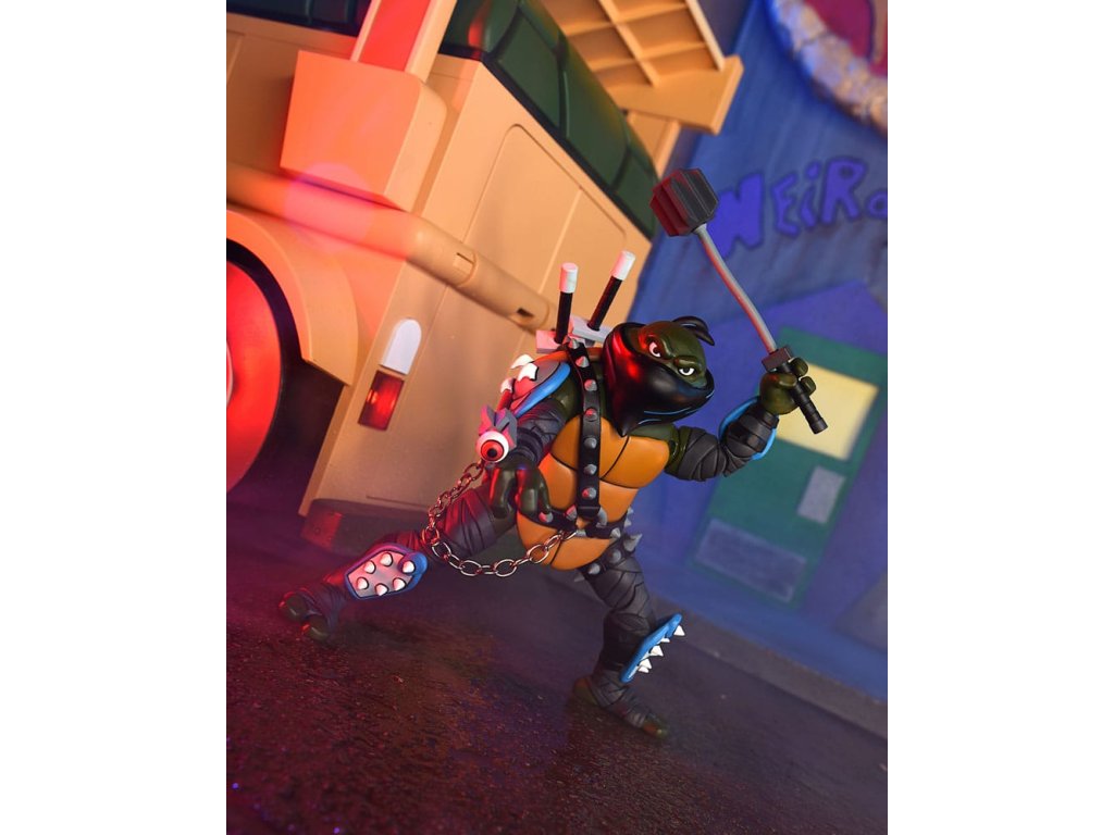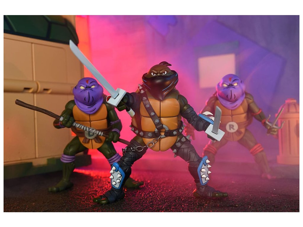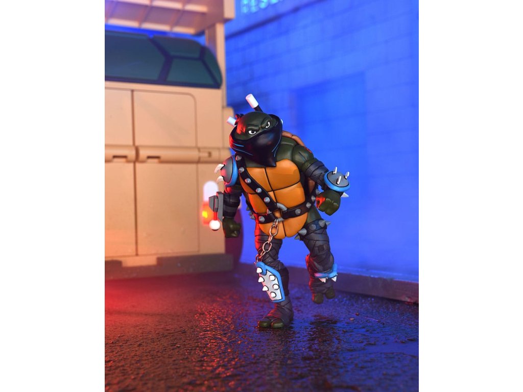 Leonardo átjutott Donatello portálján, és megváltozott teknősként tért vissza, aki most már hűséges Shredderhez és a Foot klánhoz. Az IDW Teenage Mutant Ninja Turtles: Saturday Morning Adventures című képregényének 20. számában jelent meg, és a NECA hazai stúdiójában tervezték. Ez a 7 hüvelykes Dark Leonardo akciófigura készen áll, hogy csatlakozzon a gyűjteményedhez! A tartozékok közé tartozik egy kard, egy láncra fűzött labda és egy agykontroll maszk, amely más teknősökhöz is illik (külön megvásárolható). Gyűjtőbarát csomagolásban érkezik.