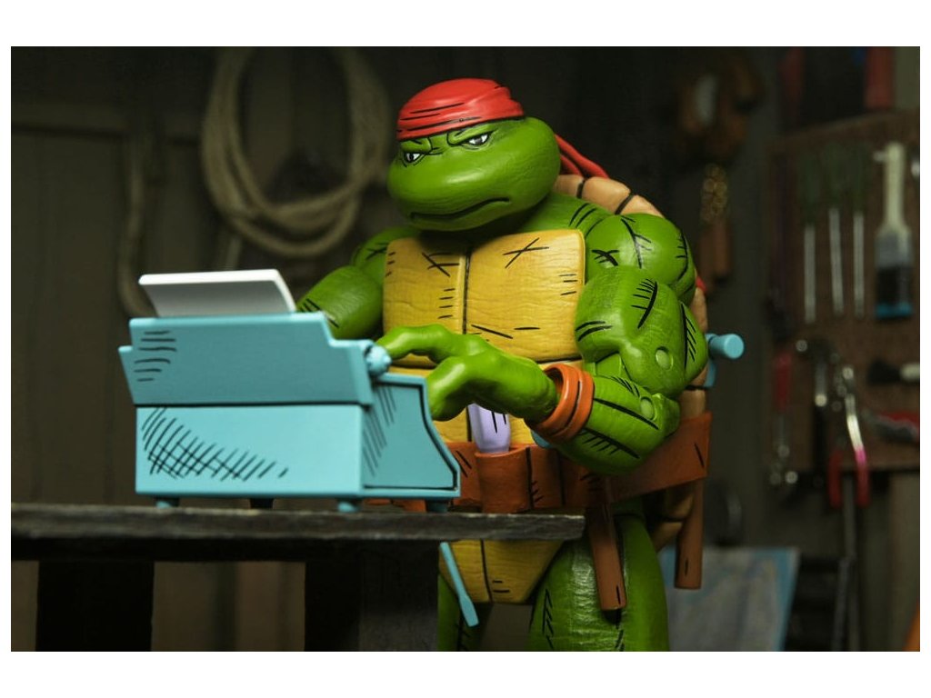 Ahogy azt az eredeti Tini Mutáns Nindzsa Teknőcök képregényekben láthattuk Eastman & Laird a Mirage Studios-tól! A 11. számban való megjelenése alapján a művész Donatello készen áll, hogy csatlakozzon a gyűjteményedhez! Ez a 7 hüvelykes NECA akciófigura extra fejeket és kezeket, szerszámövet és írógépet tartalmaz. Gyűjtőbarát csomagolásban érkezik, Kevin Eastman művészeti alkotásával.