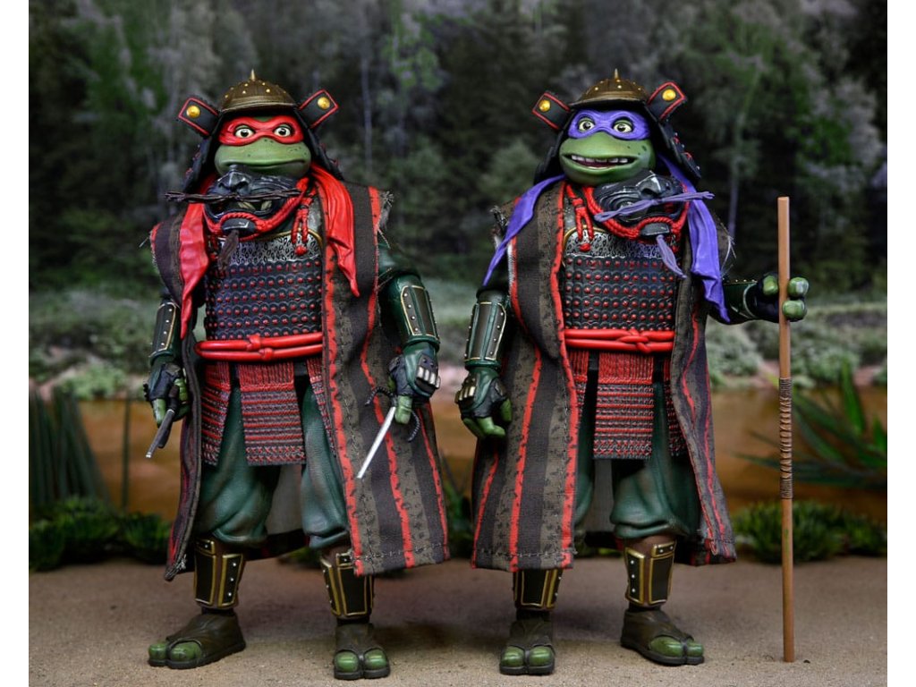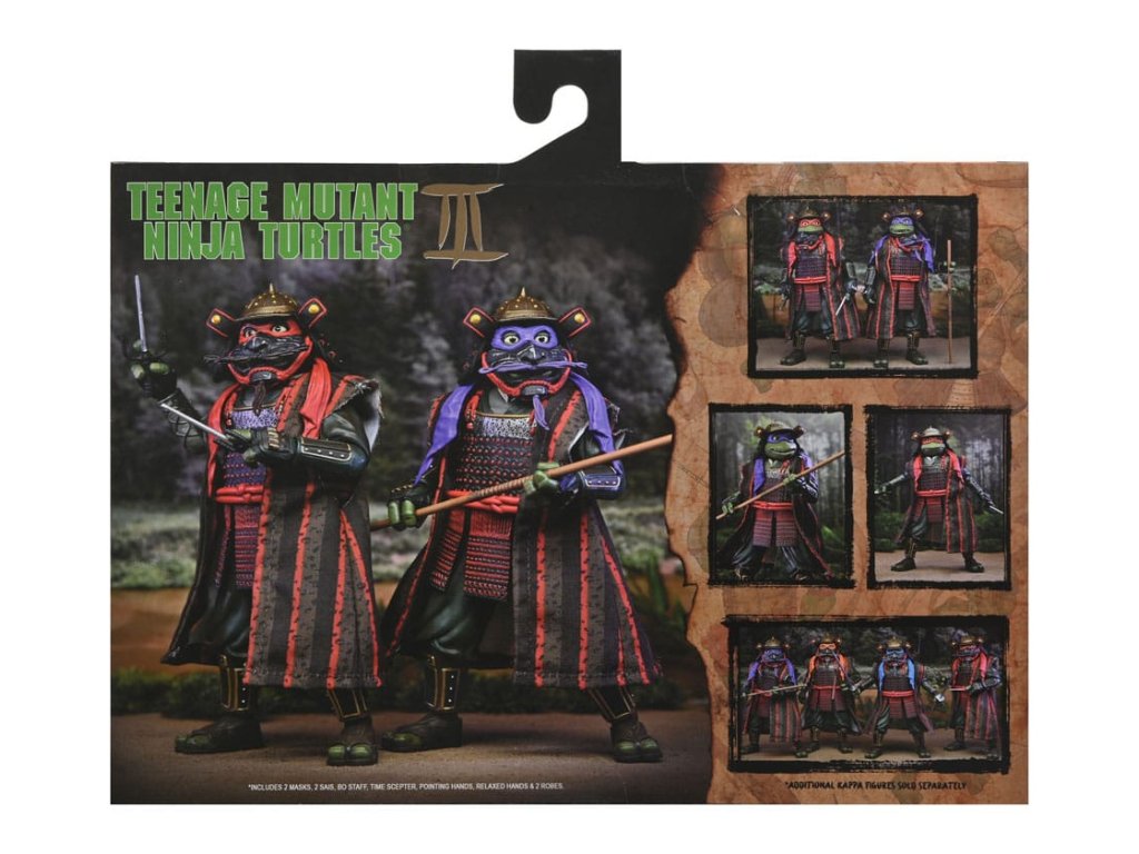 Egészítsd ki a NECA TMNT filmtrilógia gyűjteményét ezekkel a fantasztikus Tini Mutáns Nindzsa Teknőcök III akciófigura-kettőssel! Donatello és Raphael szamurájruhában, 18 cm-es méretarányú, totál radikális akciófigurákként. A figurák cserélhető kezekkel, 2 oni maszkkal, 2 saival, bo botokkal és egy Idő jogarral érkeznek. Ablakkal csomagolva a jobb bemutatás érdekében.Kiegészítő paraméterek