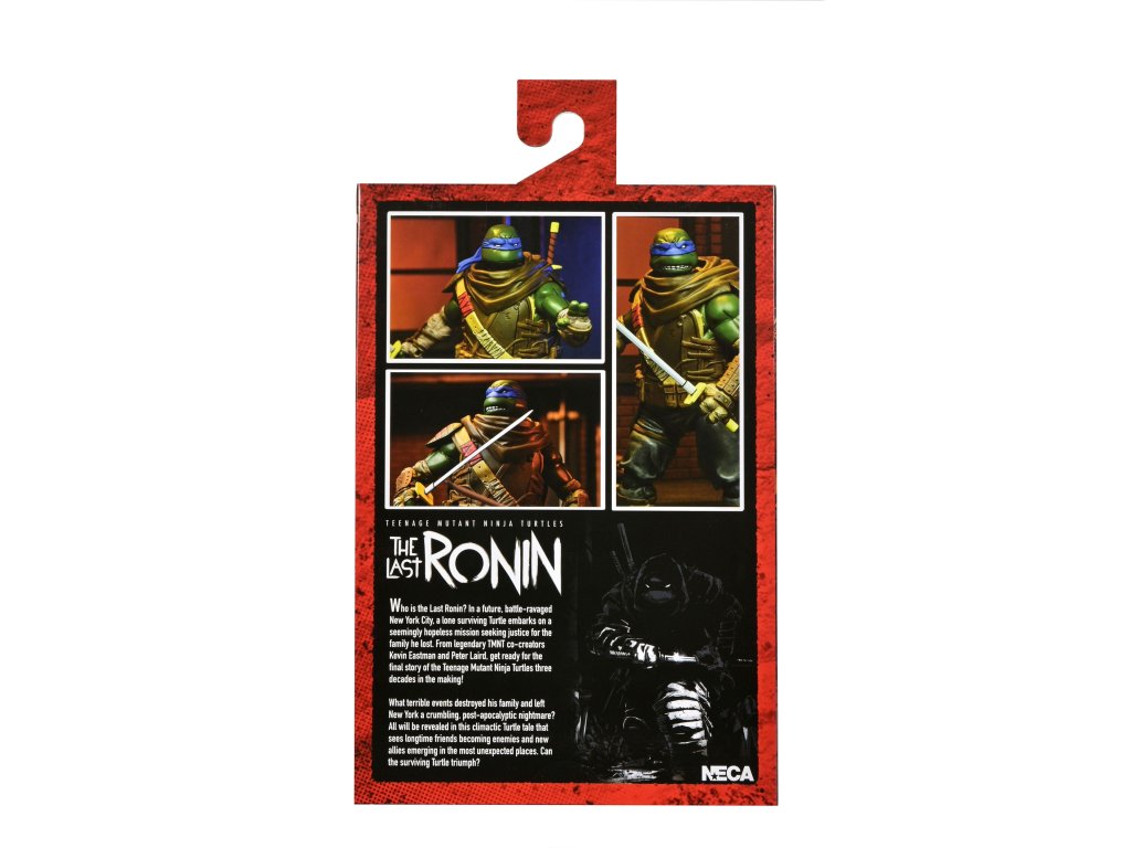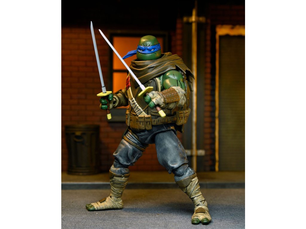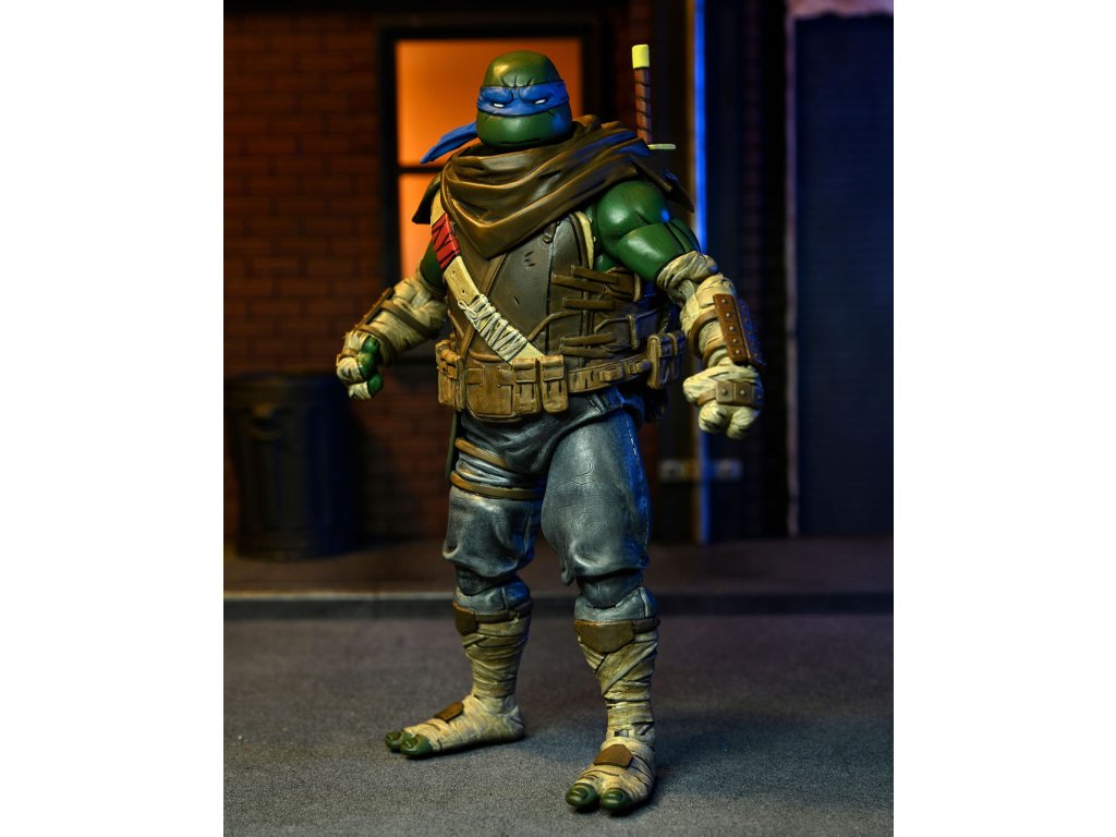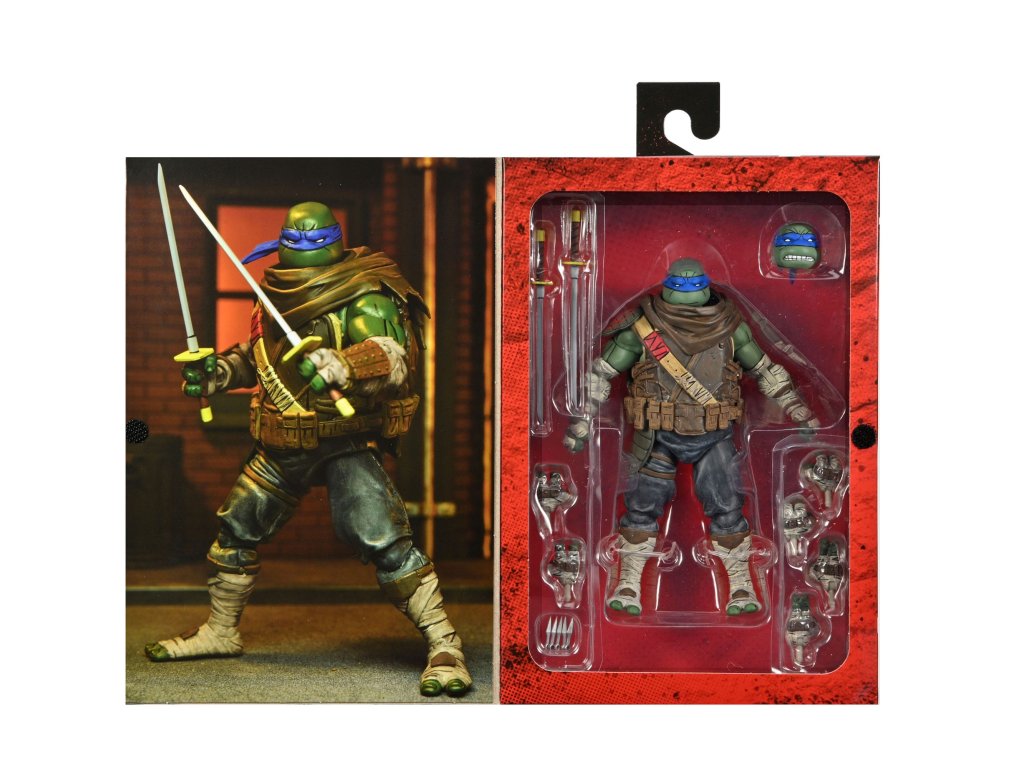 A képregény harmadik száma alapján készült Leonardo figura 18 hüvelyk magas, több mint 20 ponton artikulálható, és két cserélhető fejformát, cserélhető kezeket, katanákat és öt dobókést tartalmaz, amelyek a figura öve mögött elférnek. A figura gyűjtőbarát csomagolásban érkezik, a felnyitható elülső borítót Az utolsó Ronin művészének, Ben Bishopnak az illusztrációja díszíti.