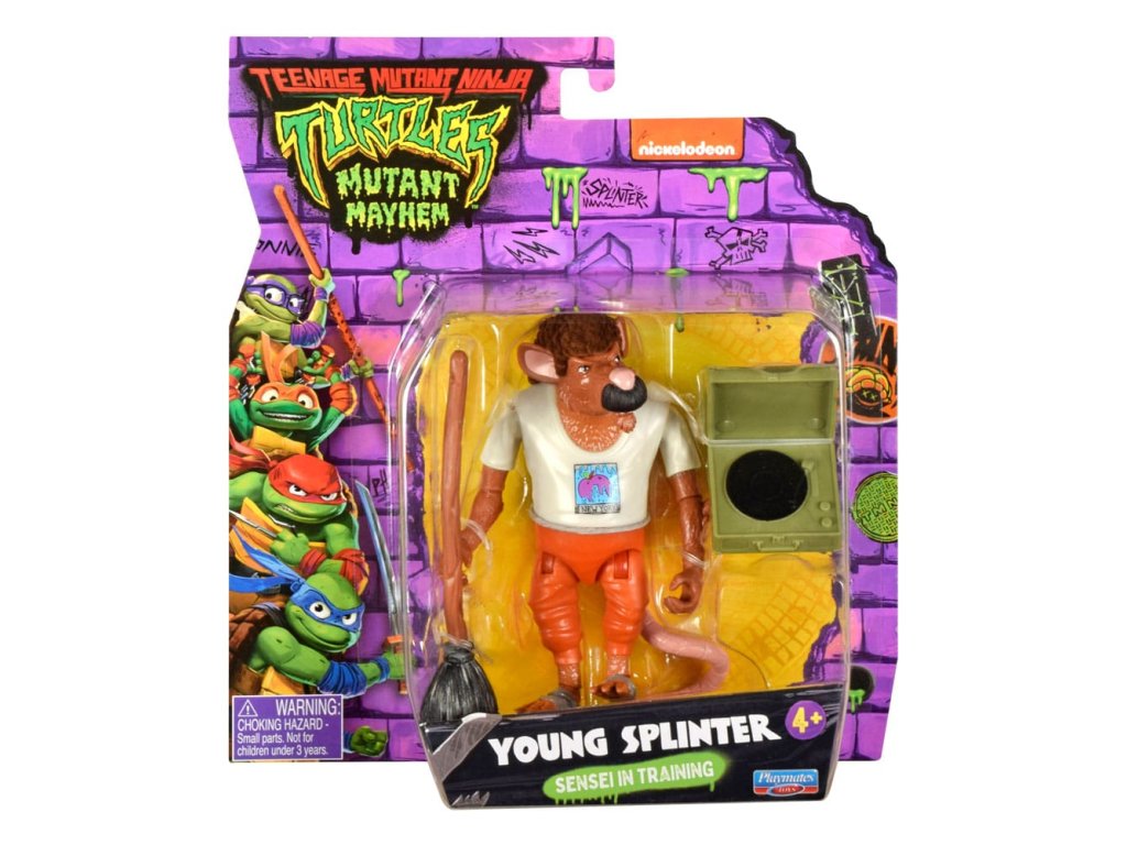 Splinter, aki egykor mutáns patkány volt, négy mutáns teknős apja lesz. Hogy megvédje családját, internetes oktatóprogramokon keresztül tanítja magát és gyermekeit a nindzsák módjára. Hamarosan ki akarnak lépni a csatornából, és meg akarják menteni a várost. A Mutant Mayhem 11,4 cm magas Splinter figurája mozgatható, a film dizájnjának megfelelő, seprűvel és forgatható lemezzel érkezik.Kiegészítő paraméterek