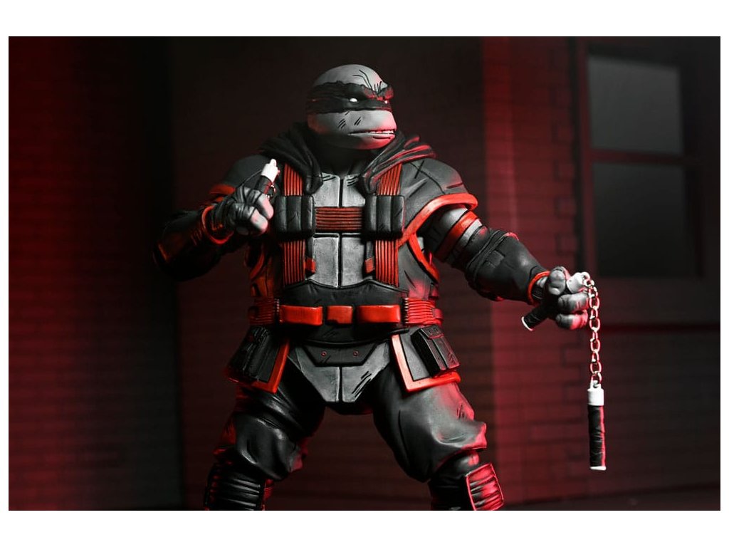 A Tini Mutáns Nindzsa Teknőcök képregénysorozatból: Az utolsó Ronin - Az elveszett évek! Az Utolsó Ronin első küldetésének története folytatódik, miközben újabb titkok derülnek ki a Teknős Nindzsa Teknőcök múltjából. Raffael bukása után a megmaradt Teknőcök újjászerveződnek, és April és Casey mellett megalakítják az Éjjeli Őrszemeket. A 3. szám alapján készült Michelangelo figura 7 hüvelykes, és stilizált festéssel rendelkezik a hiteles képregényes megjelenés érdekében. A tartozékok között két fej, extra kezek és nunchakuk is található! Gyűjtőbarát csomagolásban, a Last Ronin művész Ben Bishop eredeti illusztrációival.Kiegészítő paraméterek
