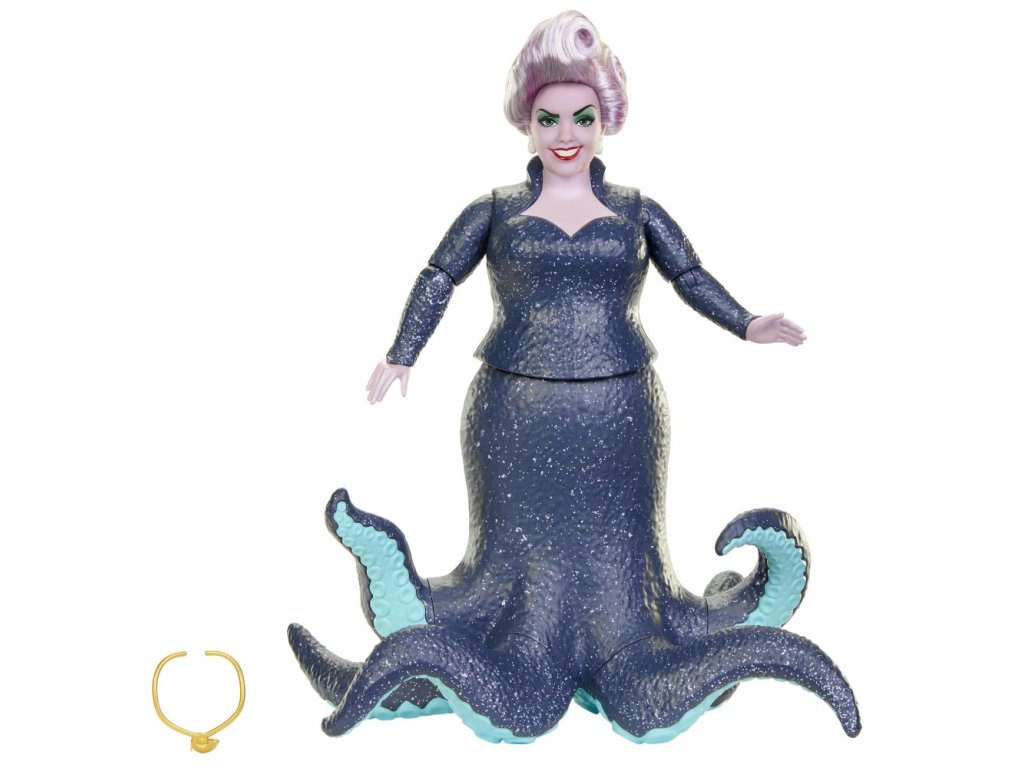 Fedezd fel a Kis hableány varázslatos világát új módon! A Gonosz tengeri boszorkány babát a Disney A kis hableány című élőszereplős filmje ihlette. A baba puha anyagból készült, nyomtatott ruhával, levehető nyaklánccal, fülbevalóval és művészien megformázott, kék festékkel alulra festett csillogó csápokkal rendelkezik.