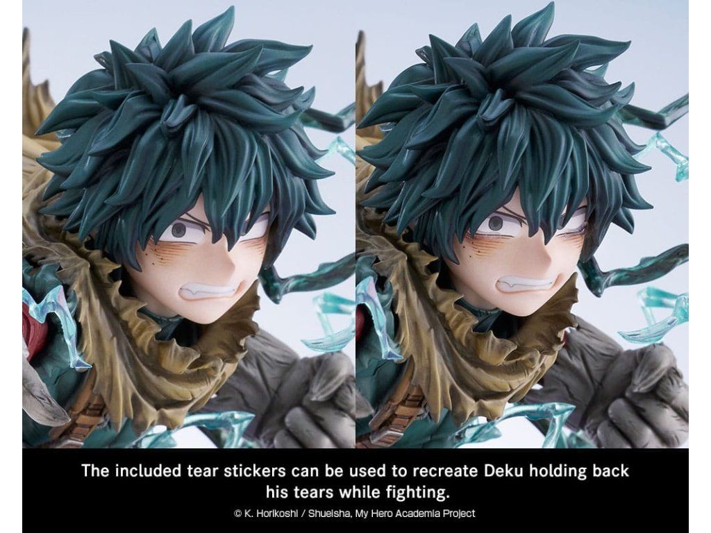 A népszerű My Hero Academia című anime főszereplője, Izuku Midoriya újra csatlakozik az ARTFX J sorozathoz! Régóta várt Dark Deku alakjában kel életre, és úgy dönt, hogy megválik szeretett barátaitól, és egyedül folytatja a harcot. Dinamikus és erőteljes pózában, a harctól megtépázott öltözékével, és az öröklött furcsaságának, a Blackwhipnek a levegőben körülötte terjedő élénk hatásaival, nem spóroltunk a részletekkel. Fedezékével és arcával együtt is megjeleníthető. Feszült és kétségbeesett, összetett érzelmekkel teli arckifejezése nagyban megváltoztatja a darabok hangulatát. A mellékelt könnycsepp matricákkal a rajongók még jobban élvezhetik őt az arckifejezésének testreszabásával. Egészítsd ki gyűjteményedet még ma ezzel az őszinte és elszánt hőssel, aki a körülményektől függetlenül folytatja mások megmentését.Kiegészítő paraméterek