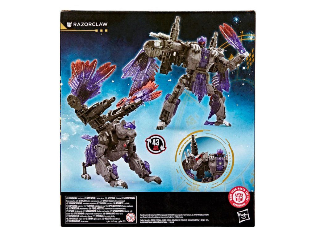 Ismerd meg az epikus Transformers robot univerzumot a Transformers Razorclaw játékkal! A 19 cm-es (7,5 hüvelykes) Leader Class figura 43 lépésben átalakul robot akciófigurából sasszárnyú tigris módba. A részletes pózolhatóságnak és az olyan csatlakoztatható kiegészítőknek, mint a fegyvertár és a szárnypengék, köszönhetően ez a Razorclaw akciófigura minden gyűjtemény csodálatos kiegészítője. Keress további gyűjthető Transformers Age of Wizards játékokat (külön megvásárolható, a rendelkezésre állás függvényében) olyan karakterekkel, mint a Maximal Big Convoy, a Tizenhárom Alpha Trion és a Junkion Jalopy és még sok más, hogy egy olyan felhozatalt alkoss, amely - TÖBB, mint ami a szemnek látszik.