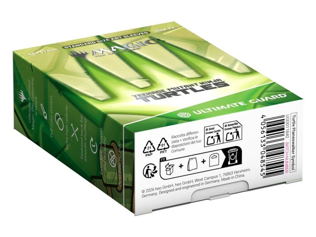 Az Ultimate Guard Art Sleeves prémium MTG kártyahüvelyek a Magic: The Gathering | Teenage Mutant Ninja Turtles játékból származó, hivatalosan engedélyezett grafikával. Texturált hátoldaluk kiváló keverési érzetet biztosít, amelyet merész, karcálló nyomtatás és rendkívül átlátszó előlap egészít ki. Az Art Sleeves kártyahuzatok kiváló minőségű anyagokból készülnek, így biztosítva a maximális tartósságot.