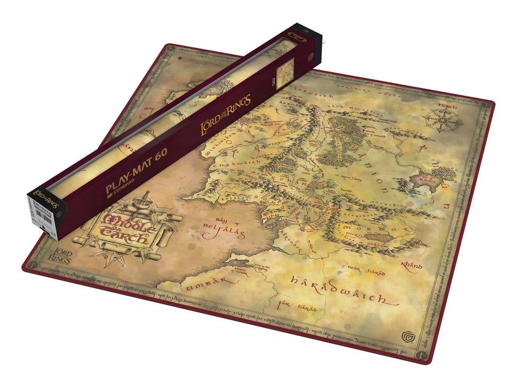 Az Ultimate Guard hivatalos Gyűrűk Ura™ 'Középfölde helyszínei' kiadásának különleges, túlméretezett, 61x61 cm-es, két játékosra szánt játékszőnyege védi a kártyákat és a paklikat játék közben, csúszásmentes aljával pedig fokozza a játékélményt, a steppelt szélek pedig még hosszabb élettartamot biztosítanak.