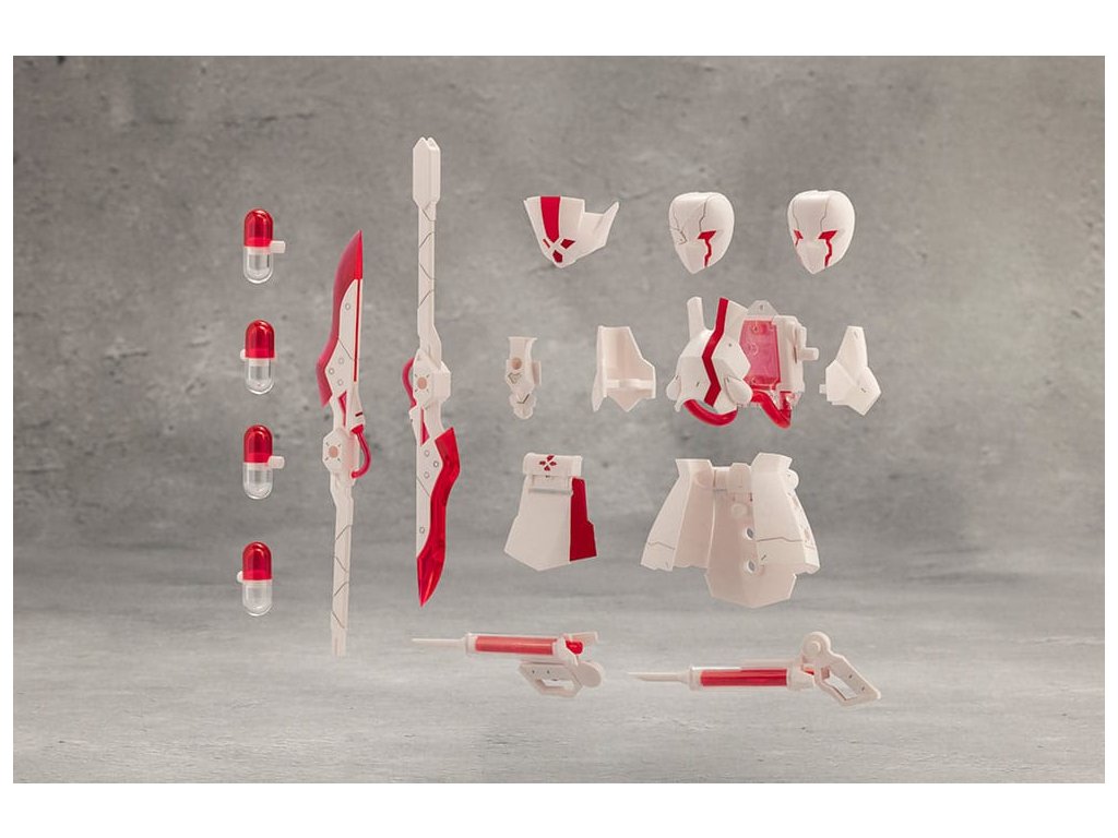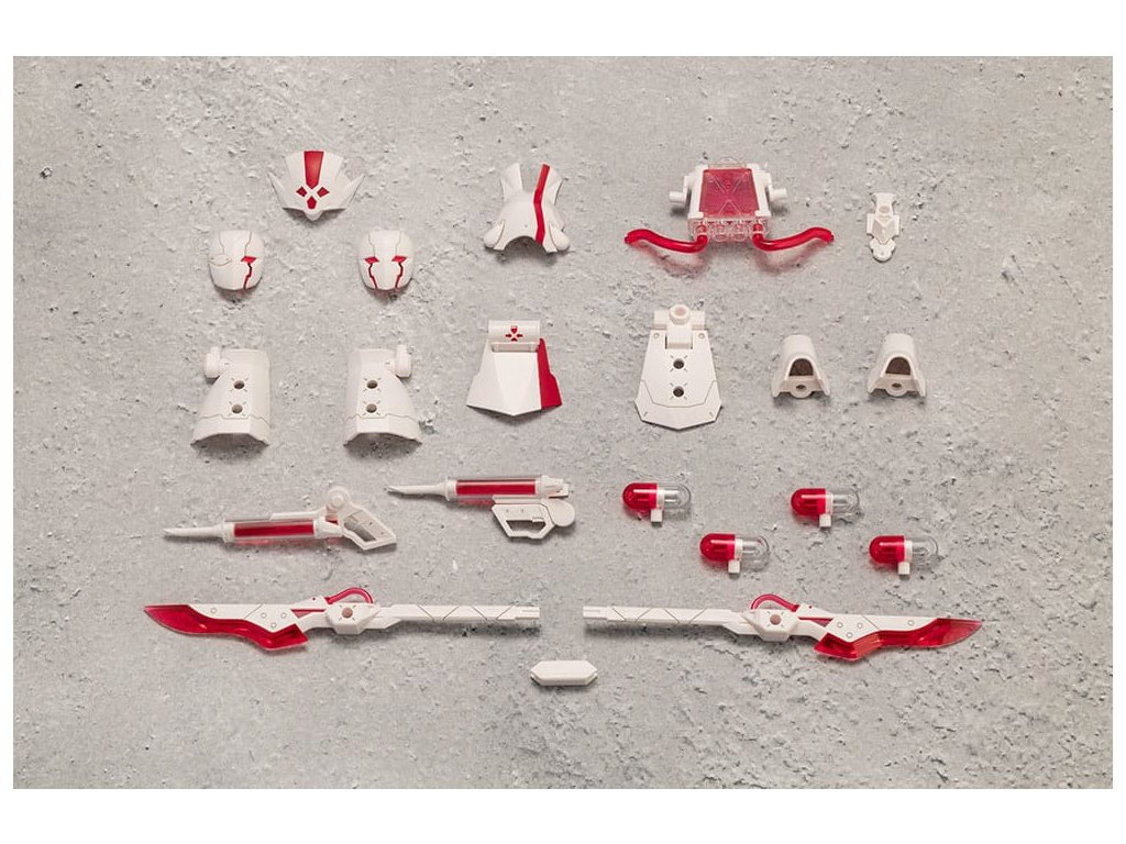 Bővítsd a Megalomaria sorozat testreszabási lehetőségeit a METAMORPHOSE UNITS-szal! Ez a választható tárgykészlet az ápolói ruha koncepción alapuló páncélzatot és az orvosi eszközökön alapuló fegyveregységeket tartalmazza.* A választható tárgyak specifikációja megegyezik a Ruby Eye-hoz mellékelt tárgyakéval. Szike: Tartalmaz két szikéhez hasonló kardot, amelyek kombinálva dupla kardot hozhatnak létre. Injektor: Fecskendőszerű fegyvereket tartalmaz, amelyek a bábu alkarjának kemény pontjaihoz rögzíthetők. A fogantyúk kihajtásával kézifegyverként használhatók. EXARMOR FEHÉRNÖVEK: A bővülő páncélszoknya minden részén 3 mm-es csuklóval rendelkezik, és hat artikulációs pontból áll. A modell hátán található mentőtartály egy vérátömlesztő zsák alapján készült, és gyönyörűen megmunkálták átlátszó színtelen és piros műanyagból. Életvérkapszulák: A négy életvérkapszula átlátszó piros és színtelen műanyagból készült, és a modellekhez rögzíthető. Kétféle maszk: Két maszkot tartalmaz, amelyek a Ruby Eye-hoz tartoztak; egy szemfedővel és egy nyitott szemmel. A maszkok a Principal (külön megvásárolható) és a Sousai Shojo Teien modellekkel (külön megvásárolható) használhatóak. *Megjegyzés a szemellenző/maszk kompatibilitásról. Tartalmazza: - Exarmor White Nurse Set x1- Maszk (szemfedő) x1- Maszk (mindkét szem nyitva) x1- Szike x2- Dupla penge módú csatlakozó rész x1- Injektor x2- Élettani kapszula x4O TOKYO MarkA TOKYO Mark olyan termékek márkaneve, amelyek Japánból származó gyártási technológiát tartalmaznak. A különböző technológiákra specializálódott, több helyen található gyárakkal való partnerség kialakításával célunk, hogy Tokióból - ahol a Kotobukiya székhelye található - koncentráljuk és szállítsuk a termékeket, és magas minőségű termékeket nyújtsunk ezen a márkán keresztül.Kiegészítő paraméterek