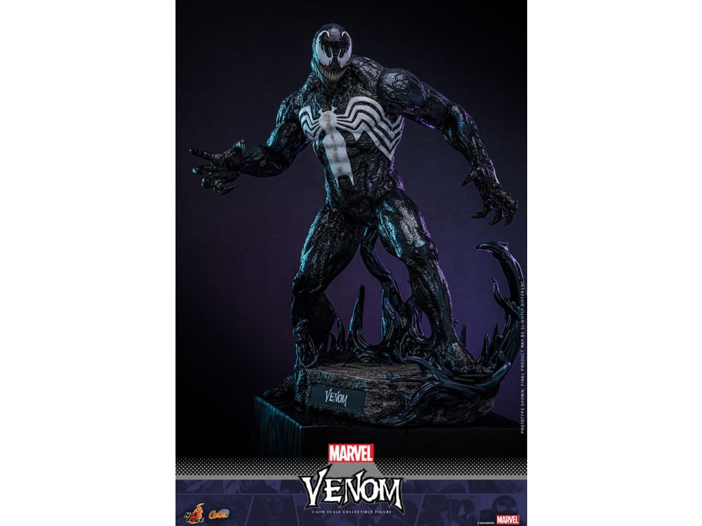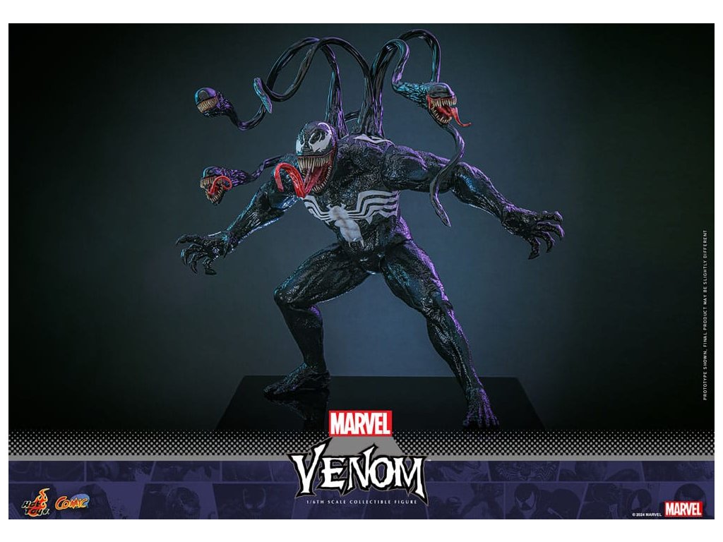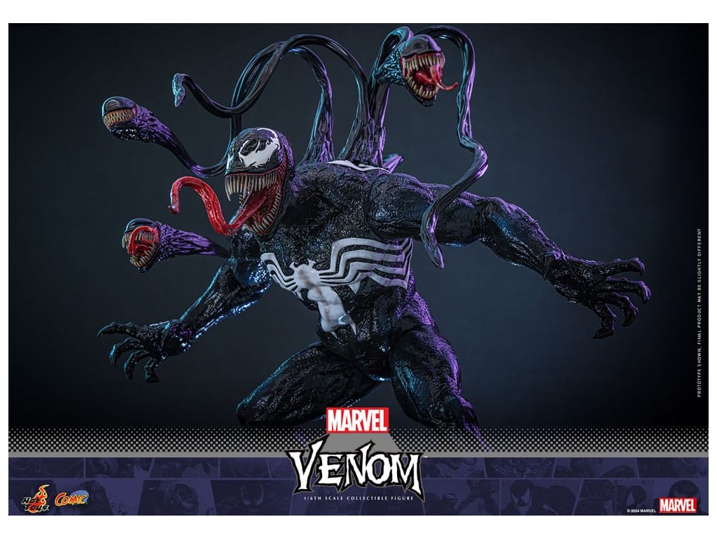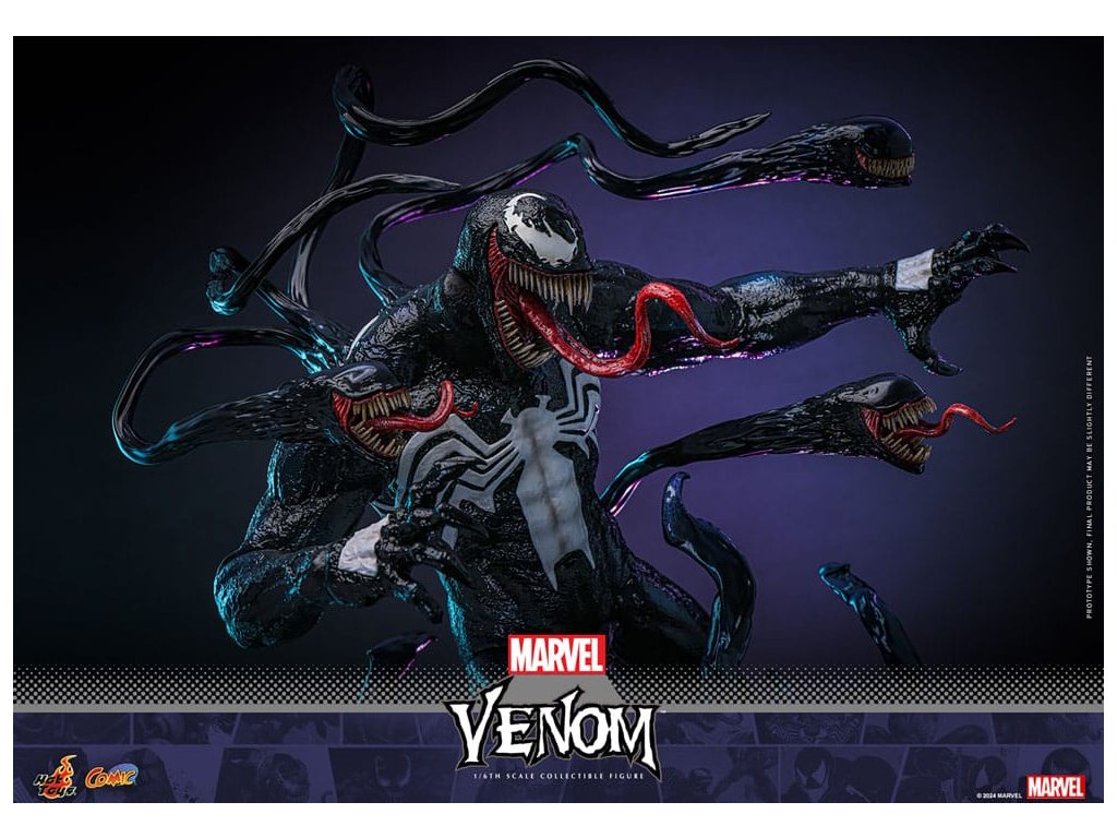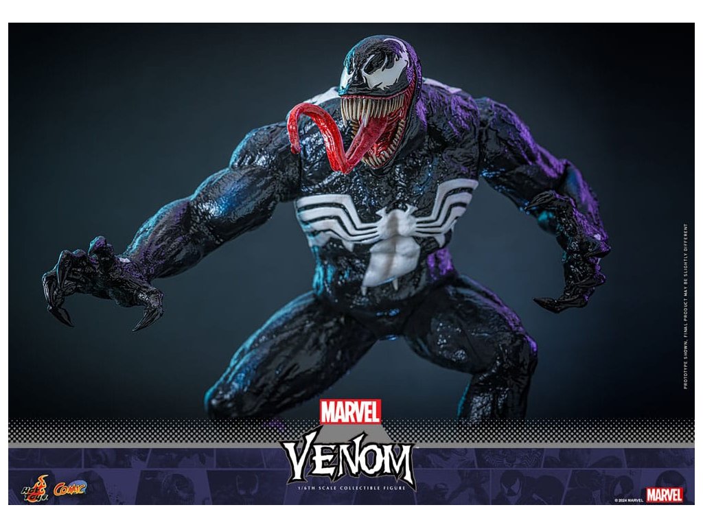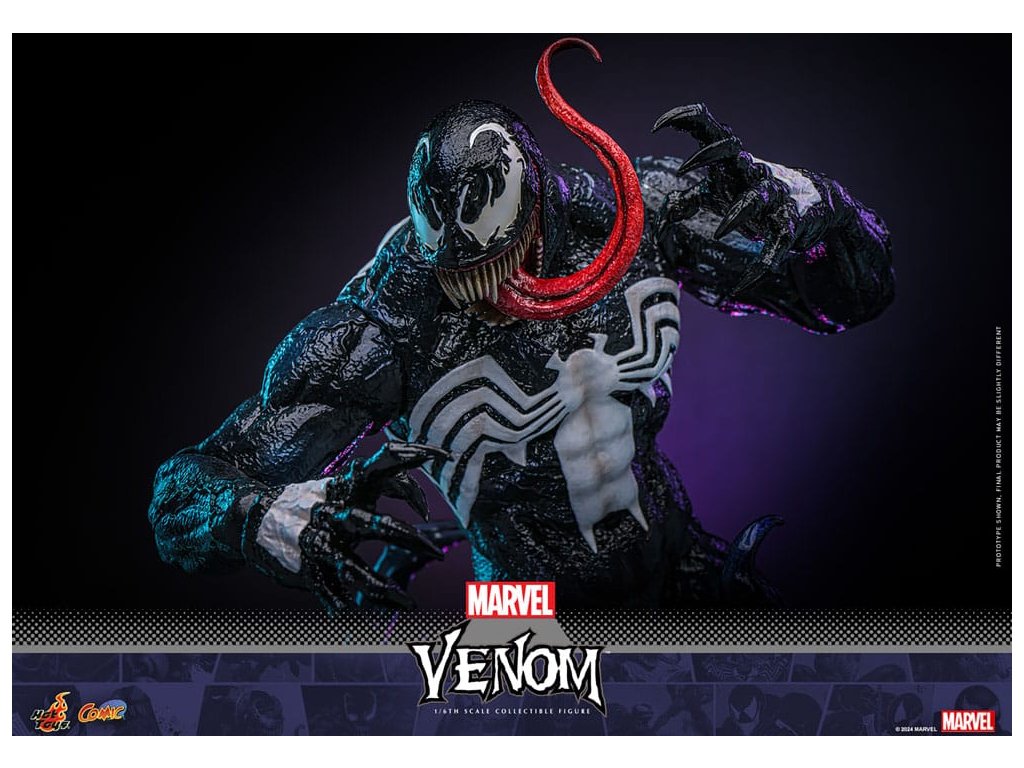 Venom a Marvel képregények markáns antihőse, aki a félelmetes fekete szimbiótáról ismert, amely felerősíti gazdatestének, Eddie Brocknak az erejét. Az idegen organizmusból kinőtt Venom emberfeletti erőt és mozgékonyságot biztosít, valamint az alakváltás képességét. Eredetileg Pókember ellensége, a bosszú és a védelem összetett keverékét képviseli, gyakran elmosva a hős és a gonosz közötti határokat. Félelmetes megjelenése, amelyhez foghíjas vigyor és fehér pókembléma is tartozik, a Marvel egyik legfelismerhetőbb karakterévé teszi. A Sideshow és a Hot Toys örömmel mutatják be Venom lenyűgöző, 1/6-os méretarányú gyűjtői figuráját, amelyet a Marvel ikonikus antihőse ihletett. Ez az aprólékosan kidolgozott akciófigura megragadja Venom lényegét, megmutatva félelmetes jelenlétét és részletes részletességét. A kiválóan részletezett gyűjtői figura mesterien kidolgozott, hogy Venomot ábrázolja a Marvel képregényekből. Jellegzetes vigyorgó fejjel, valamint fenyegetően agyaras szájjal és három cserélhető, kiálló nyelvvel ellátott fejjel rendelkezik. A körülbelül 39 cm magas, az ikonikus fehér pók emblémákkal ellátott, specializált test magas szintű, részletes szobrászmunkát mutat, különösen a bőr textúráján. Különböző szimbiózis tartozékokat tartalmaz a figura hátára erősíthető csápokkal, amelyek még dinamikusabbá teszik ennek az ikonikus figurának a jelenlétét. A gyűjtői darabhoz egy szimbióta-témájú dioráma is tartozik, amely életre kelti a képregényes jelenetet. Ne hagyd ki a lehetőséget, hogy előrendeld ezt a lenyűgöző Venom figurát, és engedd, hogy a gyűjteményedben szabadjára engedje erejét!Kiegészítő paraméterek