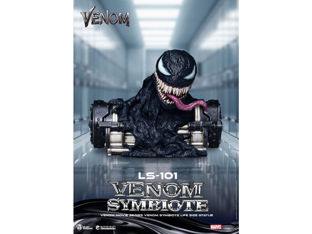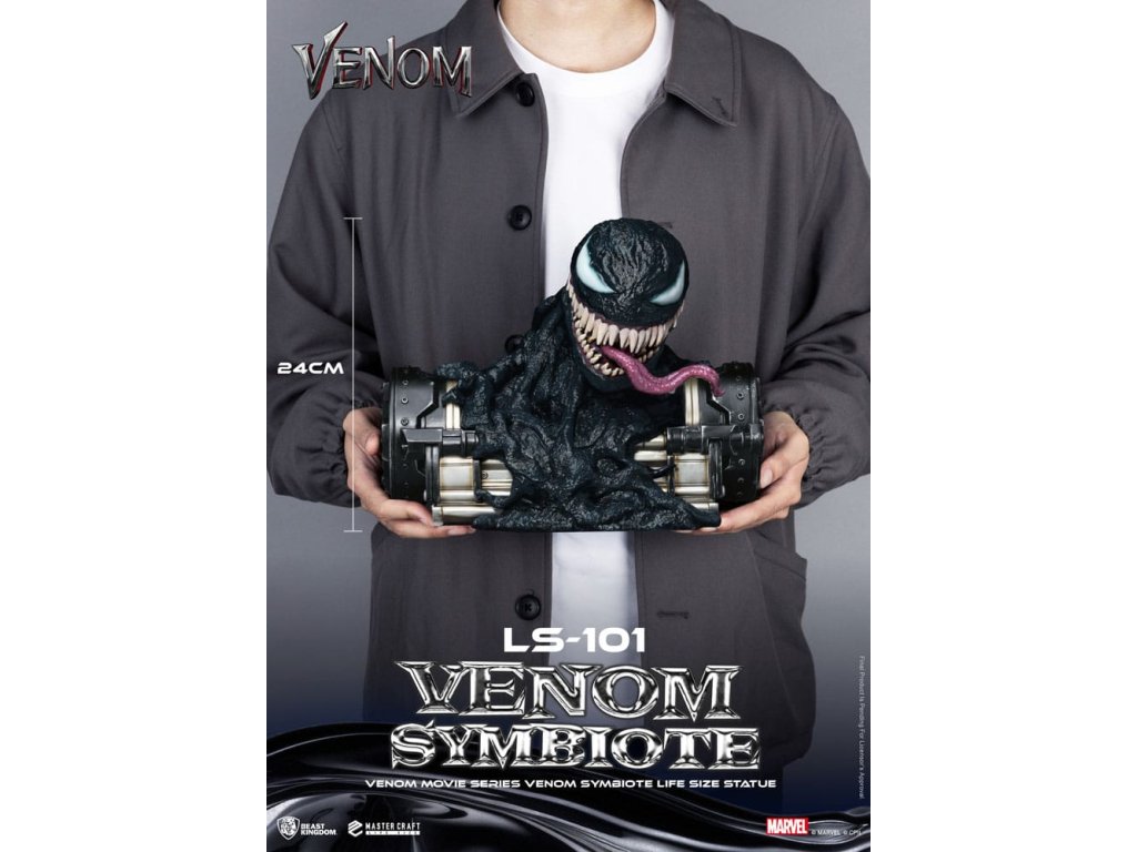 A Marvel Venom-filmje az antihősök rajongásának hullámát indította el. A film történetében a Life Foundation egy idegen "szimbiótát" hoz a Földre, és kísérleteket végez a tökéletes gazdatest megtalálására... Az 1:1 méretarányú Venom szobor megjelenését követően a Beast Kingdom LS-101 bemutatja a Venom szimbióta filmsorozat eredeti méretének megfelelő Venom szobrot, amelyet a gyűjtők vágyainak megfelelően terveztek. A 24 hüvelyk magas szobor valósághű folyékony textúrákkal, izmos részletekkel és professzionálisan kézzel festett felületekkel rendelkezik, amelyek megörökítik Venom egyedi megjelenését. A szemek, a fogak és a nyelv többrétegű festése olyan, mintha Venom kiugrott volna a befőttesüvegből, és a következő gazdatestet keresné. Az LS-101 Venom szobor az eredeti méretben minden Marvel gyűjtemény szerves részét képezi, ez egy nagyszerű kiegészítője a gyűjteményednek! - A Venom szimbióta pontos reprodukciója a Venom című filmből - Professzionális szobrászati és festési technikák.