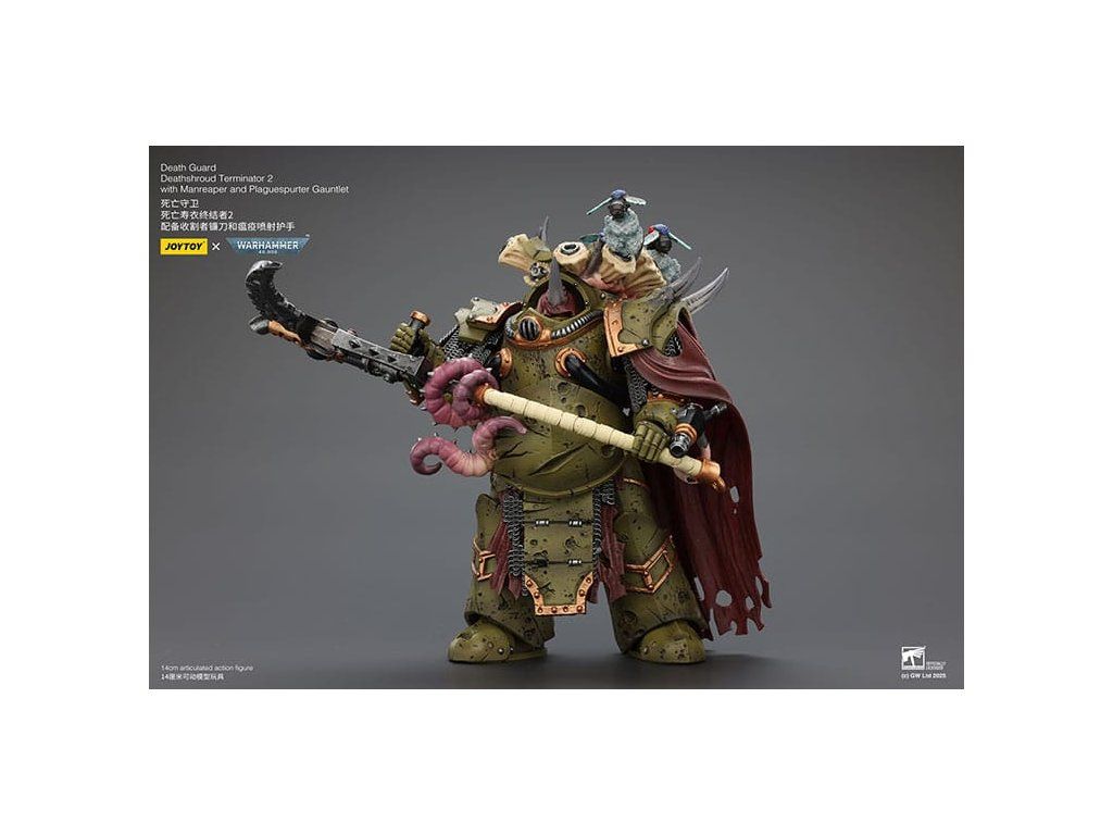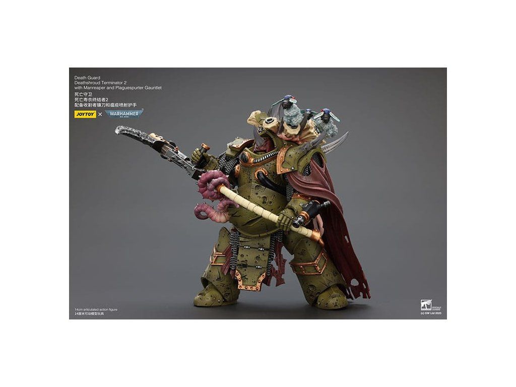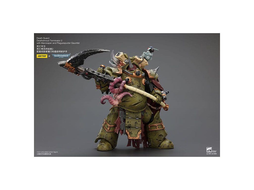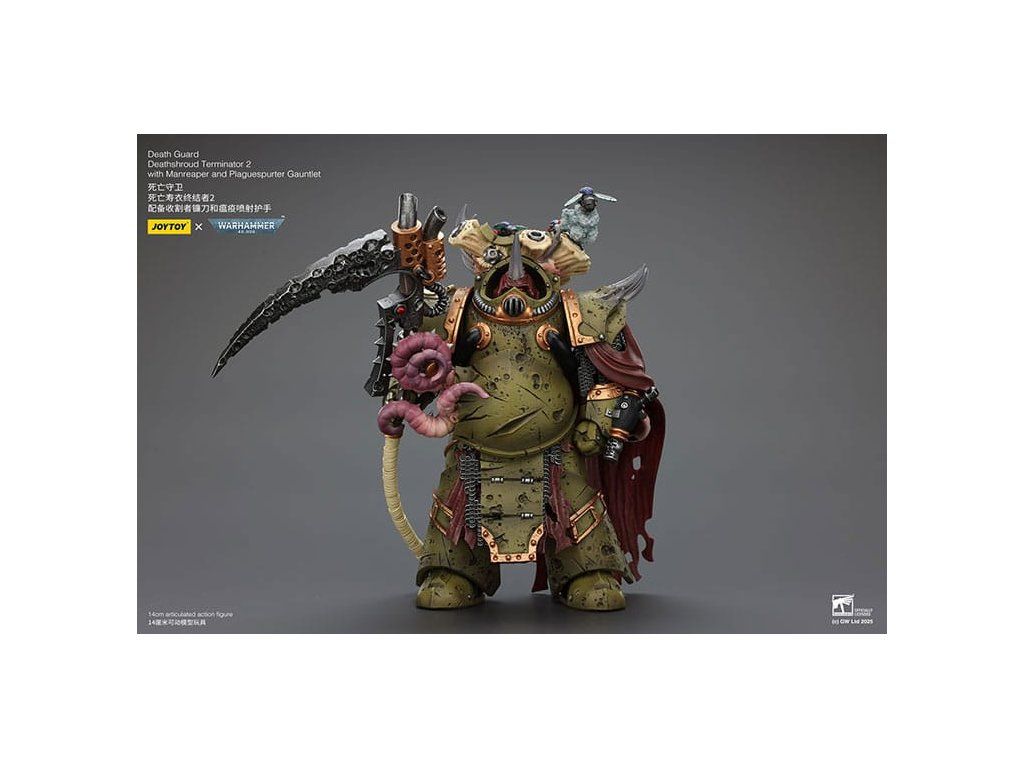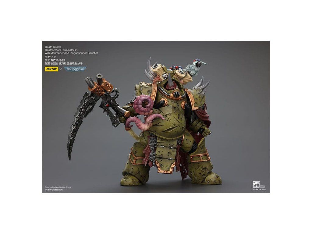 Warhammer 40k akciófigura 1/18 Death Guard Deathshroud Terminator 2 Manreaperrel és Plaguespurter kesztyűvel 14 cm