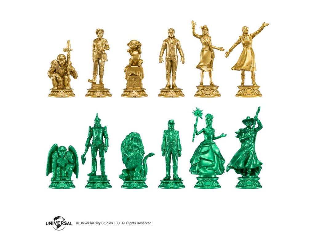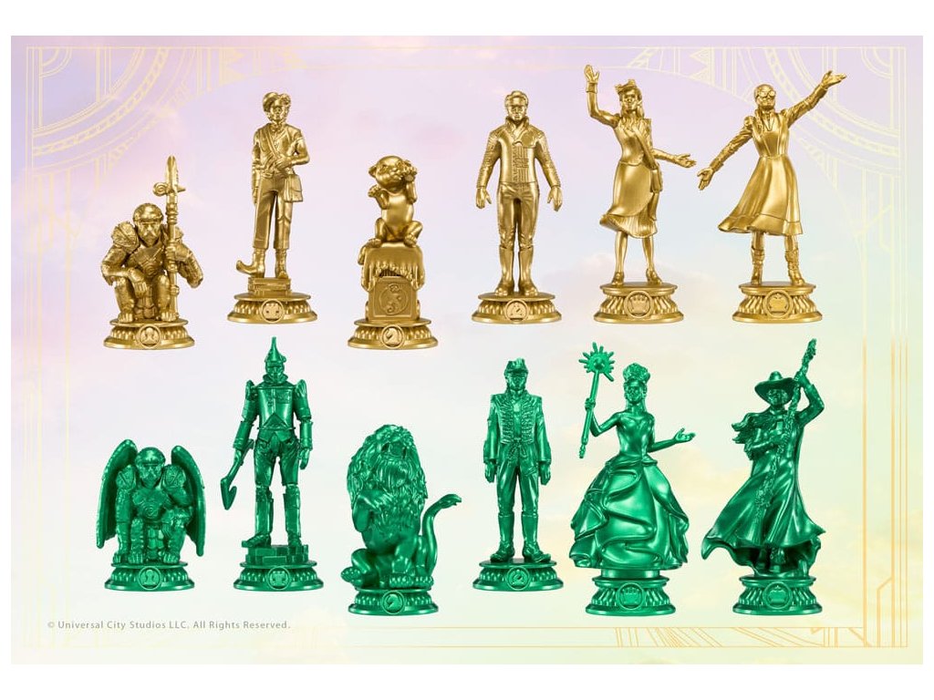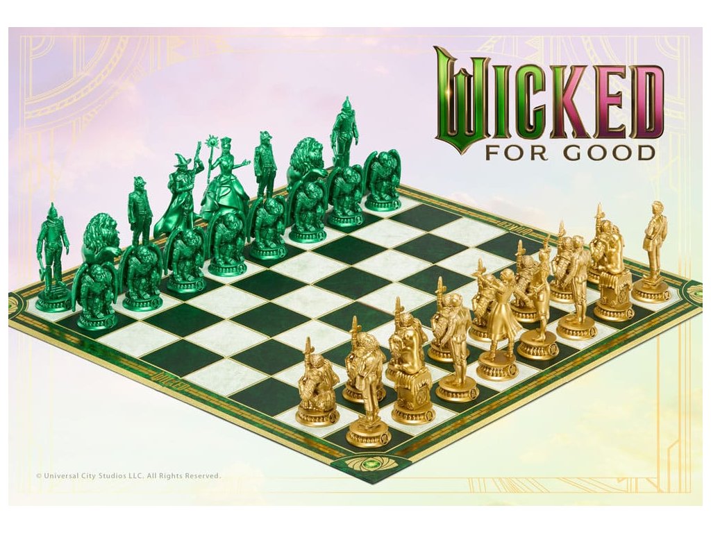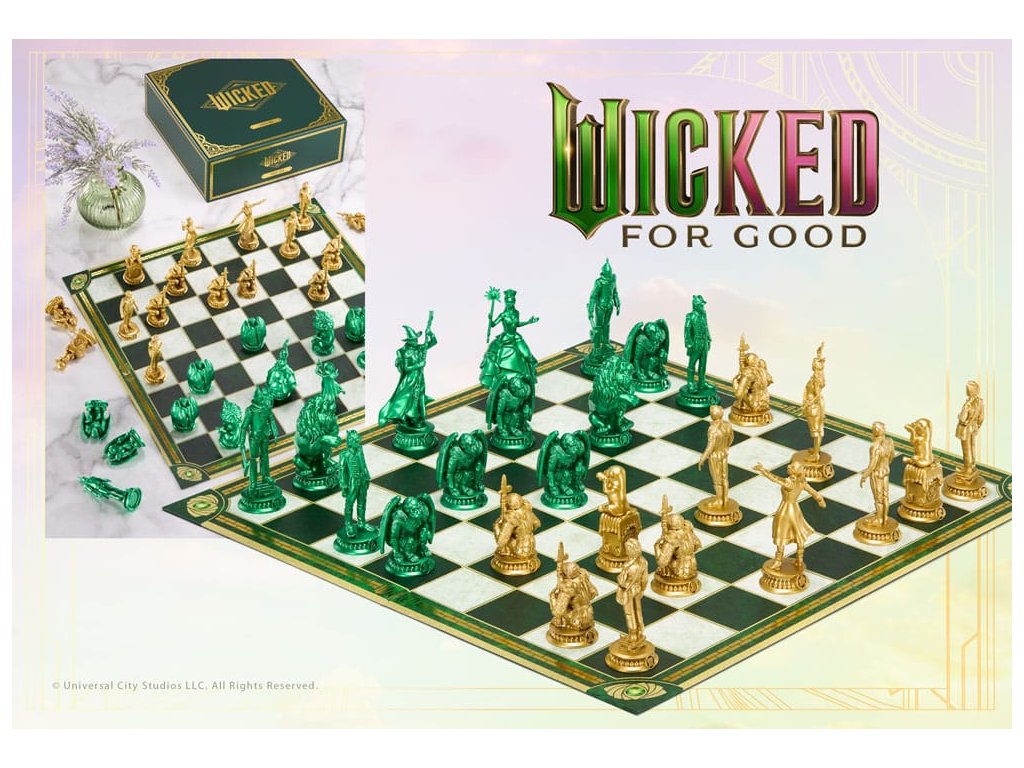Ugorj be Ózba minden alkalommal, amikor leülsz a sakktáblához ezzel a hivatalosan engedélyezett Wicked sakk-készlettel! Játssz a kedvenc Wicked karaktereid - Glinda, Elphaba, Fiyero, Boq és mások - szerepében a Wicked és a Wicked: For Good eseményei előtt és után. Minden egyes aranyszínű figura a kedvenc Wicked karaktereidet jelképezi, a smaragdzöld figurák pedig a Wicked: For Good karaktereit. A 32 bábuval és egy túlméretezett, Oz ihlette sakktáblával ez a készlet tökéletes játékra és kiállításra egyaránt! Fokozd a játékodat ezzel az egyedi sakk-készlettel, amely ötvözi a sakk stratégiai világát és Óz szeszélyességét! Ez a sakk-készlet minden játéktudásszintű játékos számára tökéletes, és minden alkalommal nagyszerű szórakozást nyújt. Ez a készlet 32 játékfigurát tartalmaz, amelyeket kedvenc Wicked karaktereidről mintáztak, és amelyek csillogó aranyszínűek, hogy jelképezzék a Shiz Egyetemen töltött idejüket, és élénk smaragdzöldek, hogy jelképezzék a Wicked: For Good-ot. A 18,5" négyzet alakú, összecsukható sakktáblán fehér és zöld márvány textúrájú négyzetek váltakoznak, a sárga téglákon aranyfóliás szegélyek, és minden sarokban egy varázsló jelvény embléma található. A játéktér 45 x 45 cm-es, a bábuk pedig 5 és 11 cm közötti méretűek.Kiegészítő paraméterek