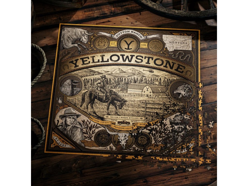 Fedezze fel Yellowstone vadvilágát úgy, ahogy még soha, egy ezer darabos kirakós játékkal, amely a Dutton Ranchot eleveníti meg pontos részletességgel. Aranyfóliás részleteket és rengeteg húsvéti tojást tartalmaz a sorozatból - Hivatalos engedéllyel készült puzzle - 1000 darab - Méret: 65 x 65 cm